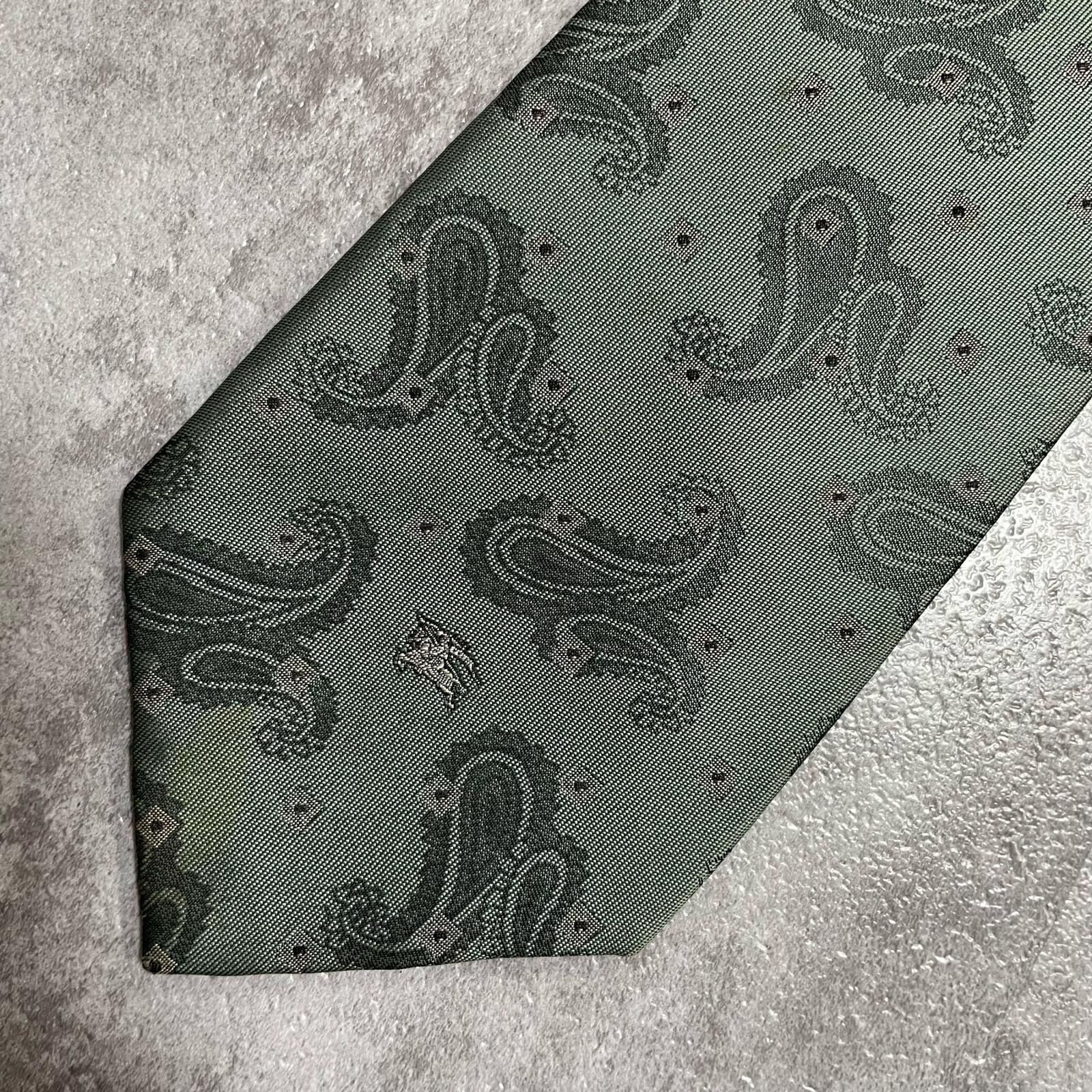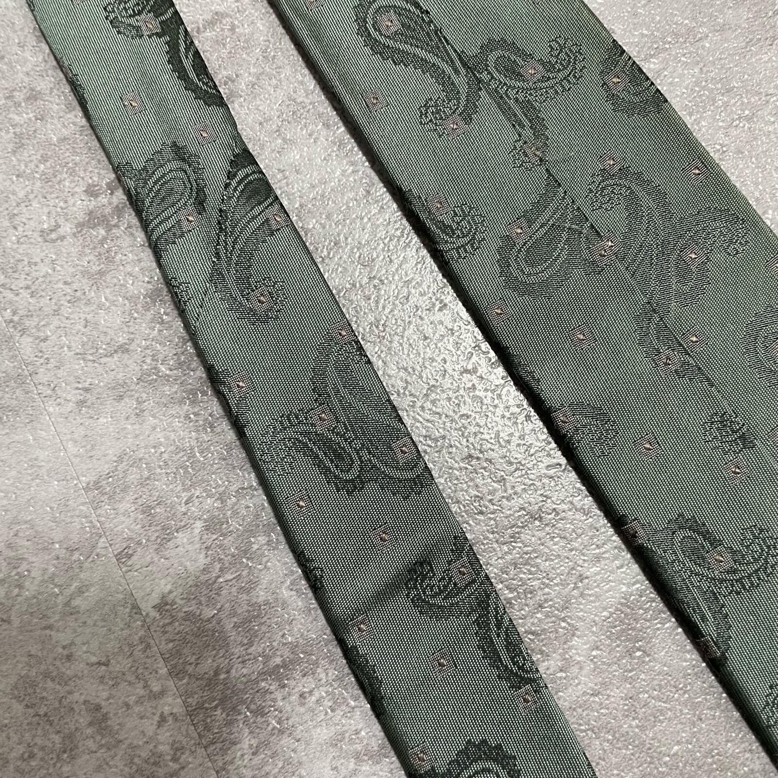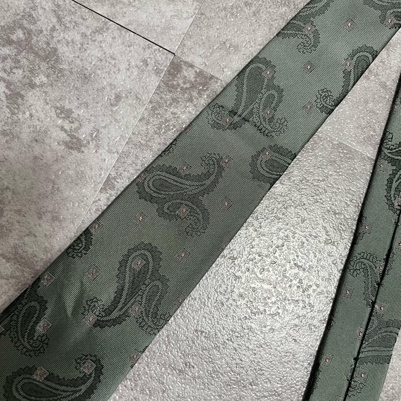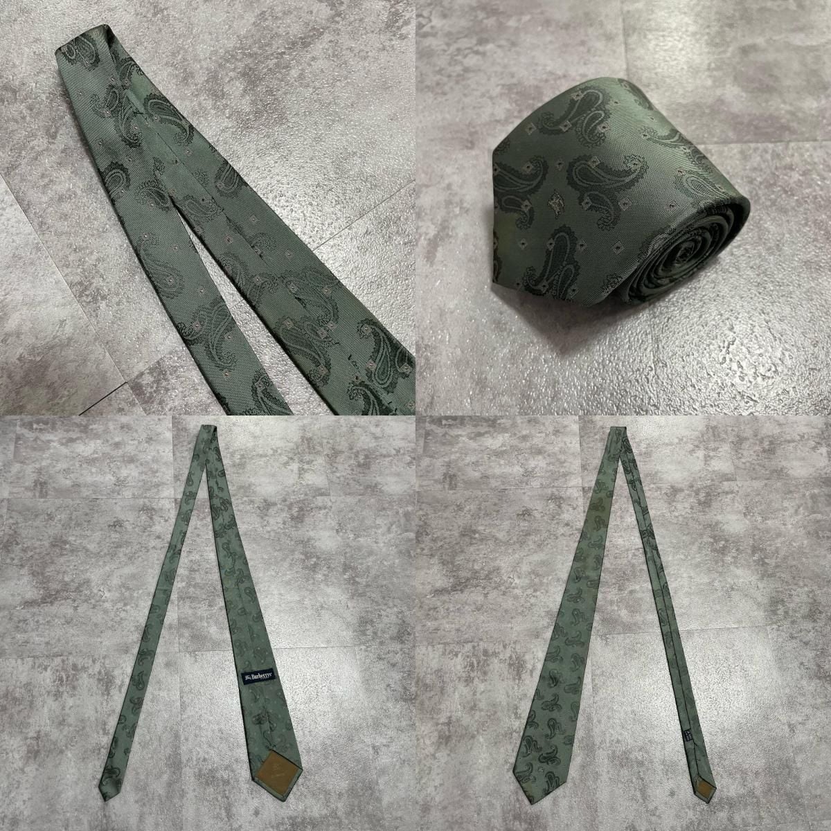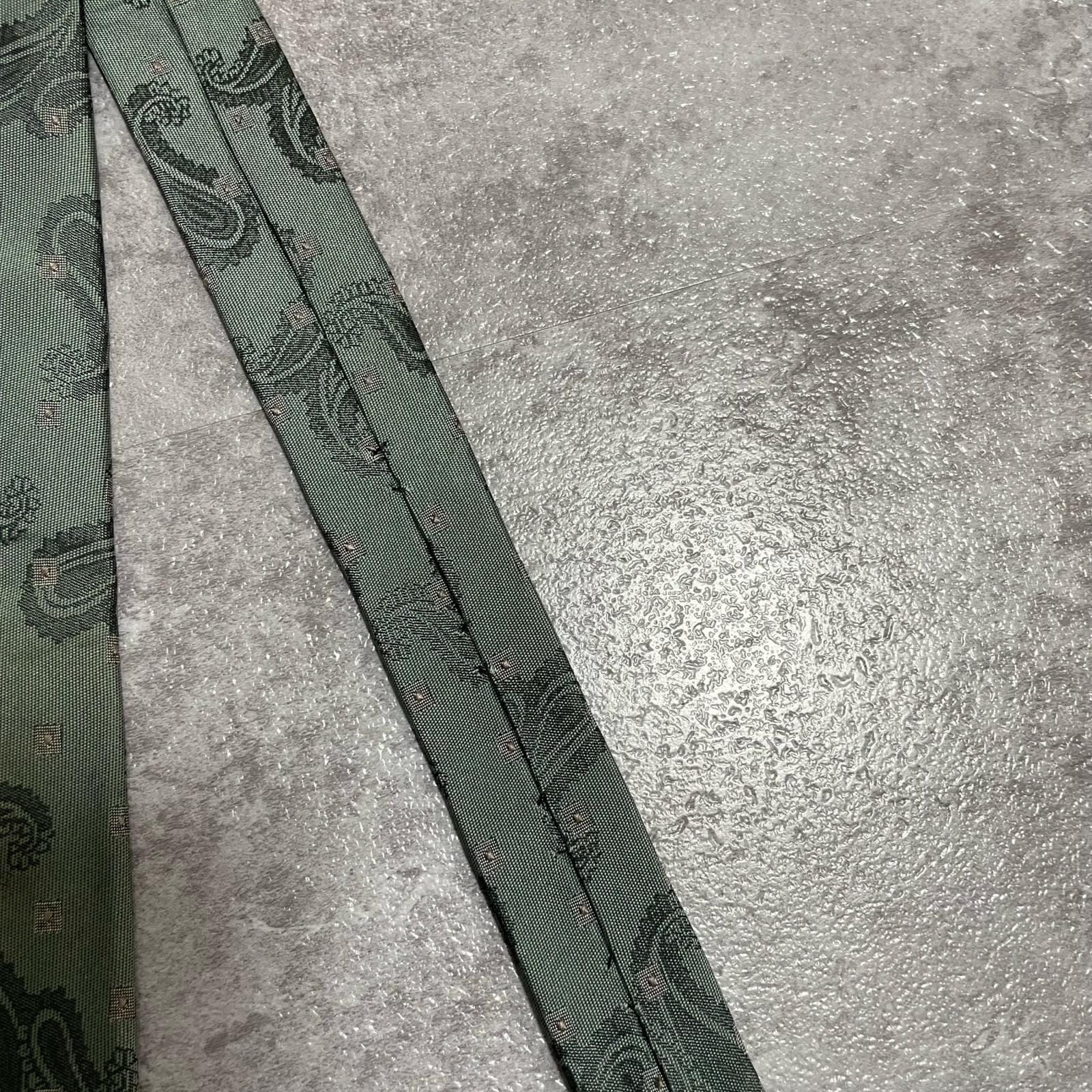 【BURBERRY】バーバリー ロゴ入りペイズリー柄 シルクネクタイ シルク100% メンズ 日本製 グリーン 緑色 ナイトロゴ ホースロゴ ワンポイント 総柄 クラシック ビジネス フォーマル