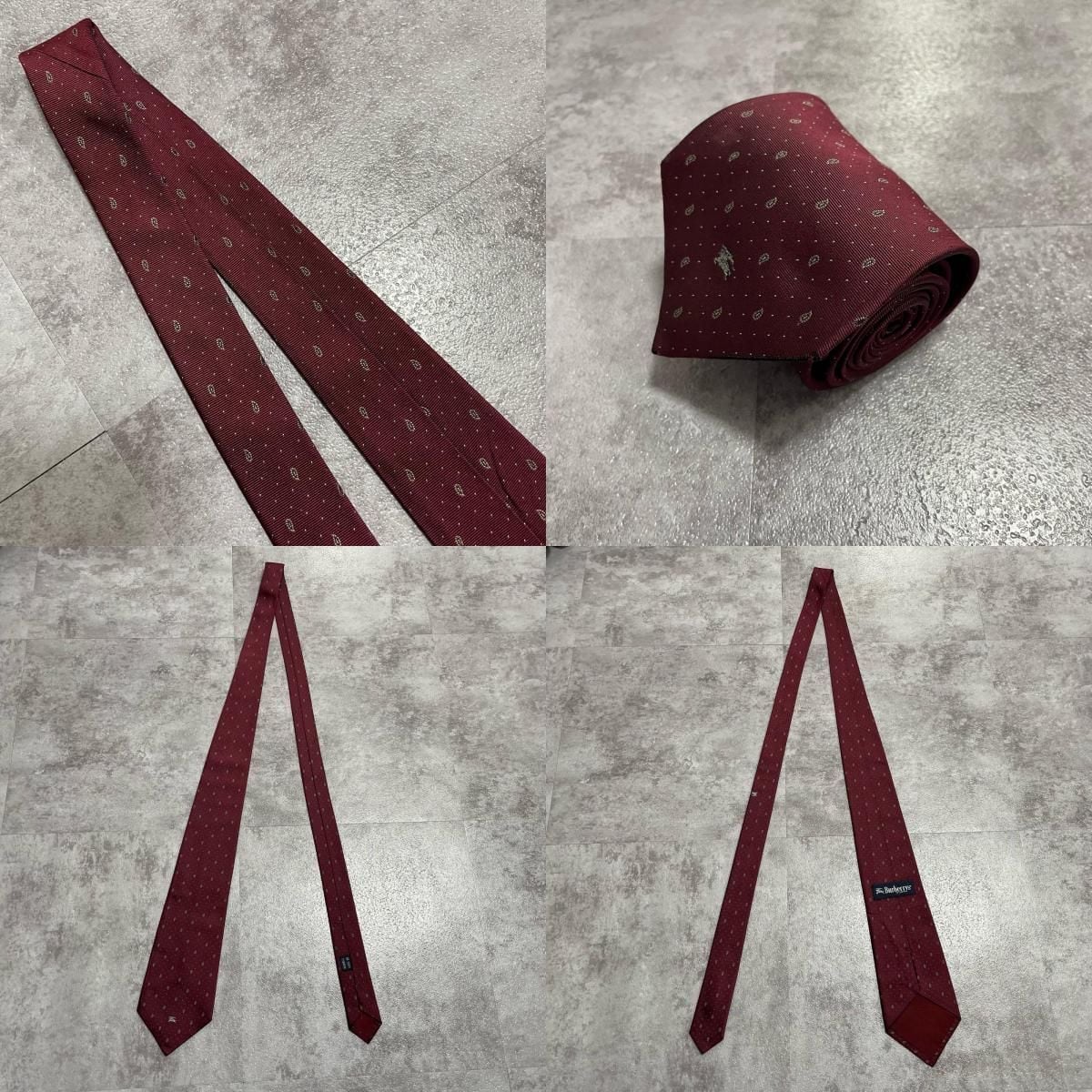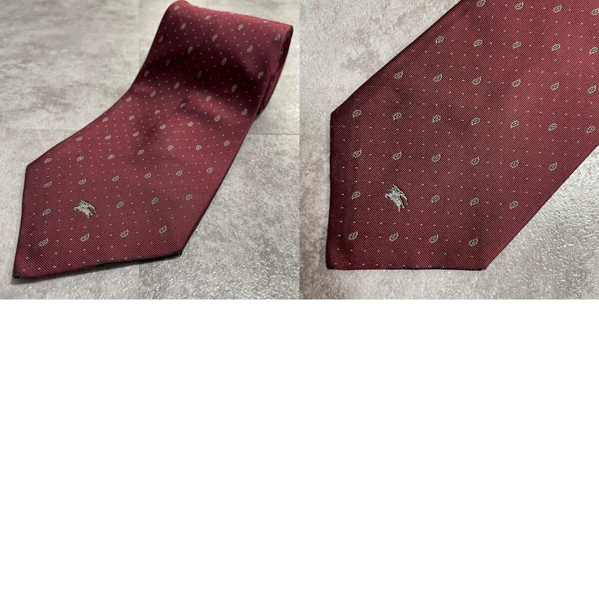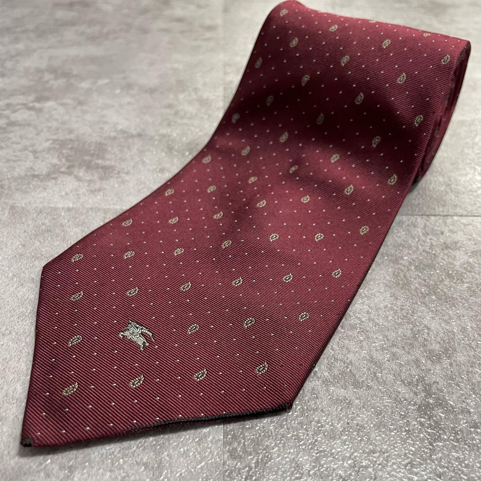 【BURBERRY】バーバリー ホースロゴ小紋柄 シルクネクタイ シルク100% メンズ 日本製 ボルドー ワインレッド ドット柄 ナイトロゴ 刺繍 クラシック ビジネス フォーマル