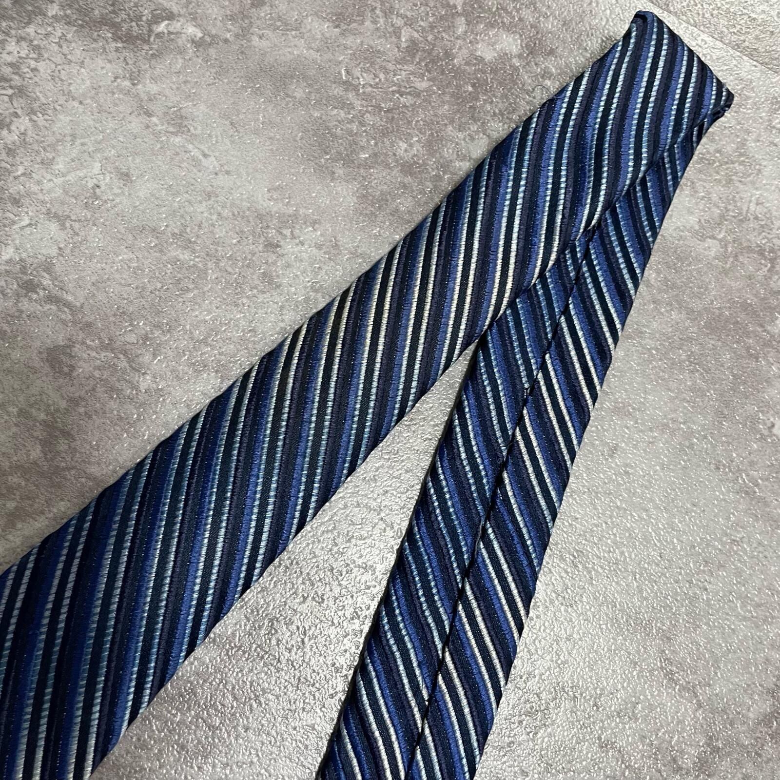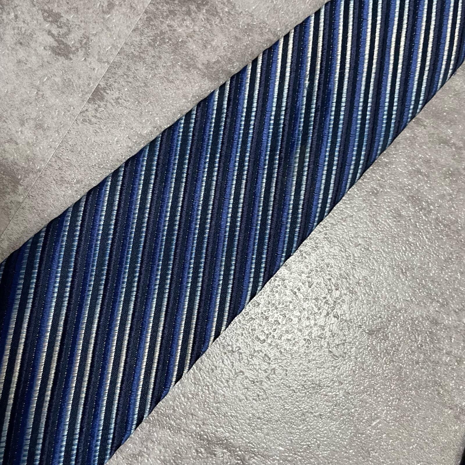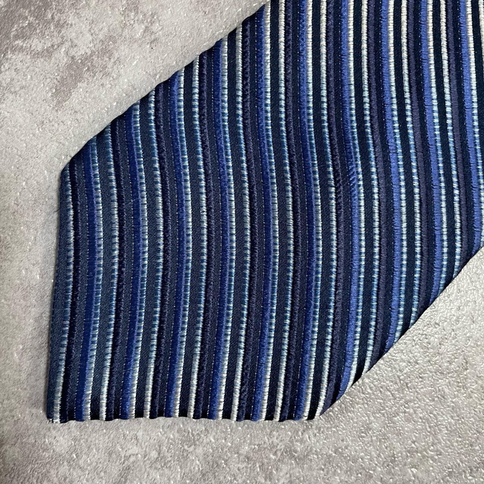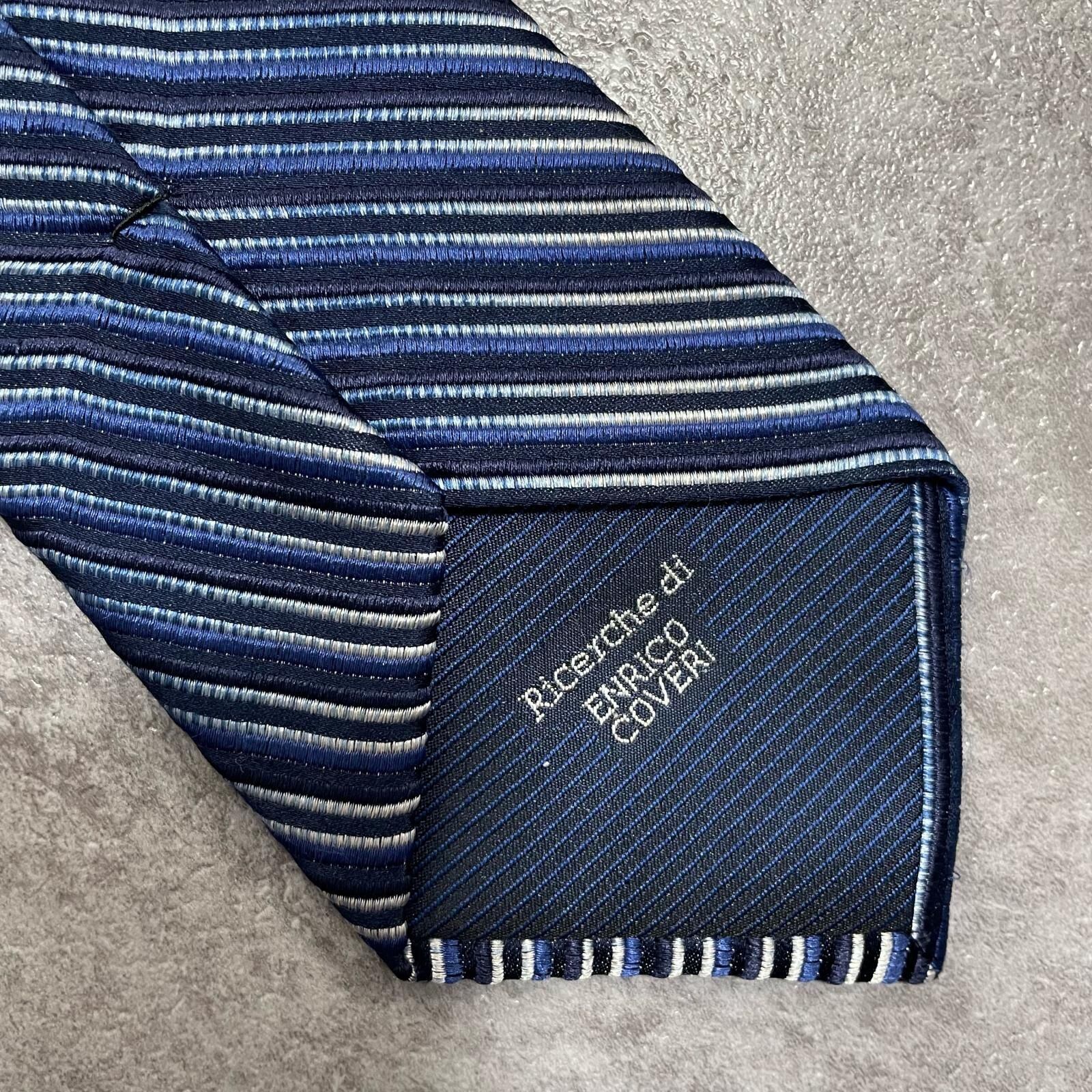 【ENRICO COVERI】エンリココベリ マルチストライプ シルクネクタイ シルク100% メンズ イタリア製 ブルー 青色 ネイビー 紺色 シルバー 銀色 ストライプ柄 クラシック ビジネス フォーマル