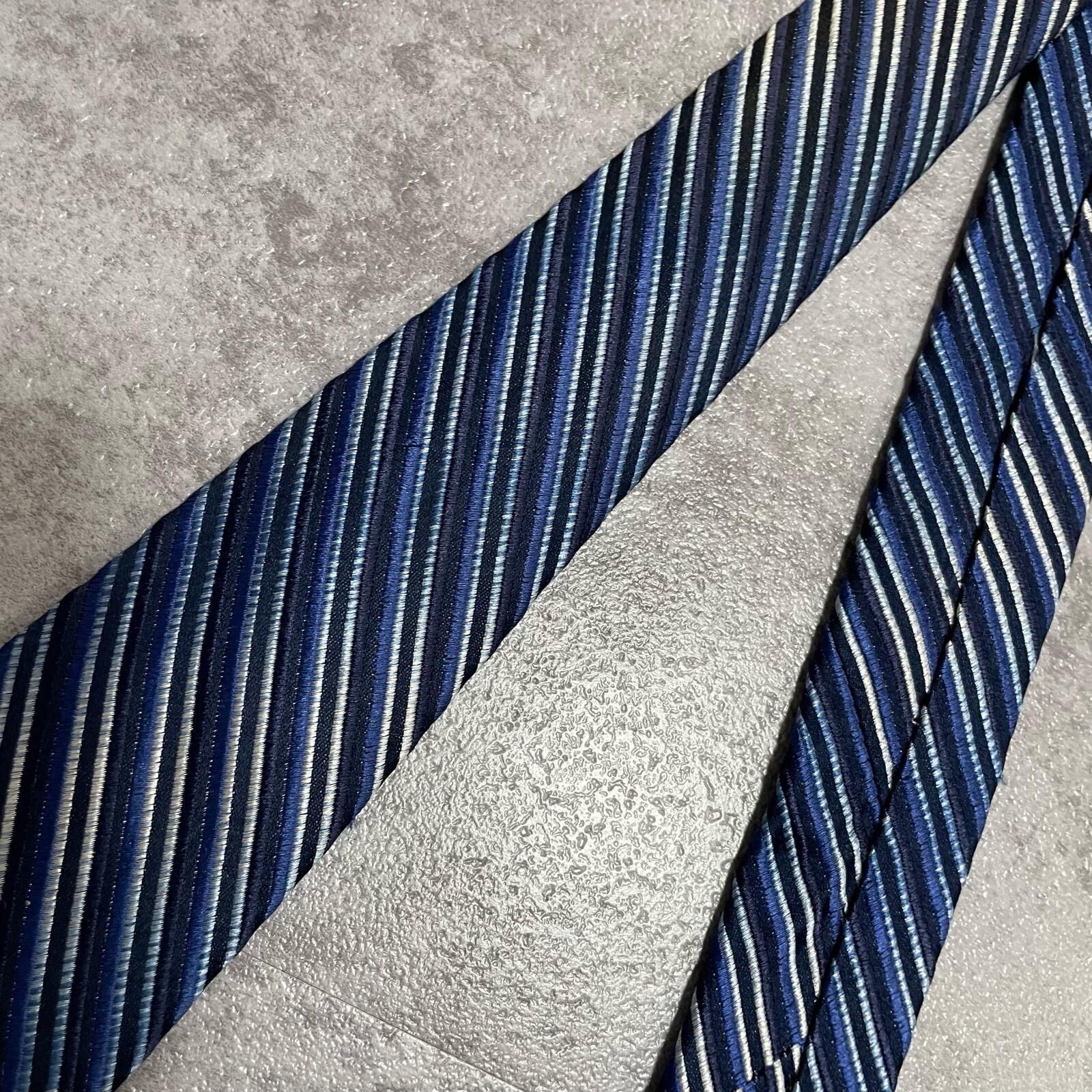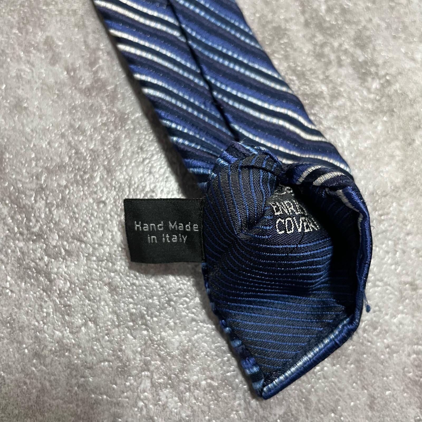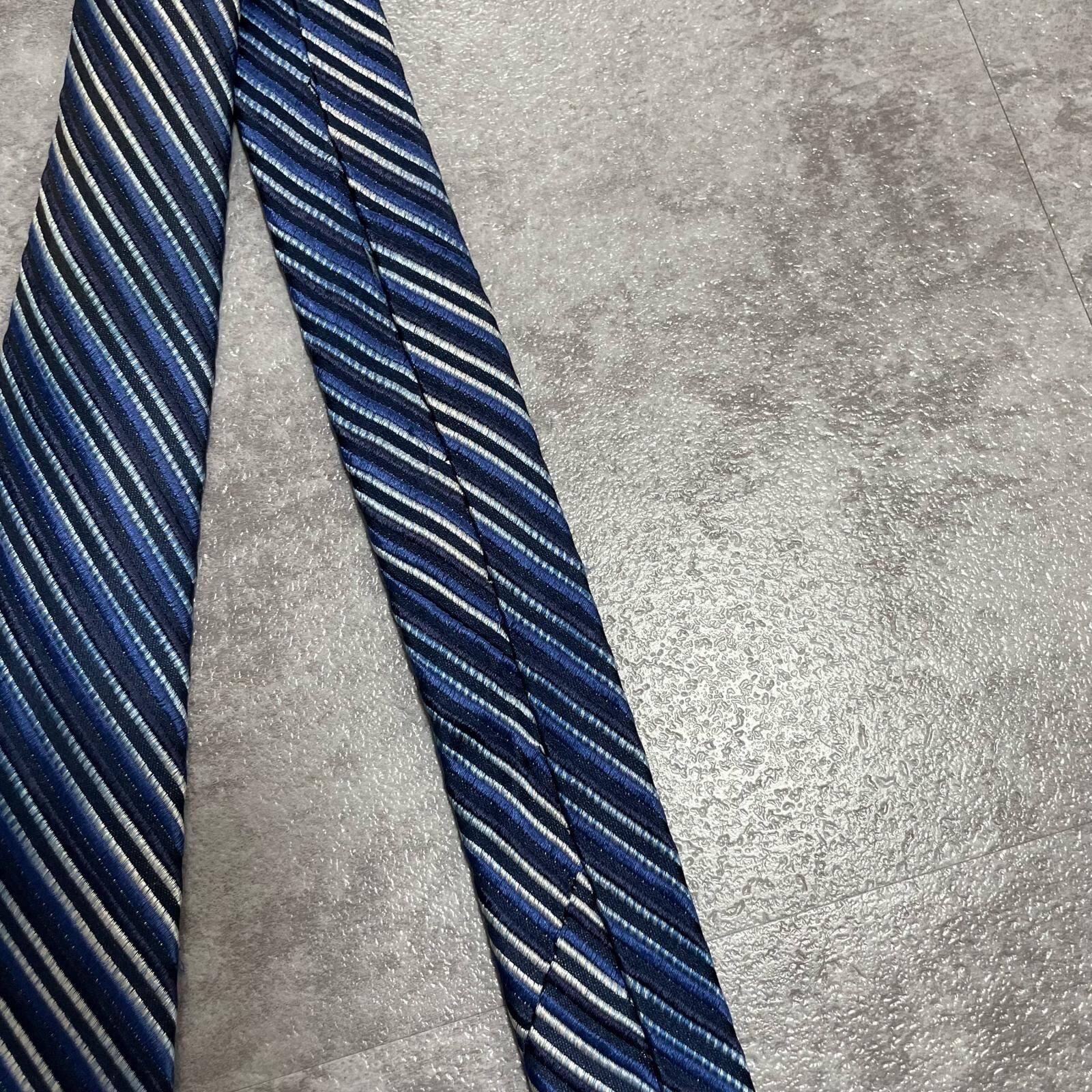 【ENRICO COVERI】エンリココベリ マルチストライプ シルクネクタイ シルク100% メンズ イタリア製 ブルー 青色 ネイビー 紺色 シルバー 銀色 ストライプ柄 クラシック ビジネス フォーマル