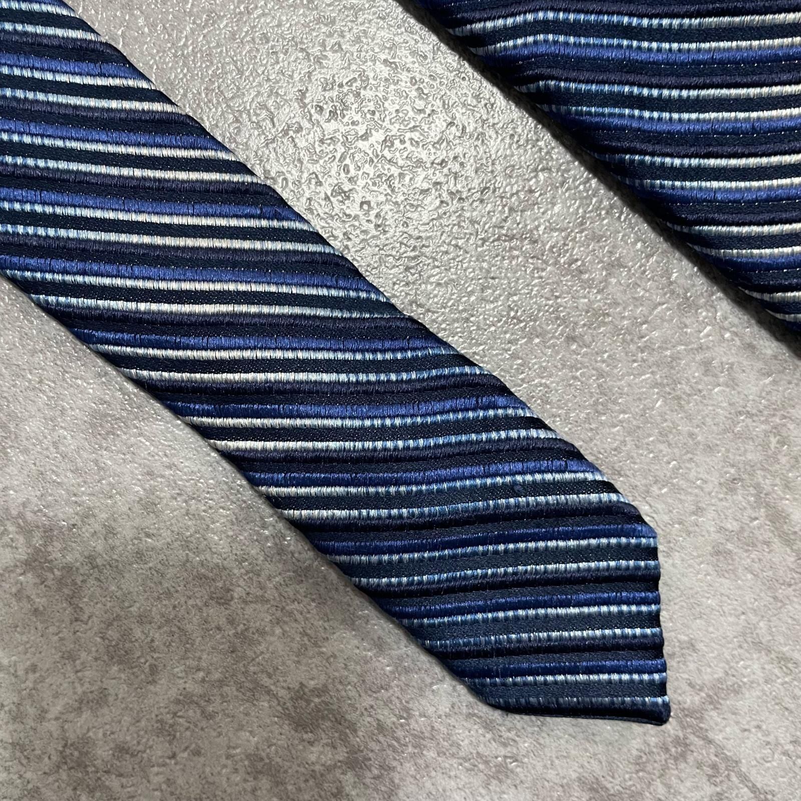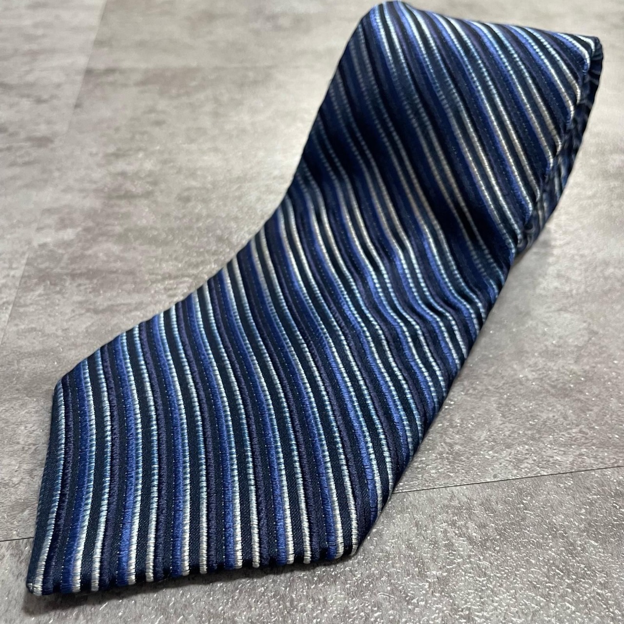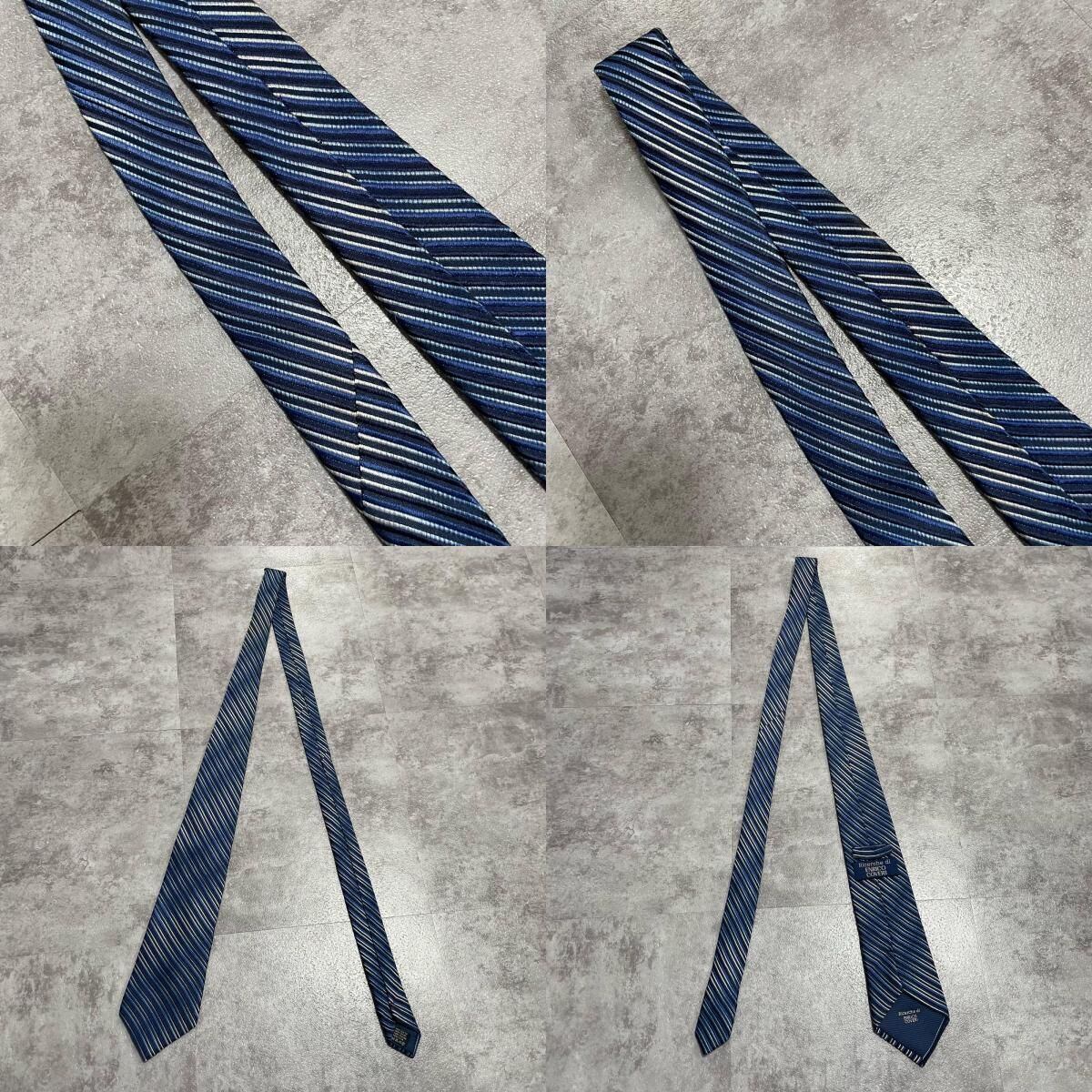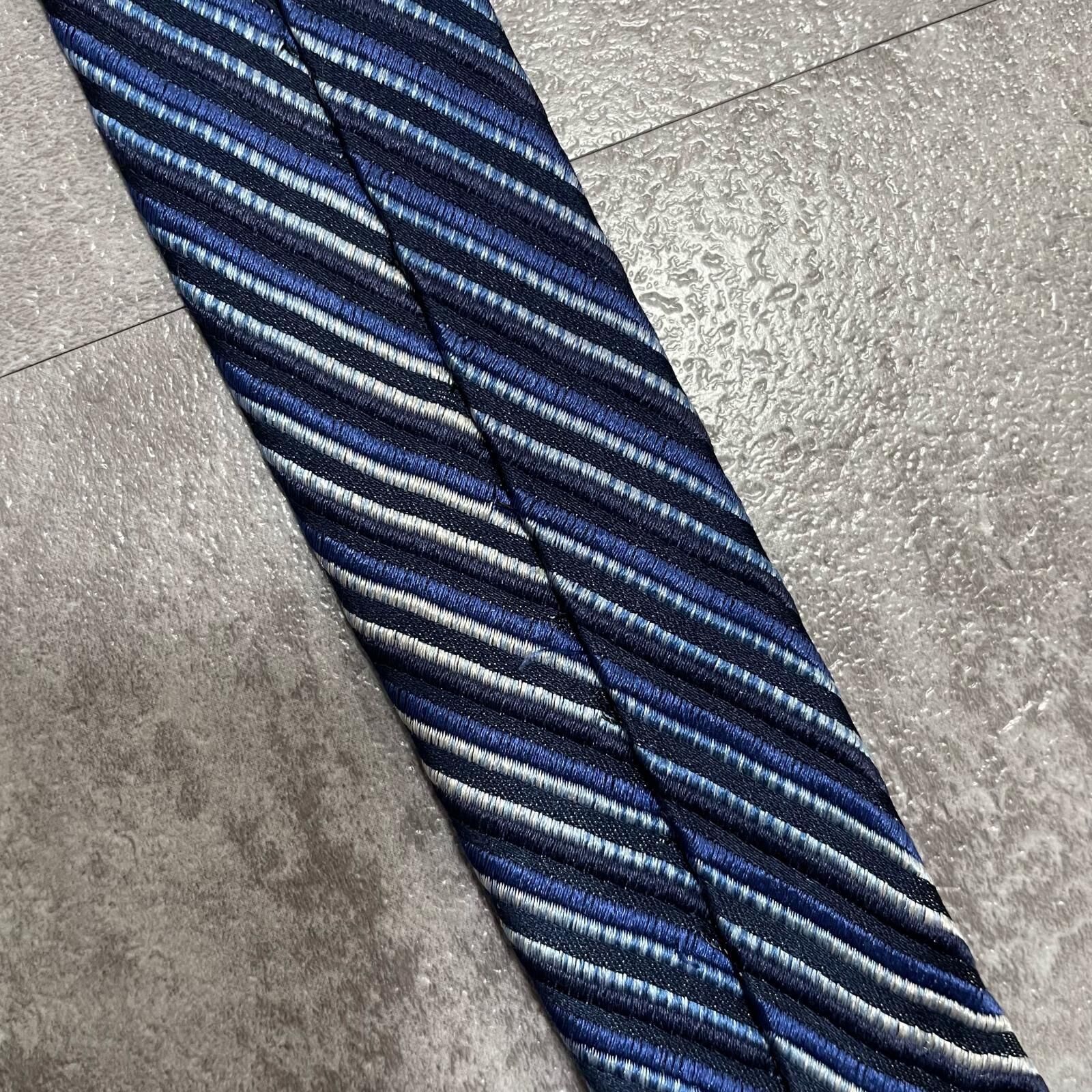 【ENRICO COVERI】エンリココベリ マルチストライプ シルクネクタイ シルク100% メンズ イタリア製 ブルー 青色 ネイビー 紺色 シルバー 銀色 ストライプ柄 クラシック ビジネス フォーマル