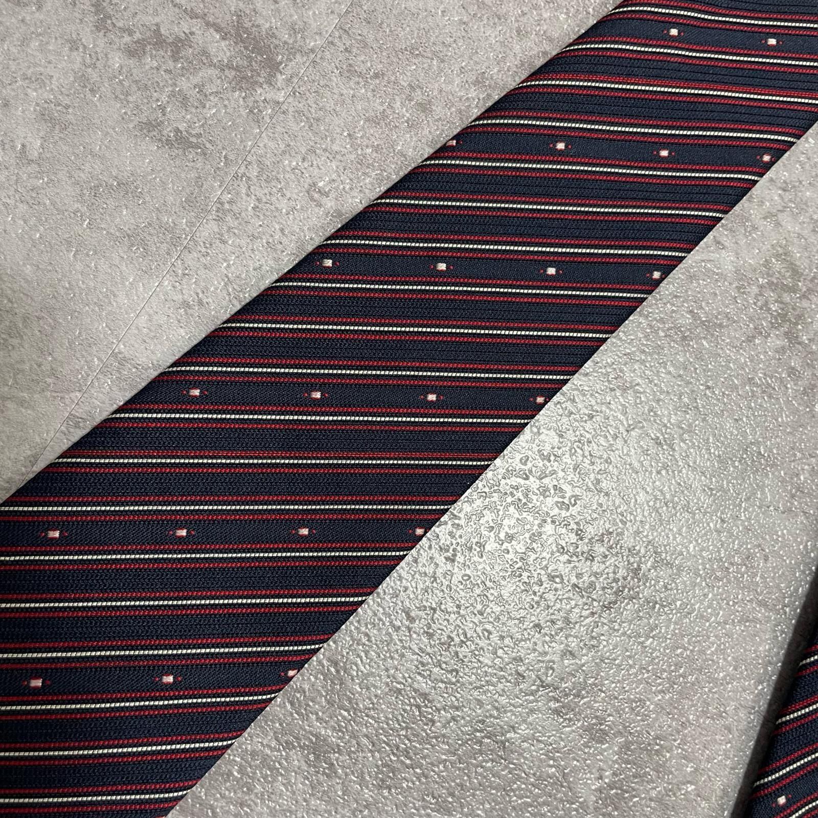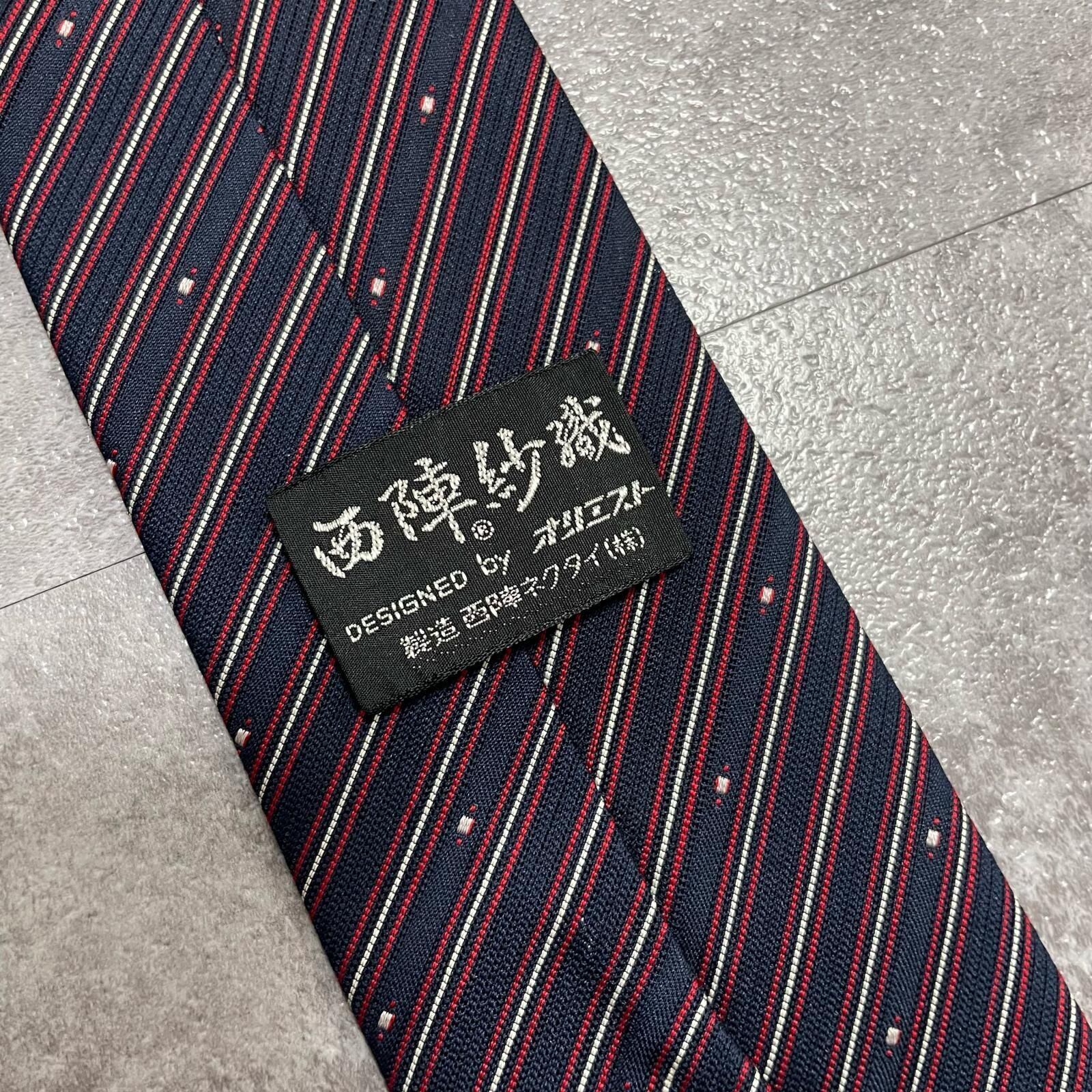 【NISHIJIN】西陣織 ストライプ小紋柄ネクタイ シルク100% メンズ 日本製 ネイビー 紺色 レッド 赤色 ホワイト 白色 ドット柄 レジメンタルデザイン スーツスタイル トラッドデザイン