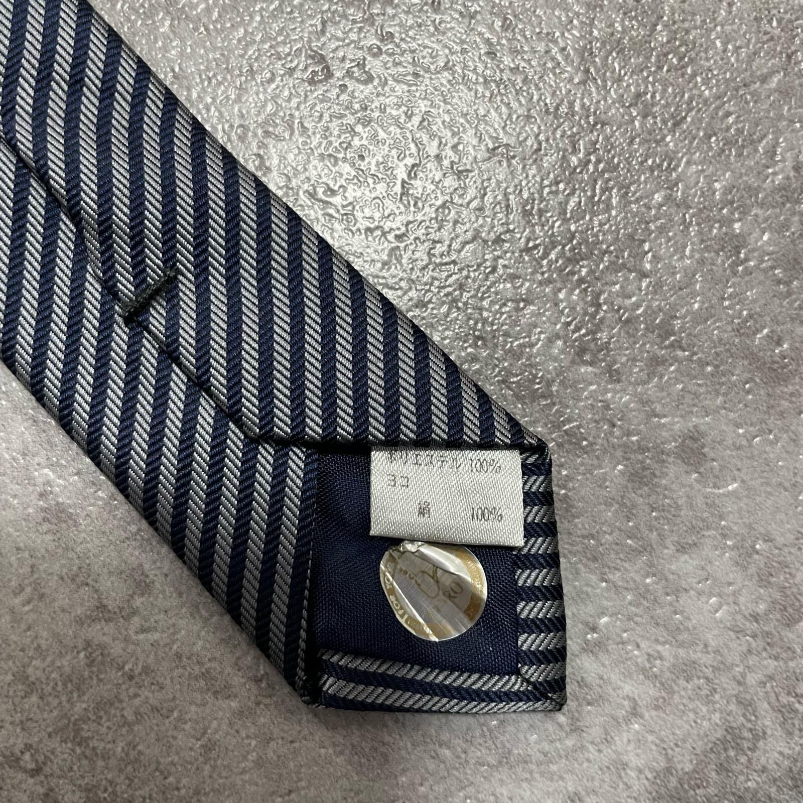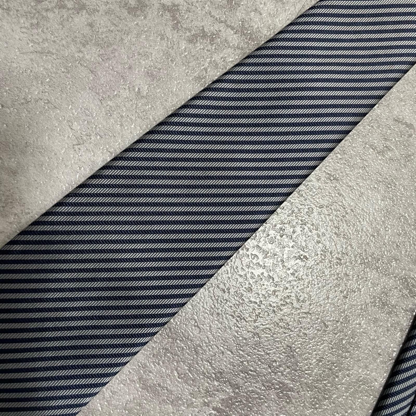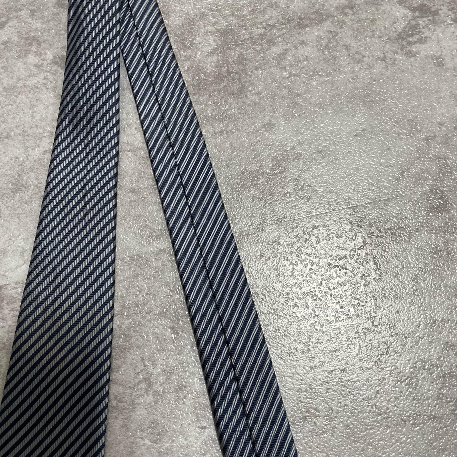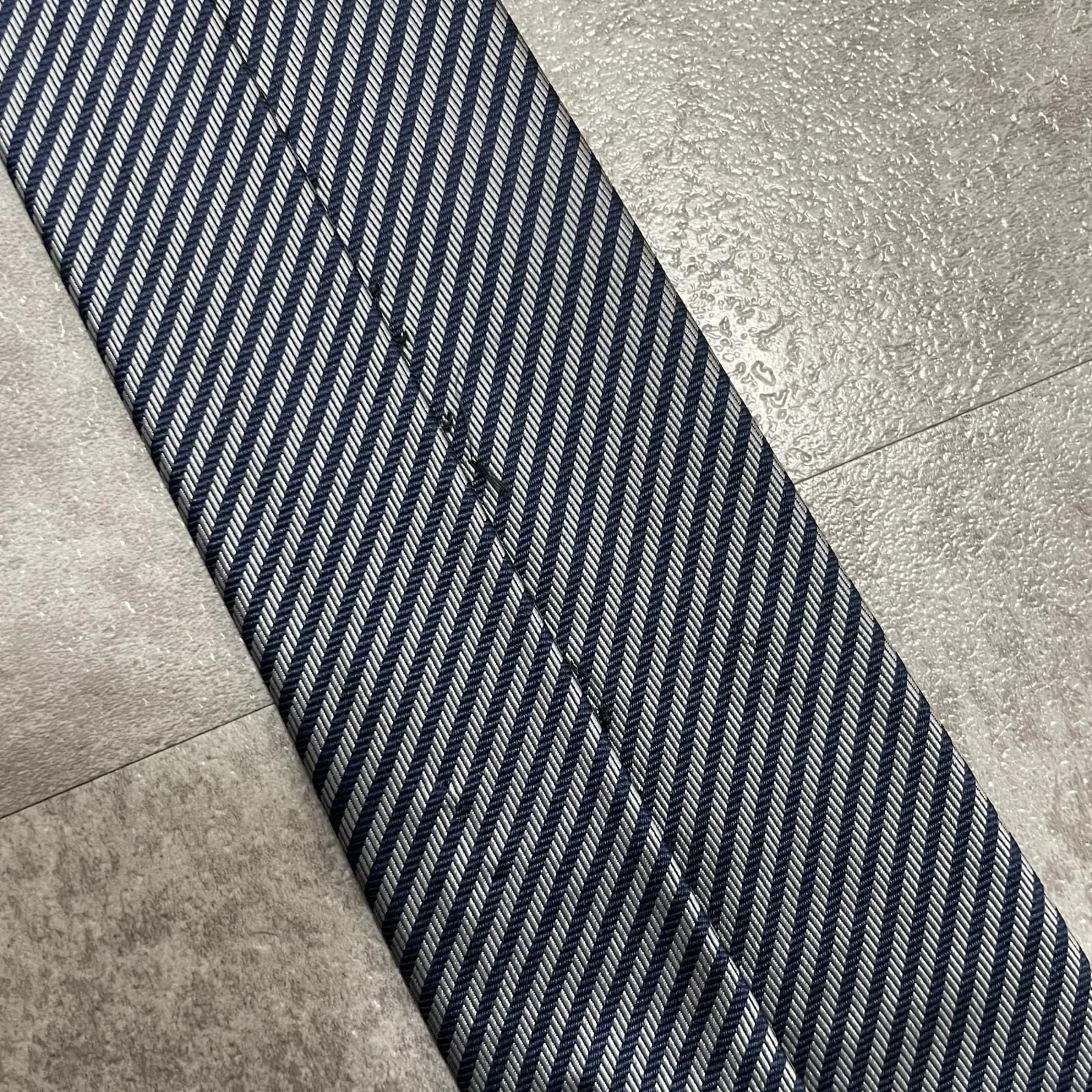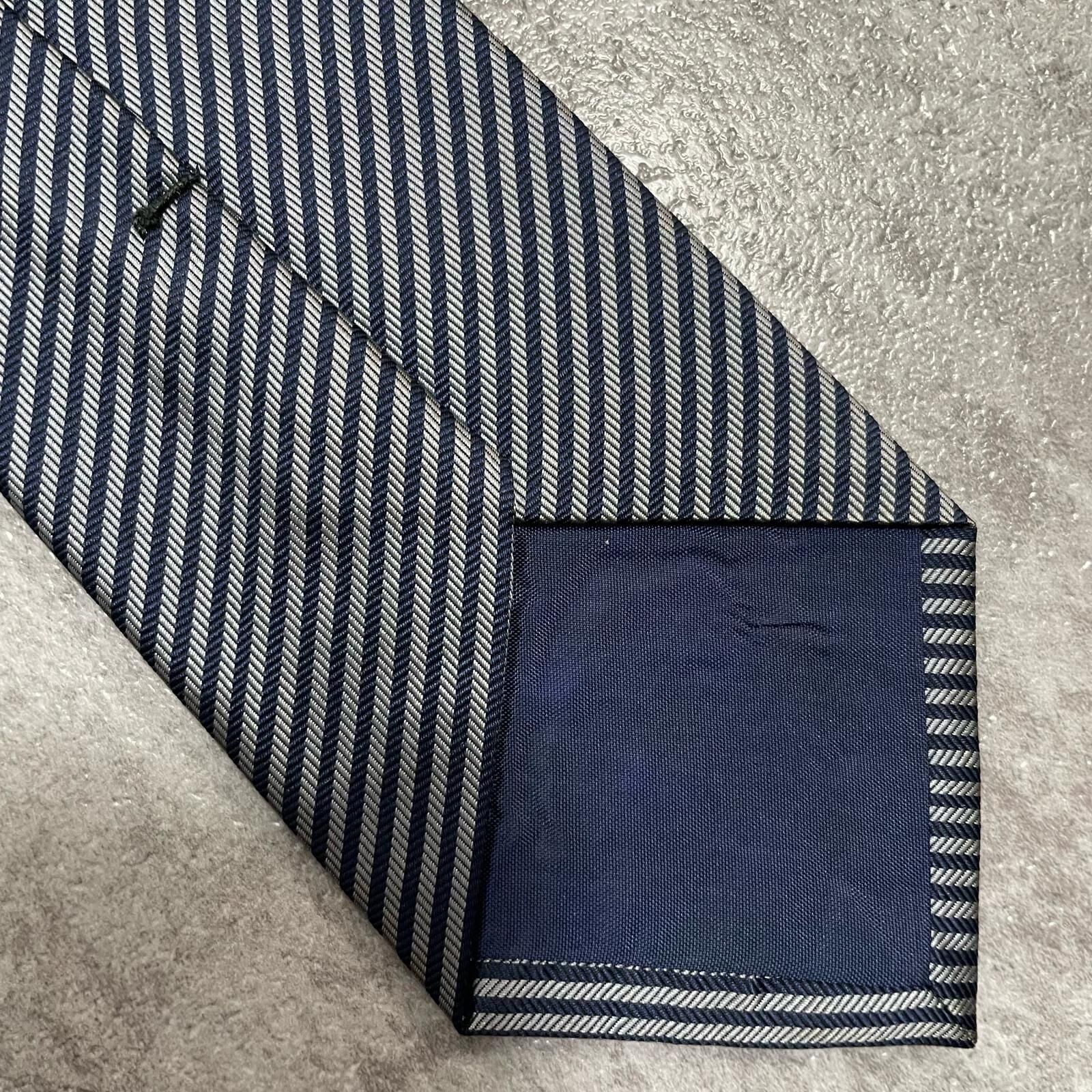 【TOROY】トロイ ロゴ入りストライプ柄ネクタイ シルク/ポリエステル メンズ 日本製 ネイビー 紺色 シルバー 銀色 ブランドロゴ 斜めストライプ スーツスタイル クラシックデザイン