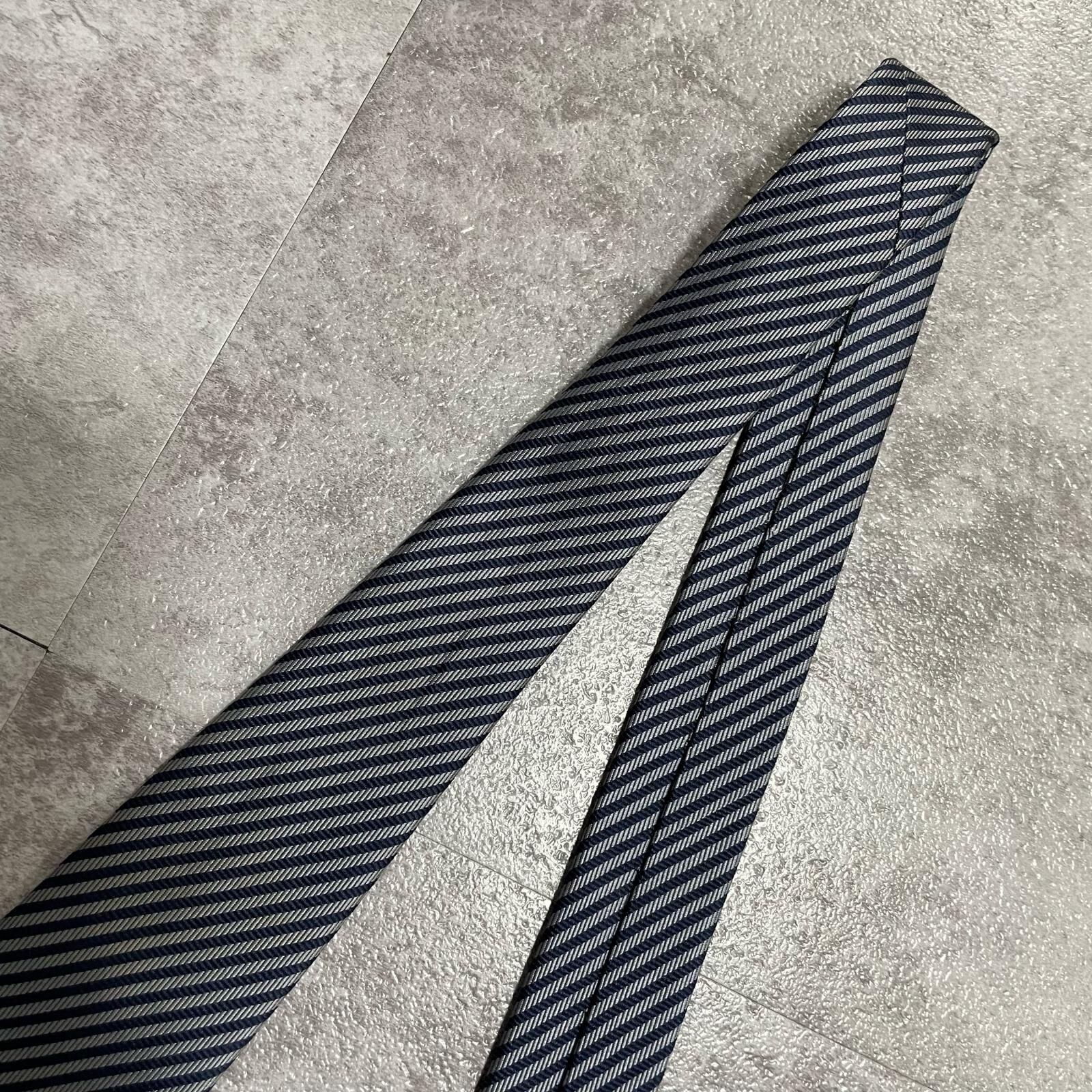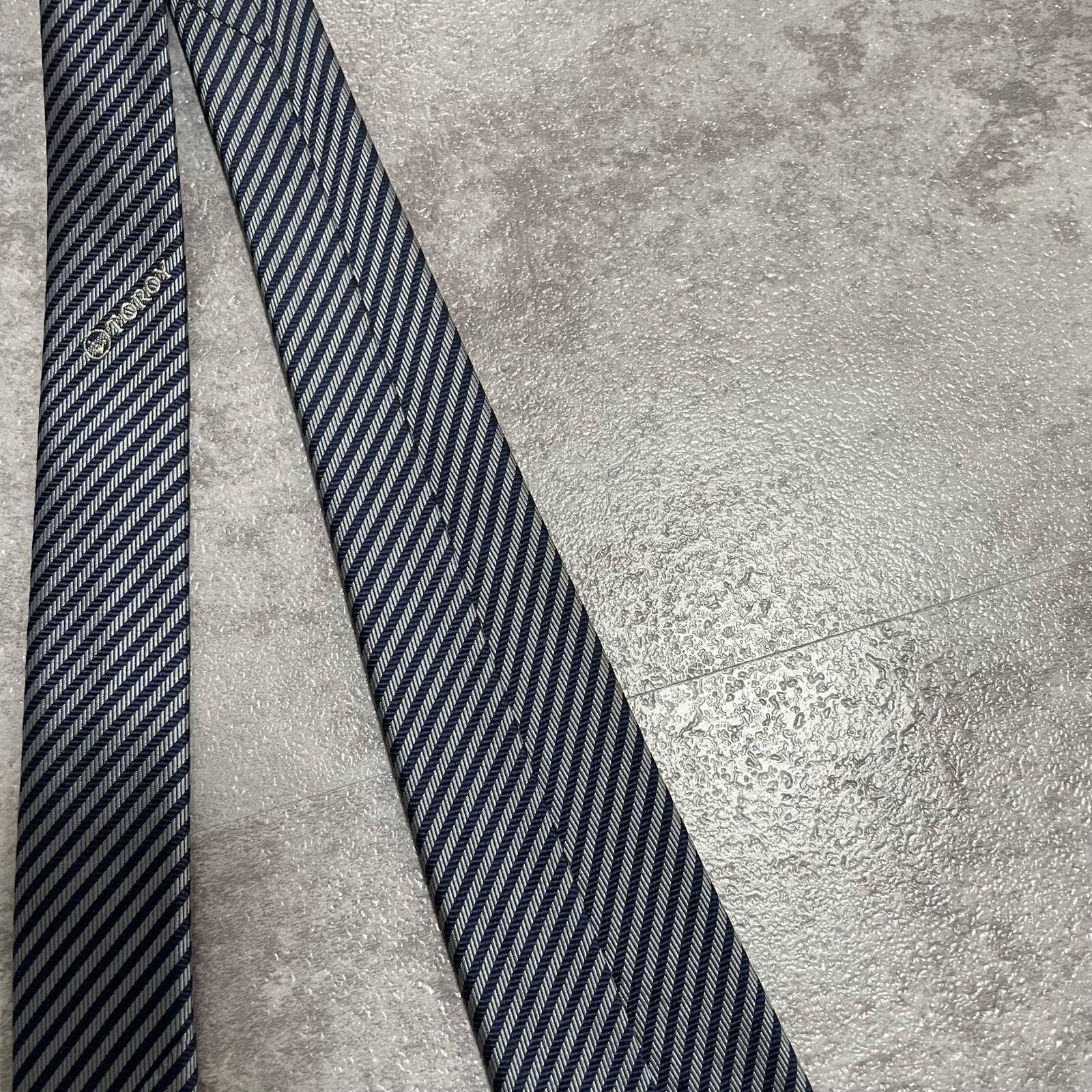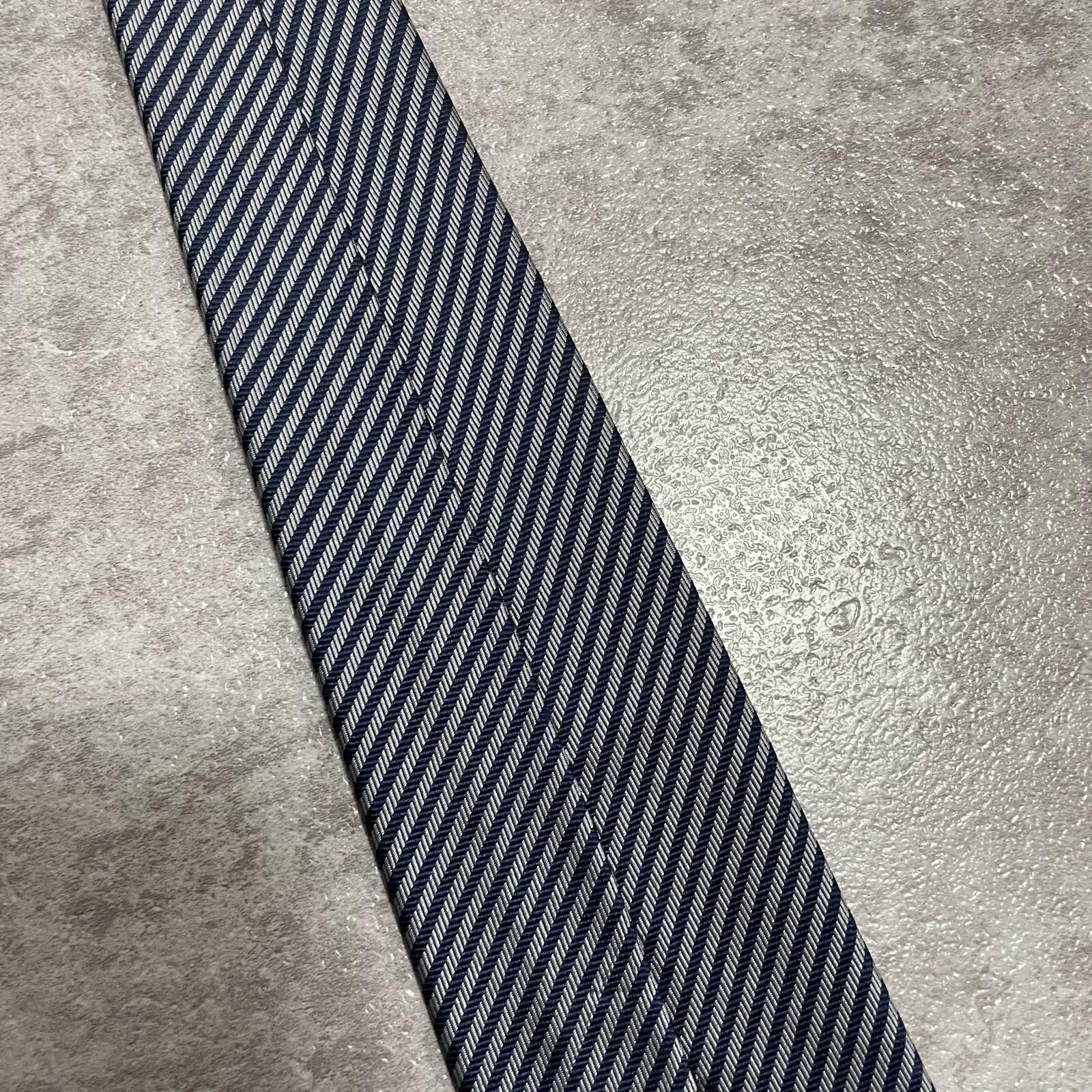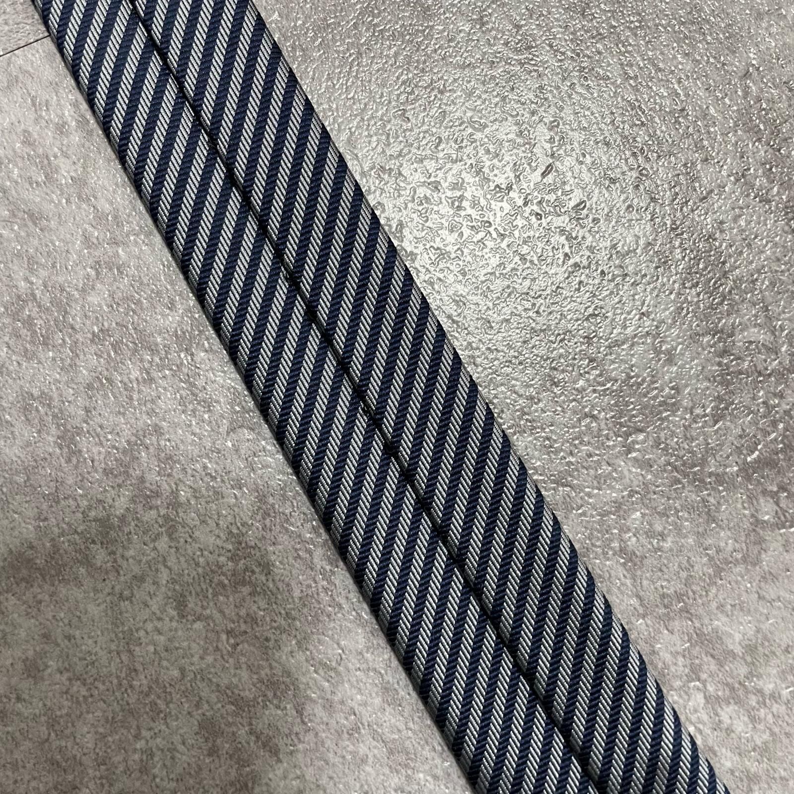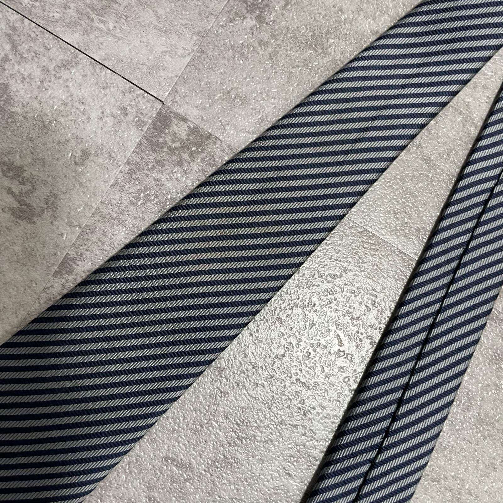 【TOROY】トロイ ロゴ入りストライプ柄ネクタイ シルク/ポリエステル メンズ 日本製 ネイビー 紺色 シルバー 銀色 ブランドロゴ 斜めストライプ スーツスタイル クラシックデザイン