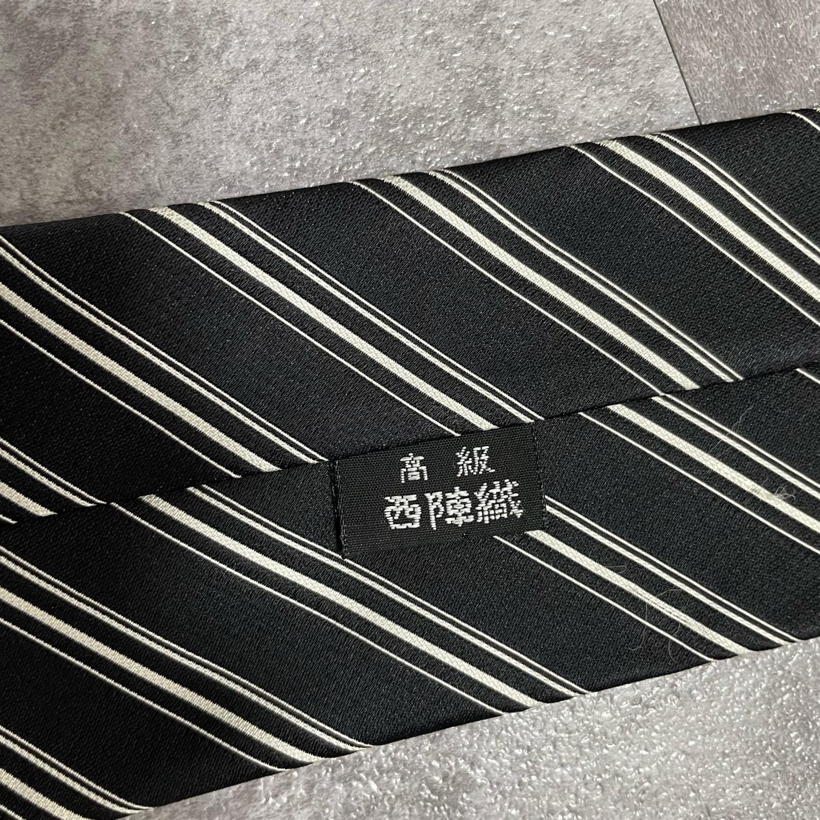【NISHIJIN】西陣織 レジメンタルストライプ柄ネクタイ アセテート/キュプラ メンズ 日本製 ブラック 黒色 ネイビー 紺色 ホワイト 白色 斜めストライプ ビジネス向け