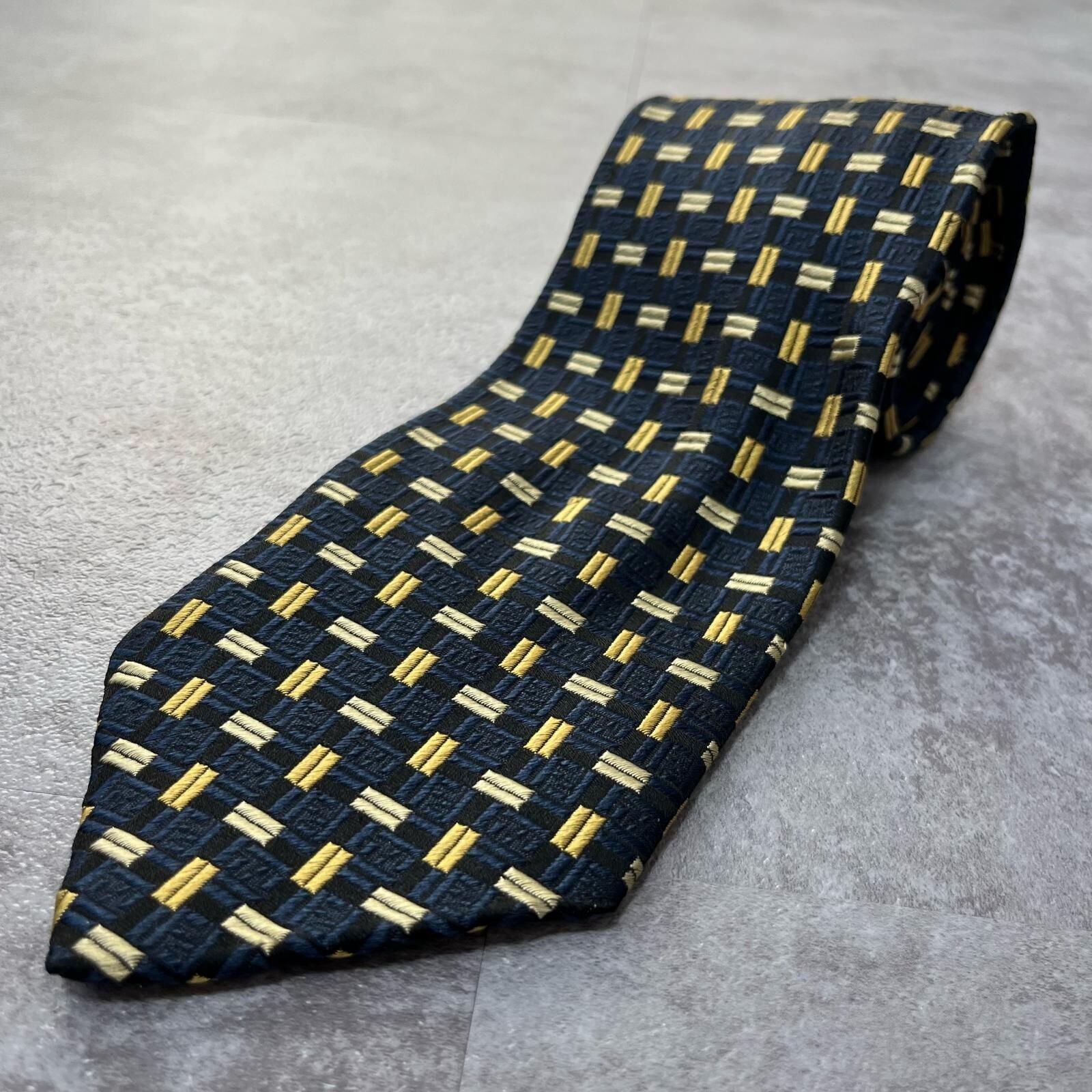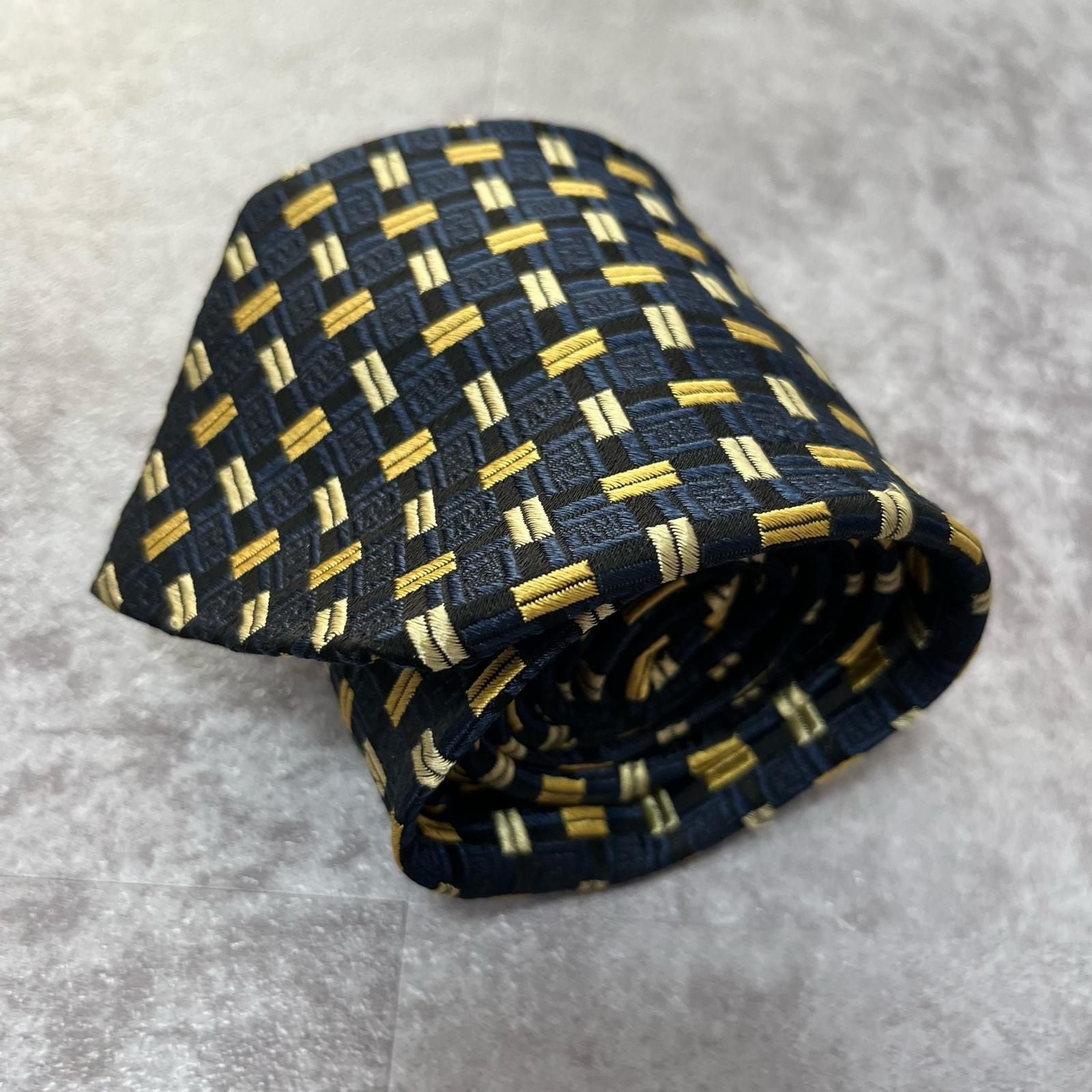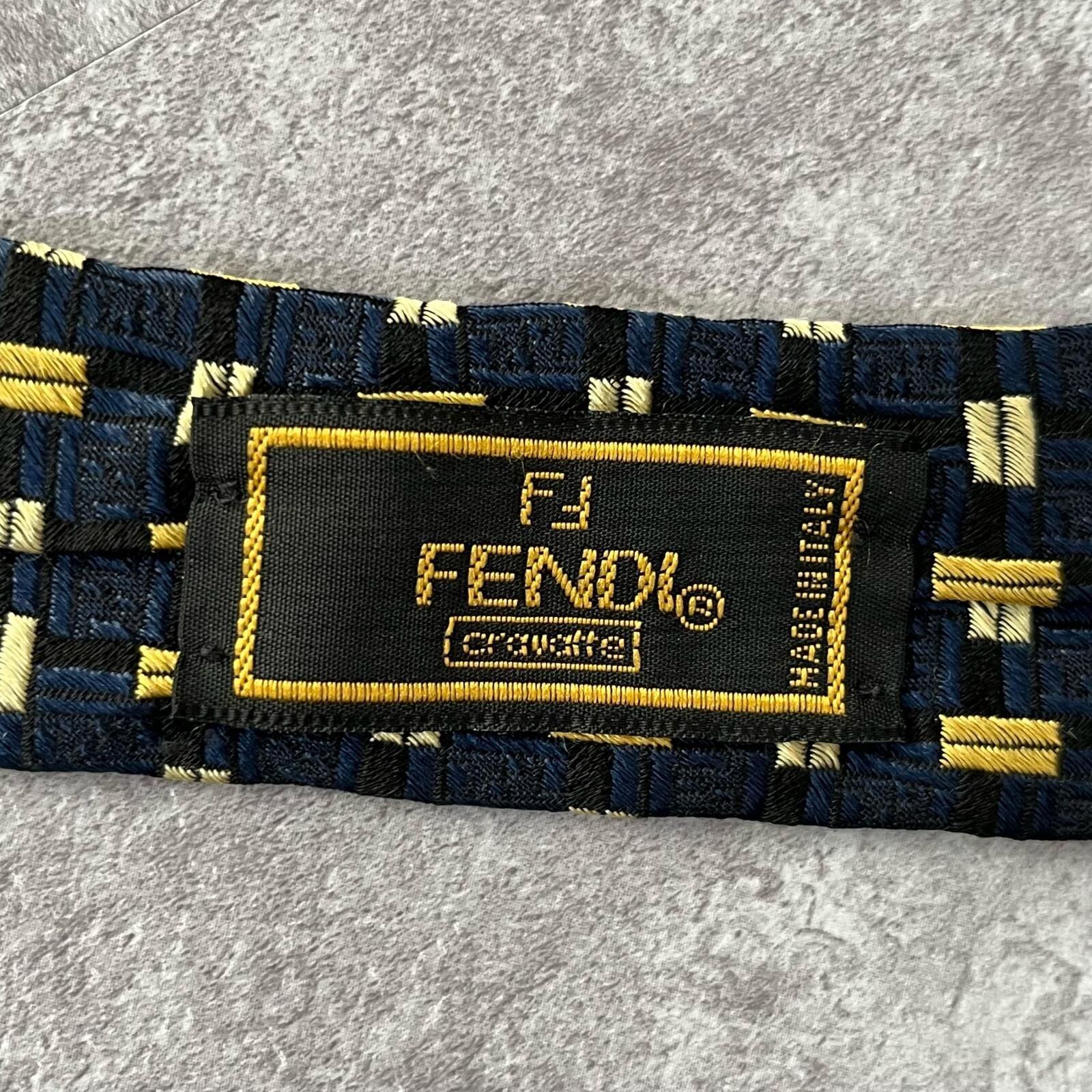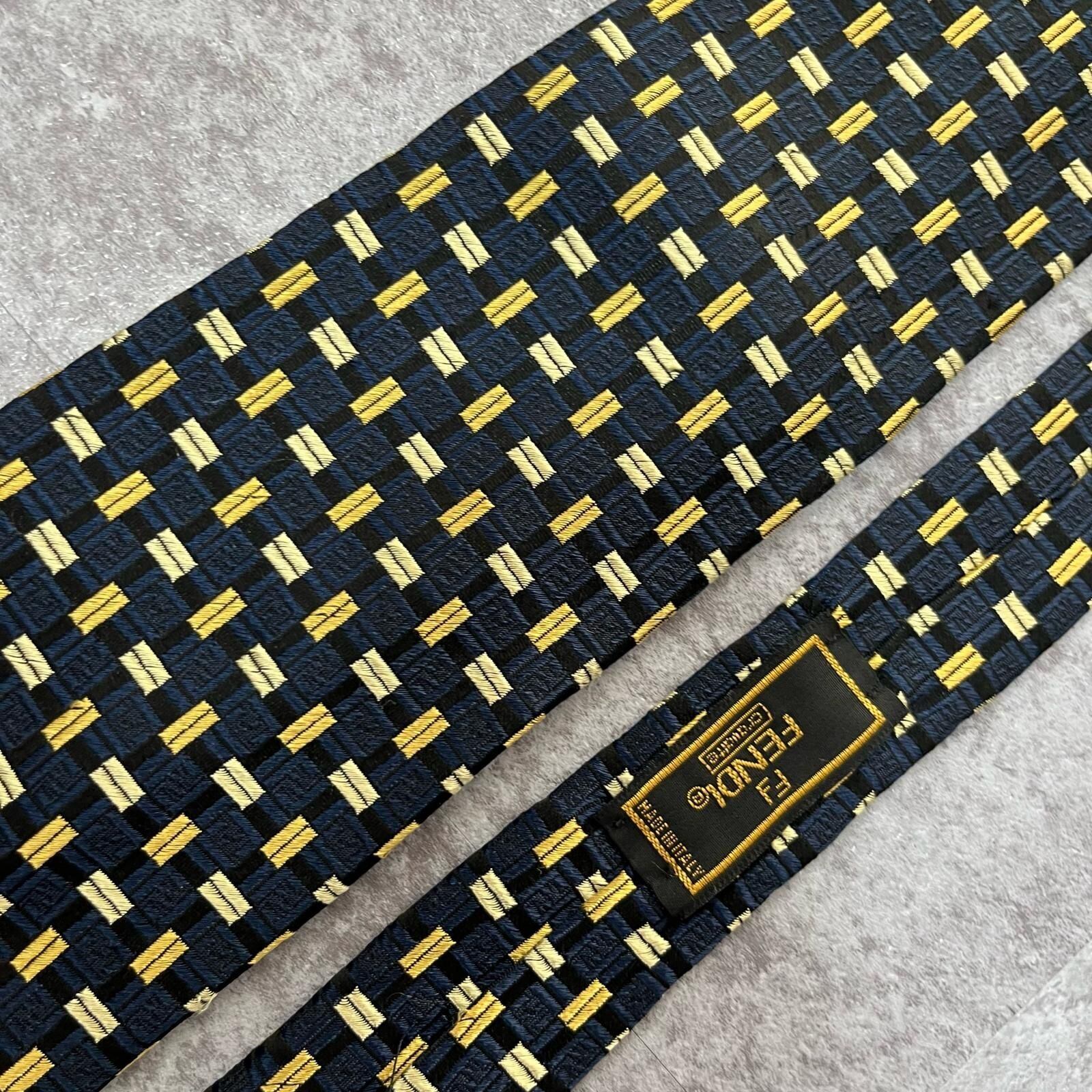 【FENDI】フェンディ 総ロゴ特殊チェック柄ネクタイ シャドウFFロゴ シルク/アセテート メンズ ネイビー 紺色 ゴールド 金 ビジネス向け イタリア製