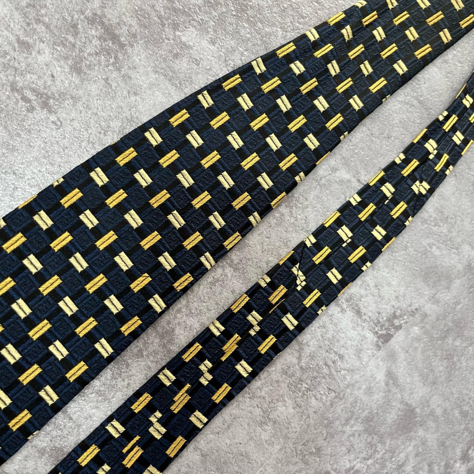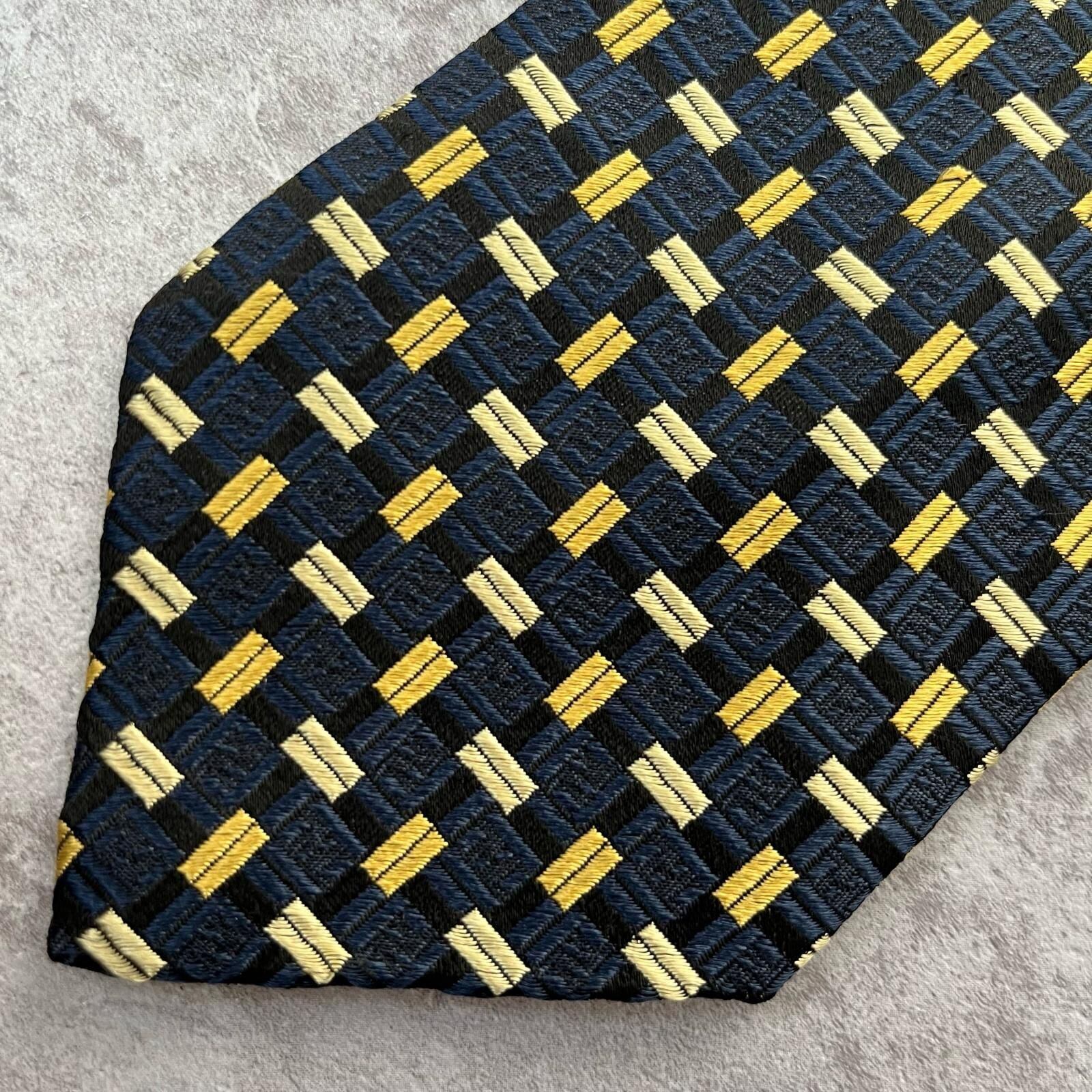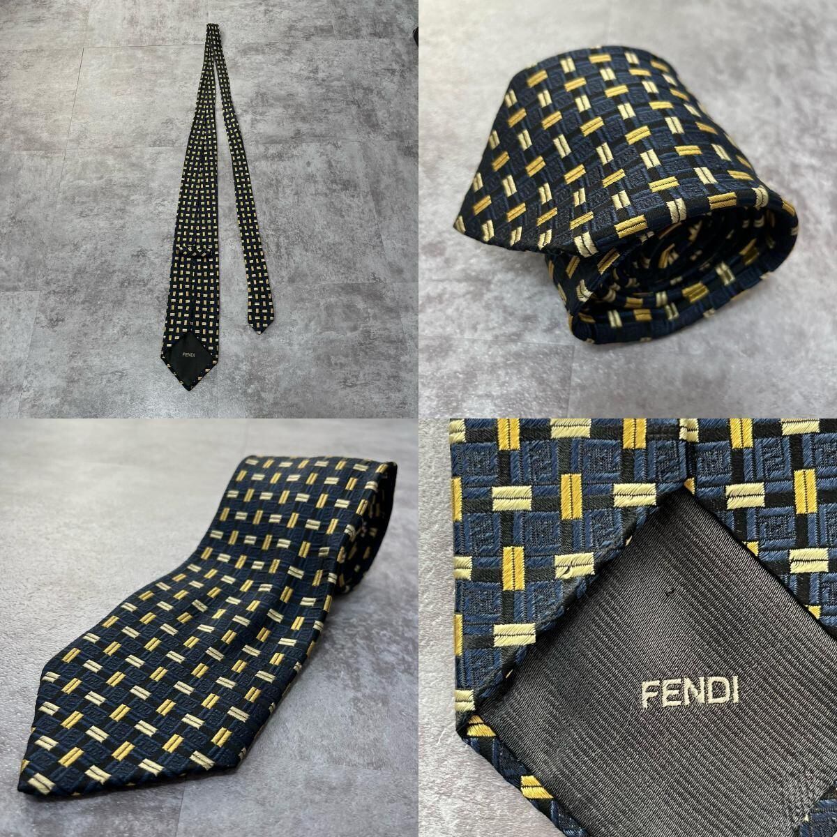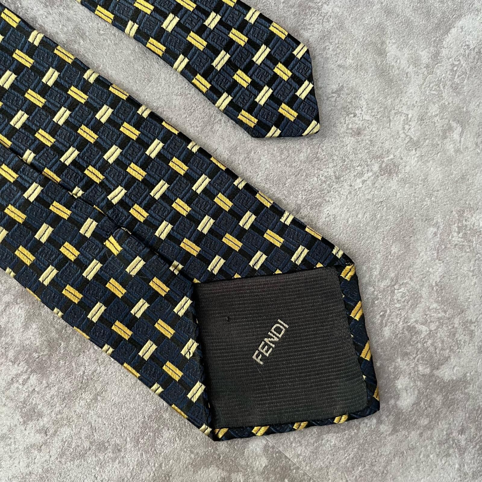 【FENDI】フェンディ 総ロゴ特殊チェック柄ネクタイ シャドウFFロゴ シルク/アセテート メンズ ネイビー 紺色 ゴールド 金 ビジネス向け イタリア製