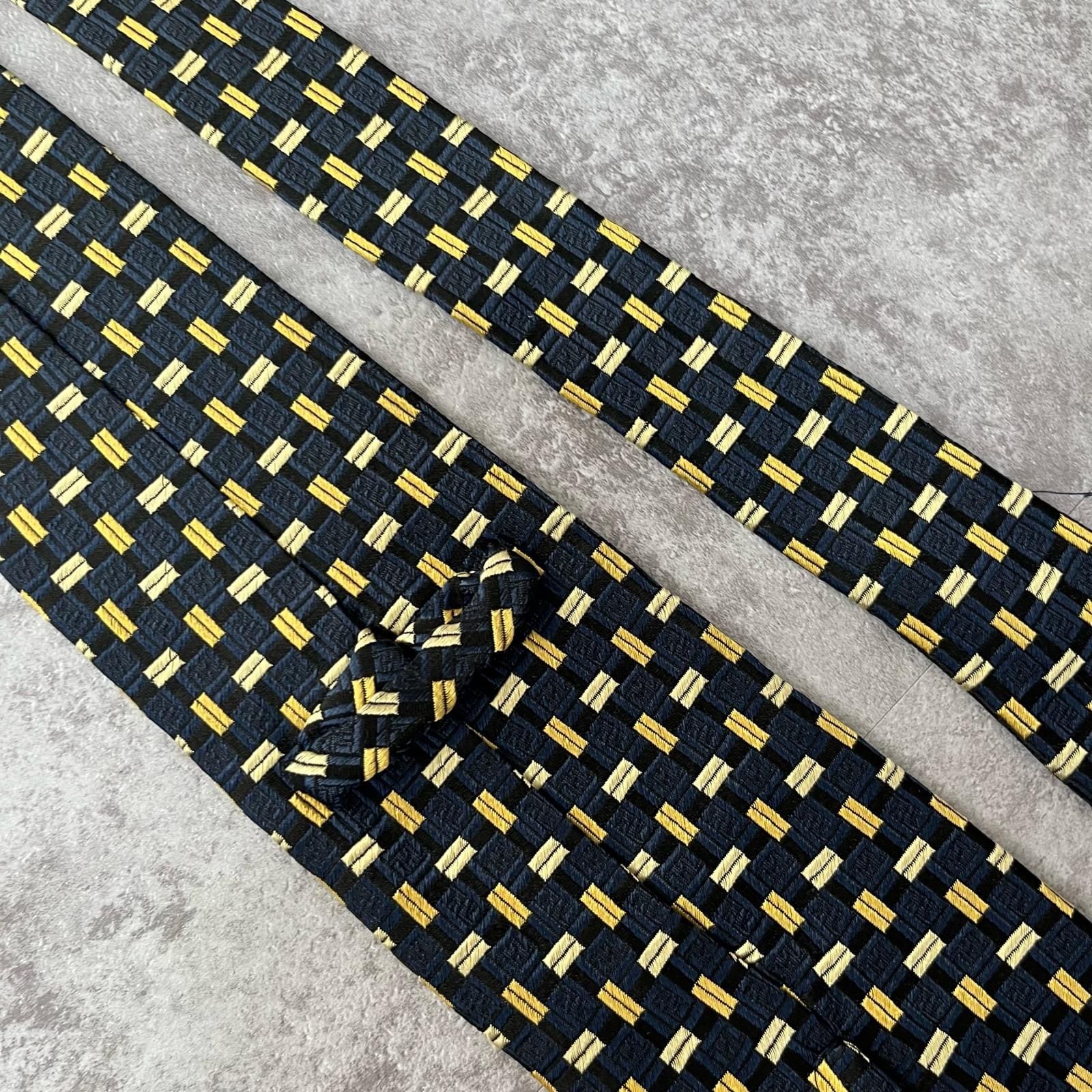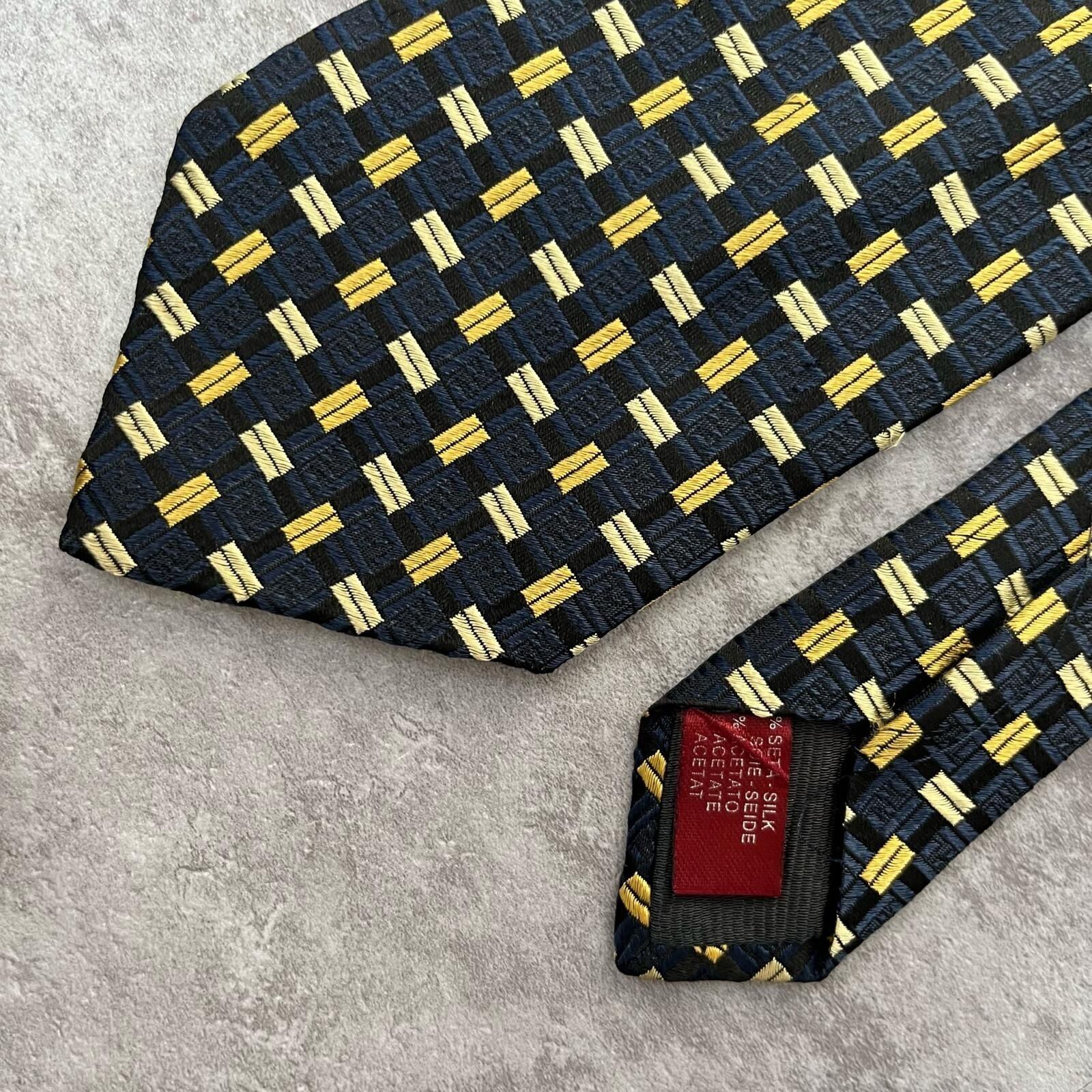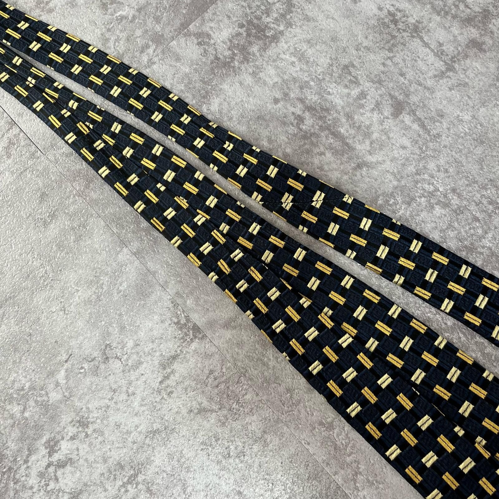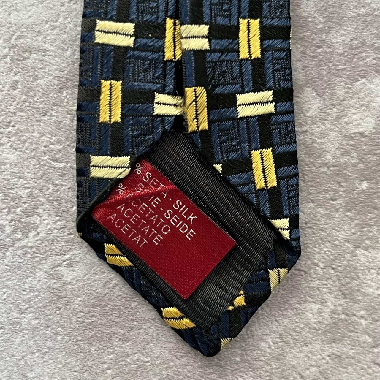 【FENDI】フェンディ 総ロゴ特殊チェック柄ネクタイ シャドウFFロゴ シルク/アセテート メンズ ネイビー 紺色 ゴールド 金 ビジネス向け イタリア製