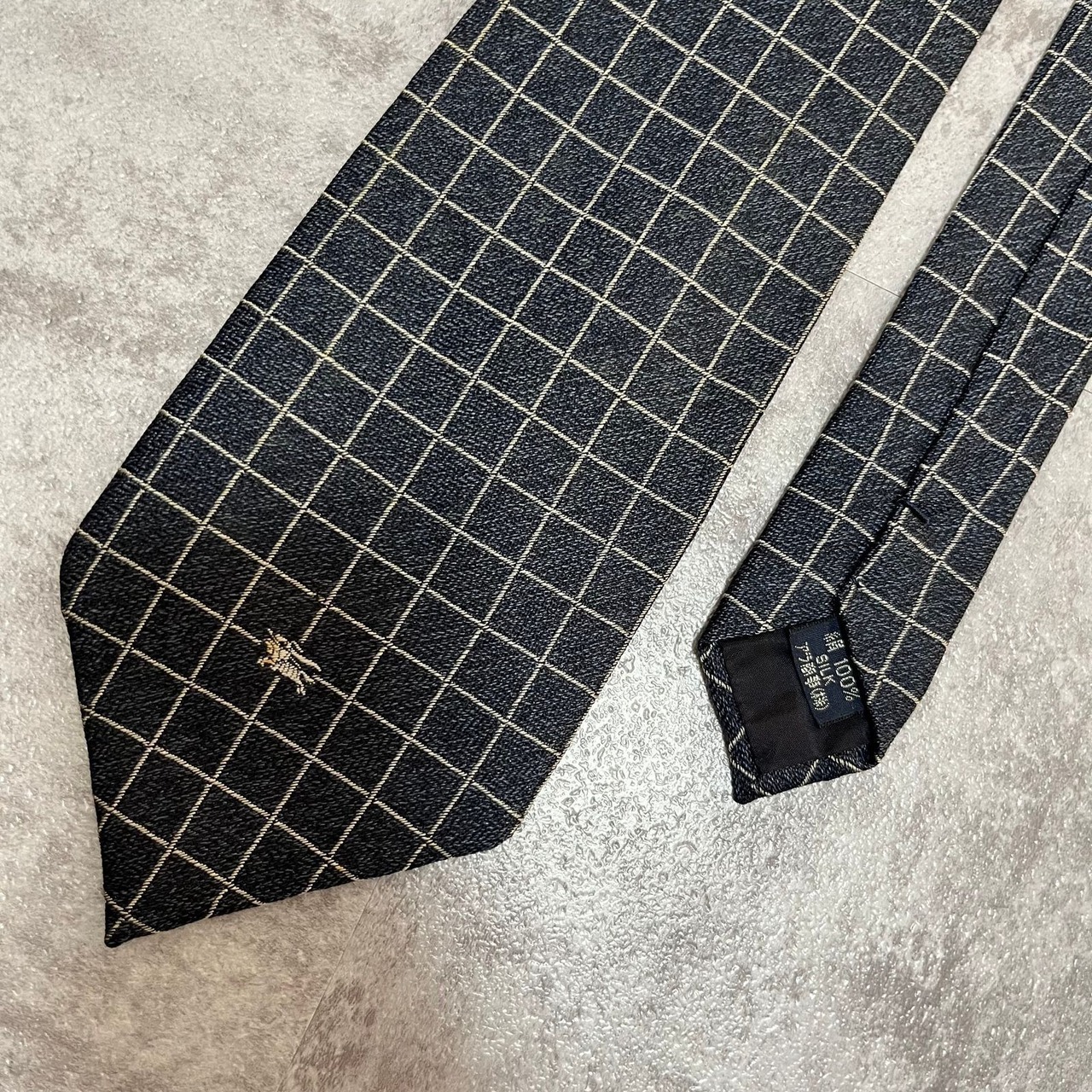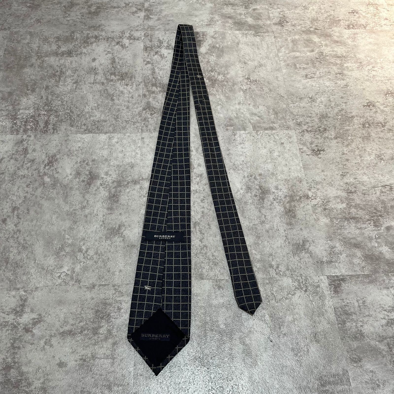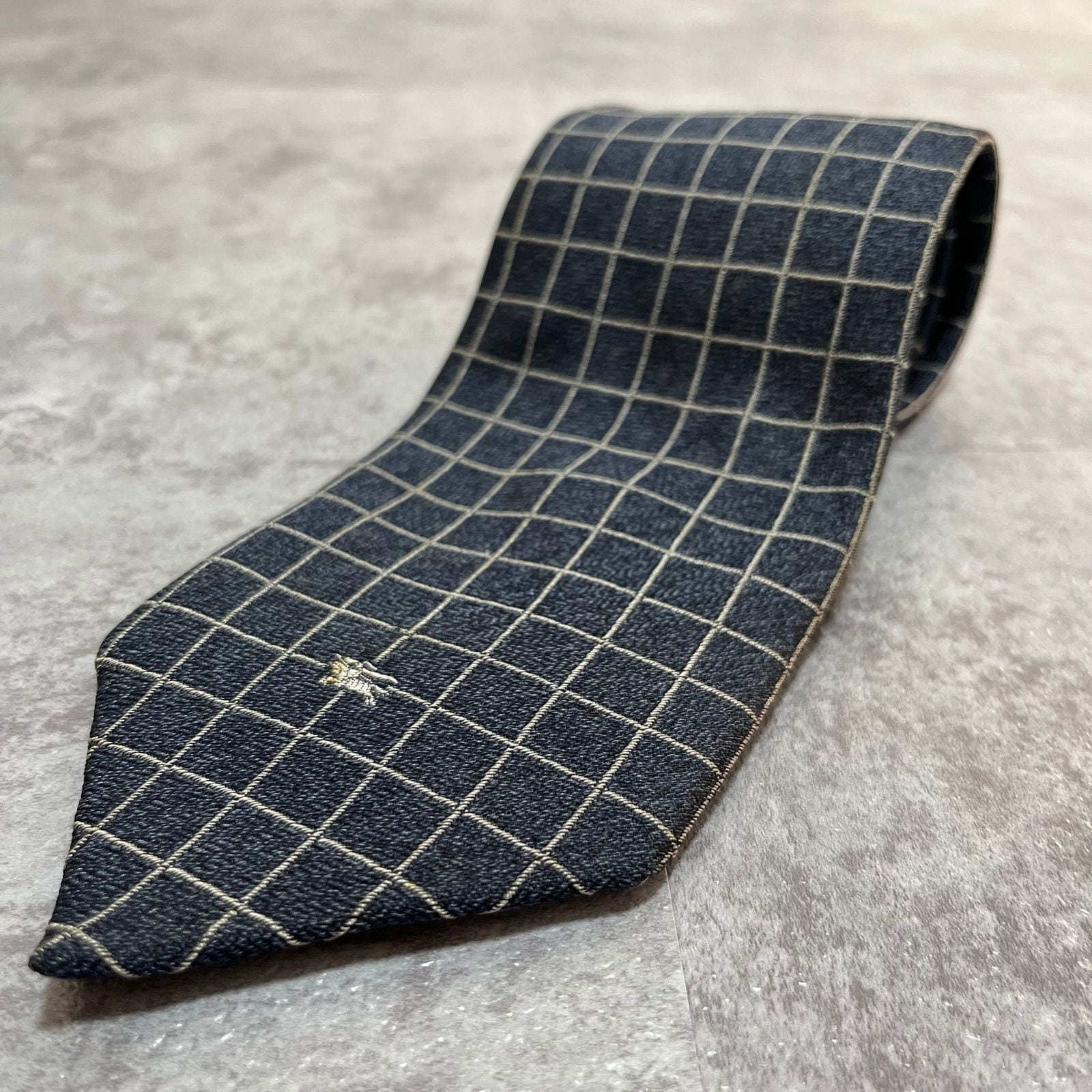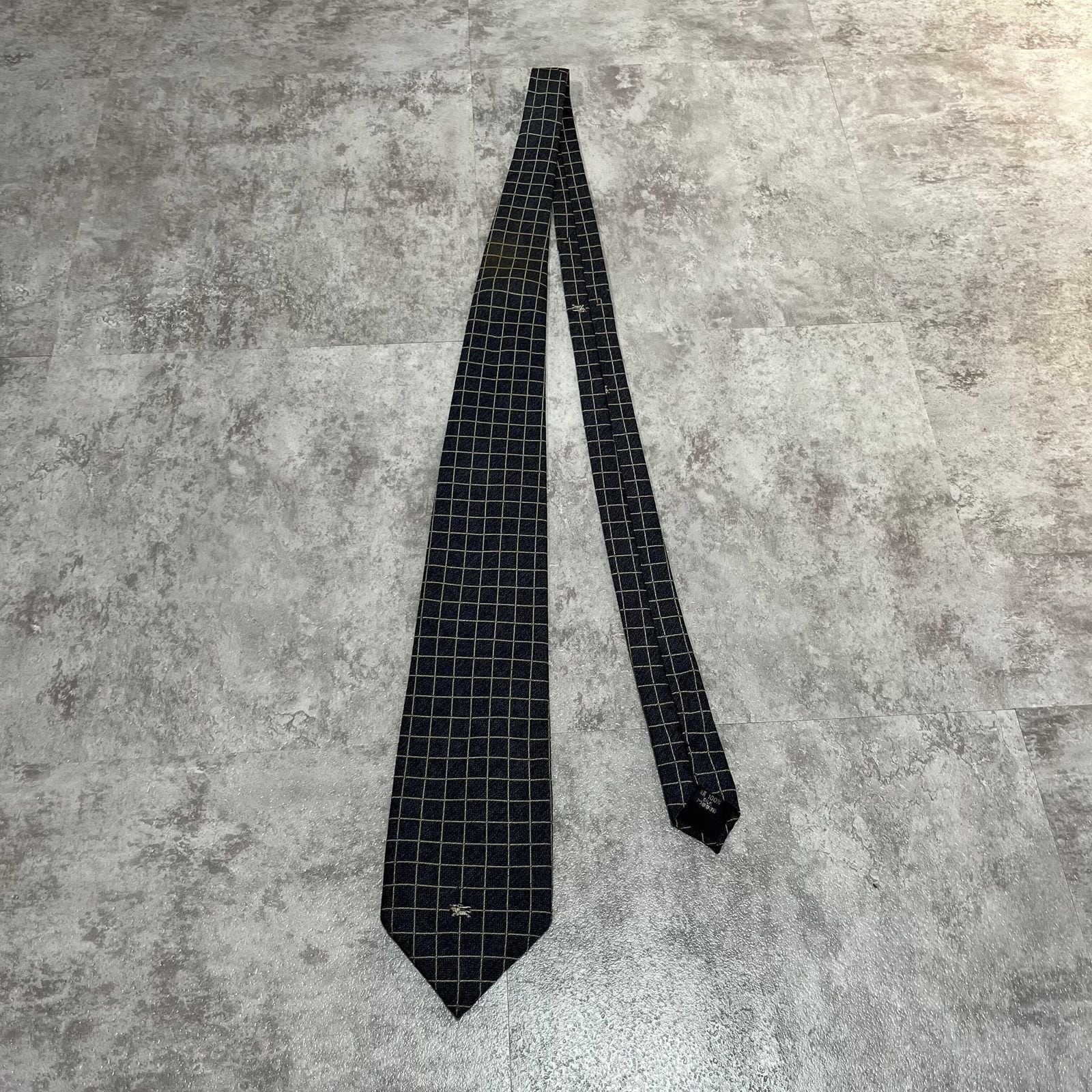 【Burberry】ホースロゴ入りチェック柄ネクタイ ネイビー 紺色 ビジネス向け シンプル バーバリー 日本製