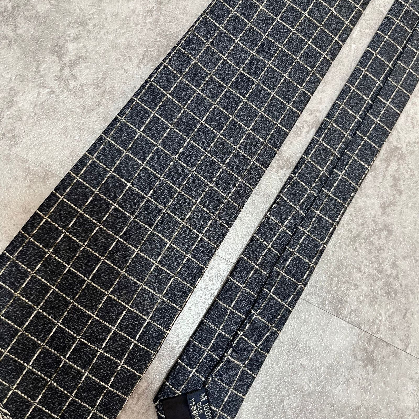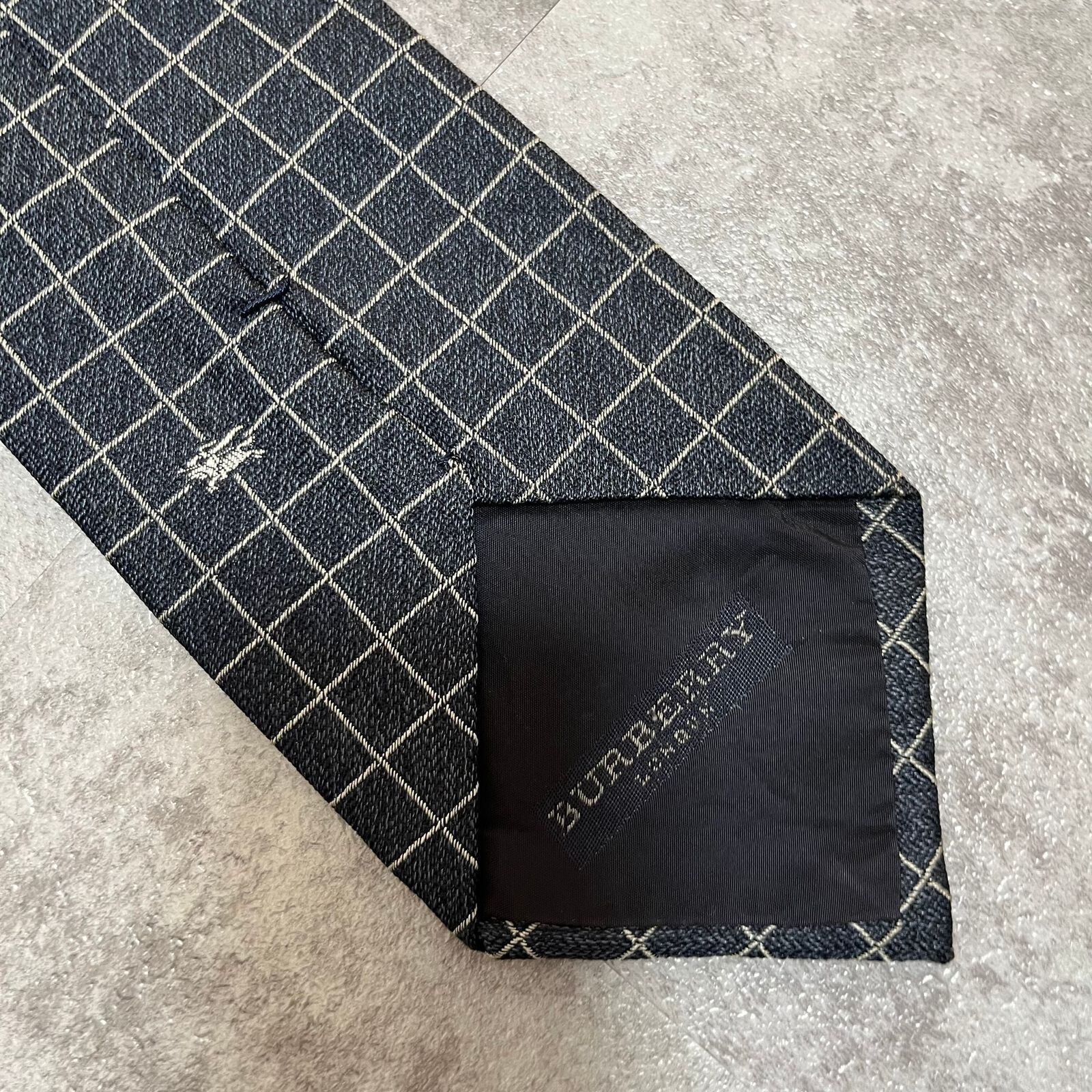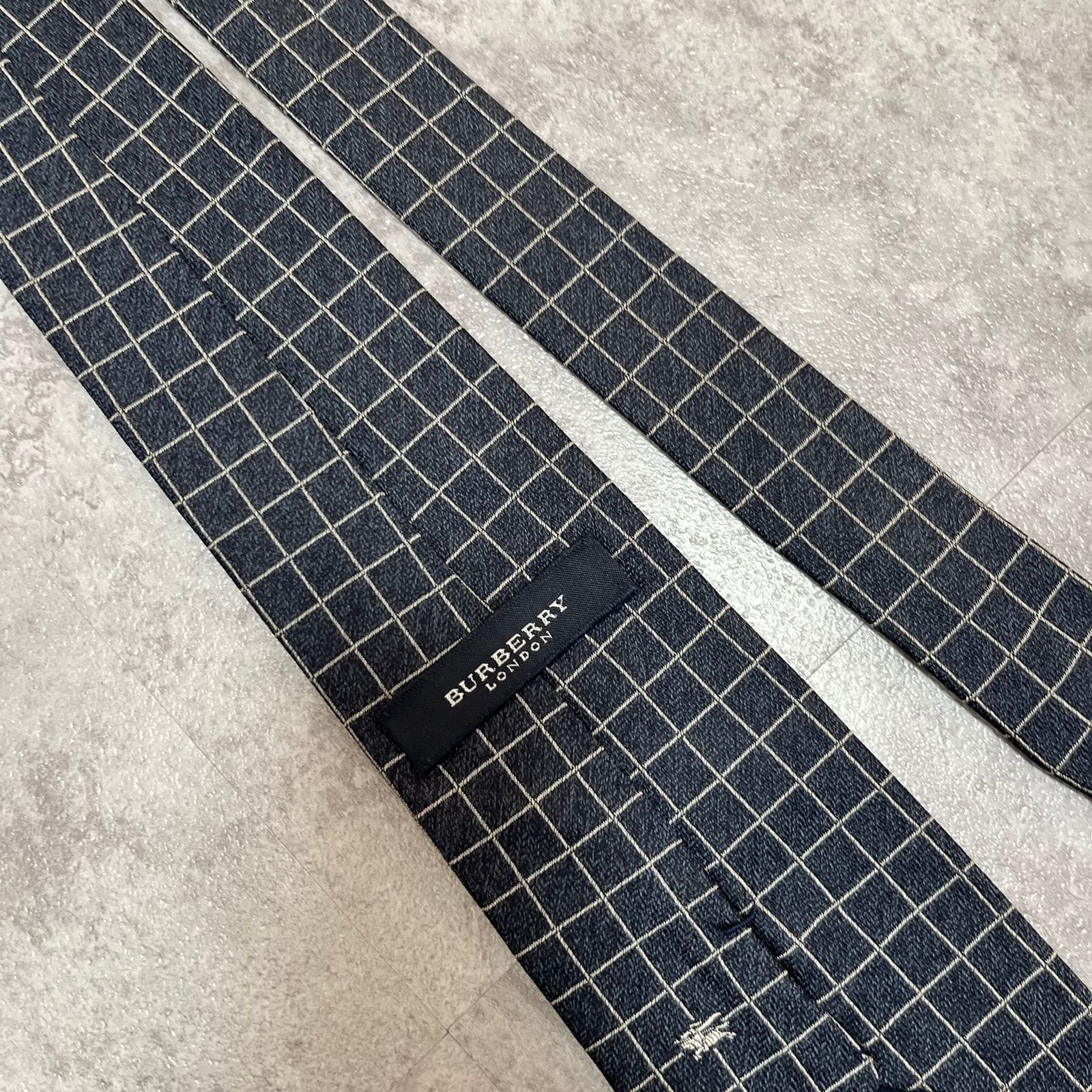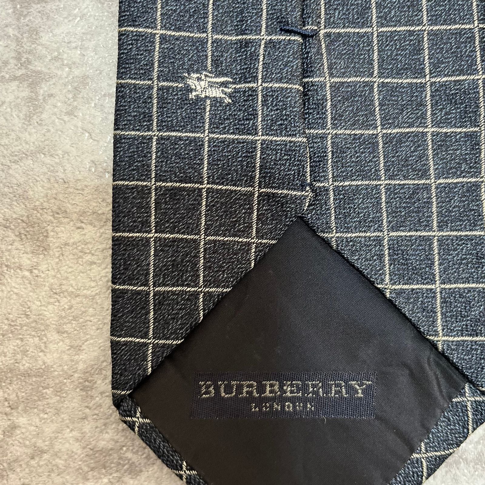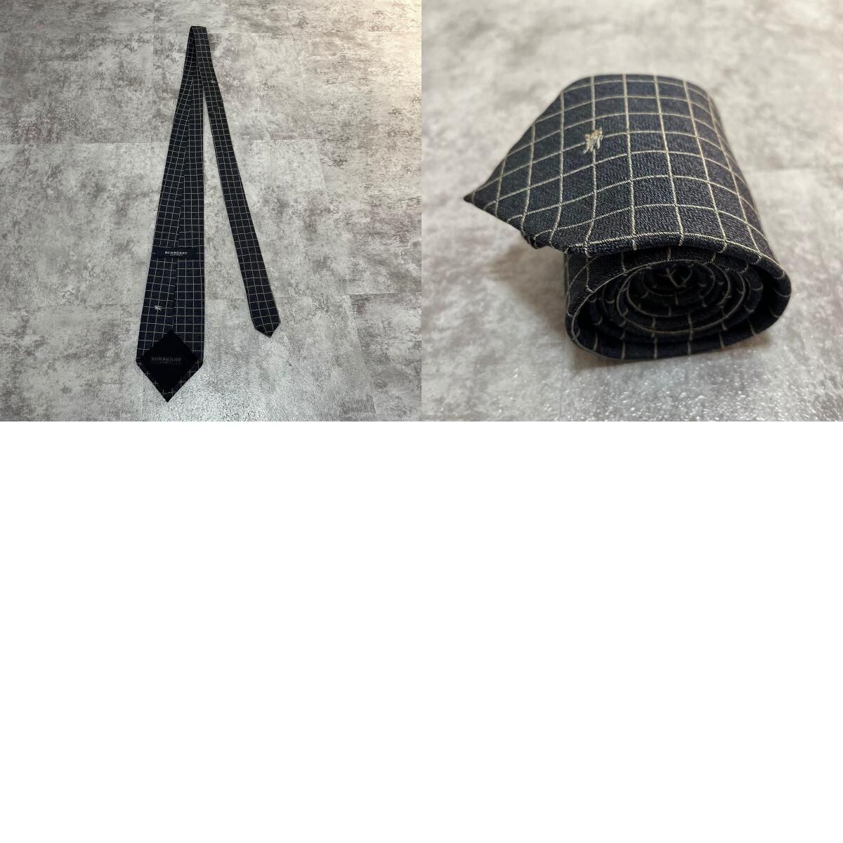 【Burberry】ホースロゴ入りチェック柄ネクタイ ネイビー 紺色 ビジネス向け シンプル バーバリー 日本製