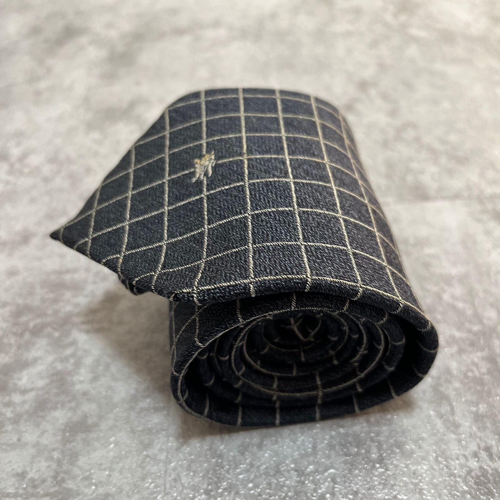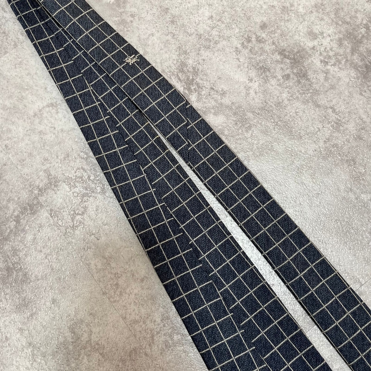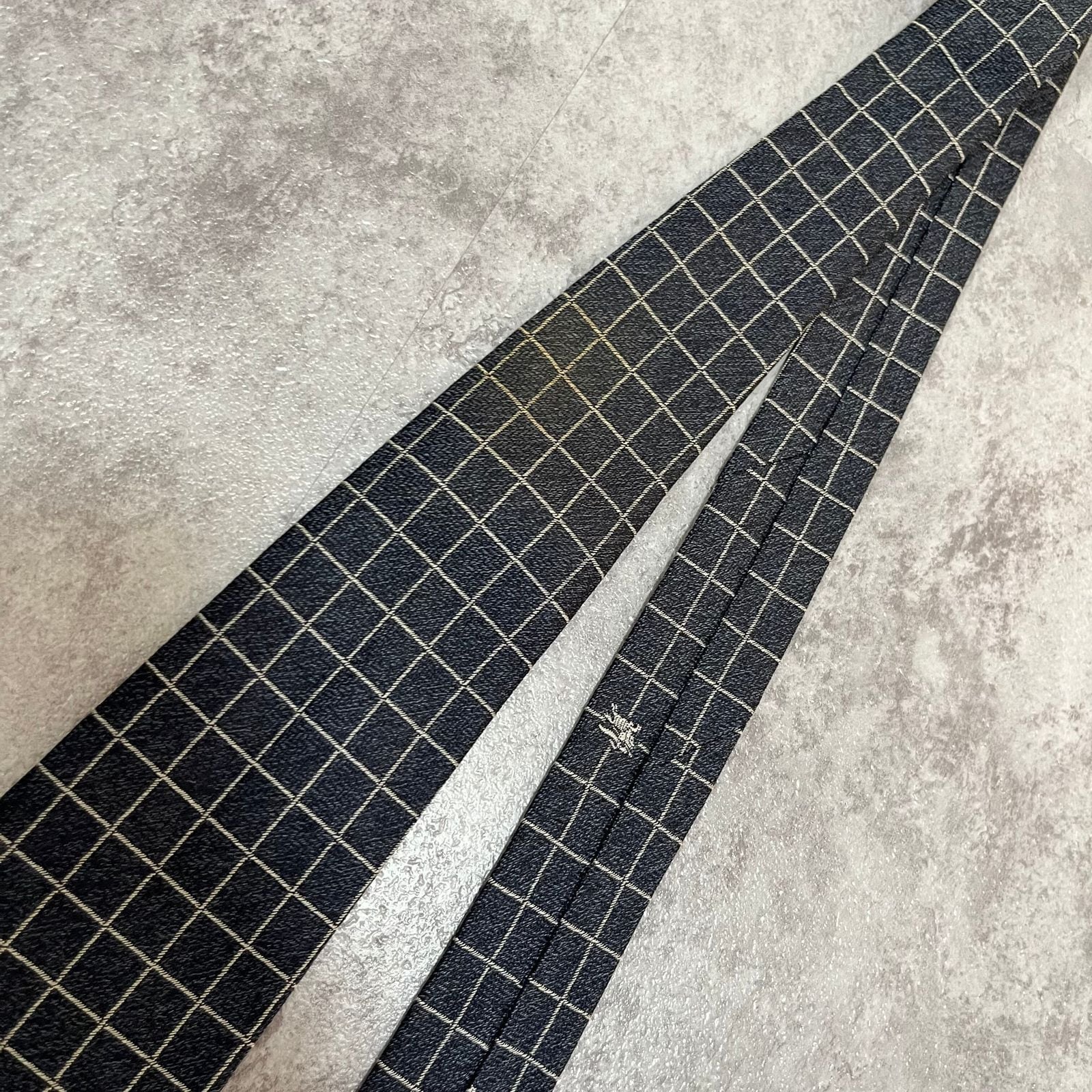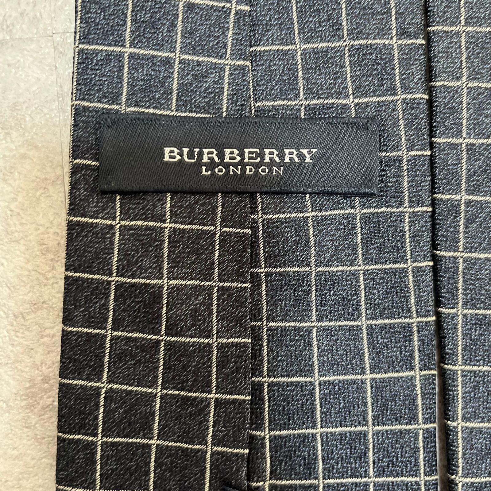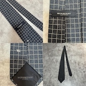 【Burberry】ホースロゴ入りチェック柄ネクタイ ネイビー 紺色 ビジネス向け シンプル バーバリー 日本製