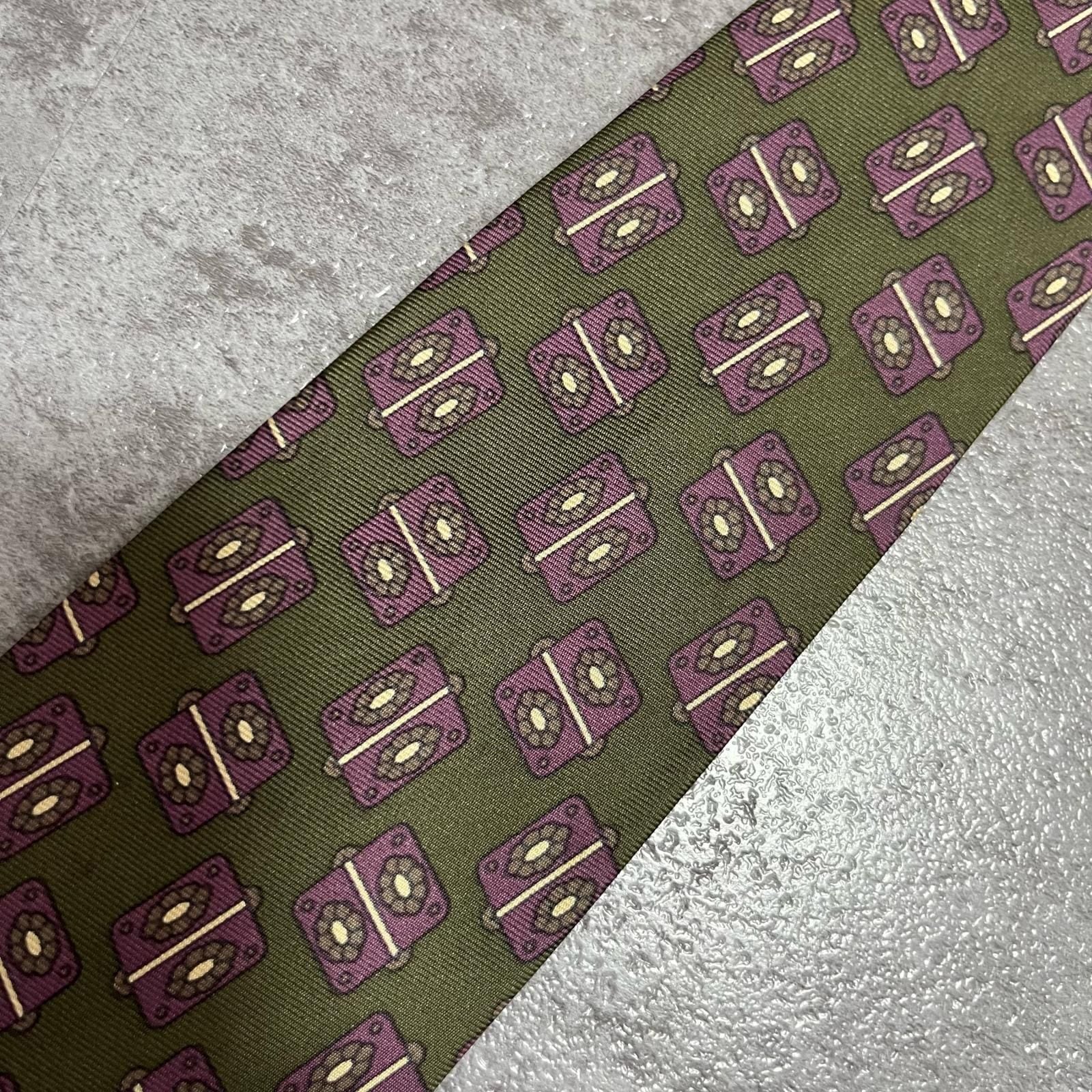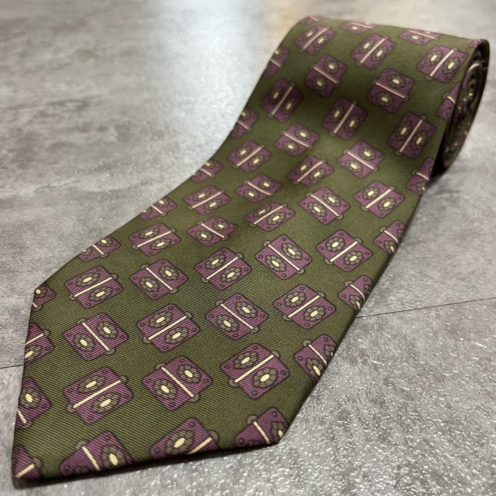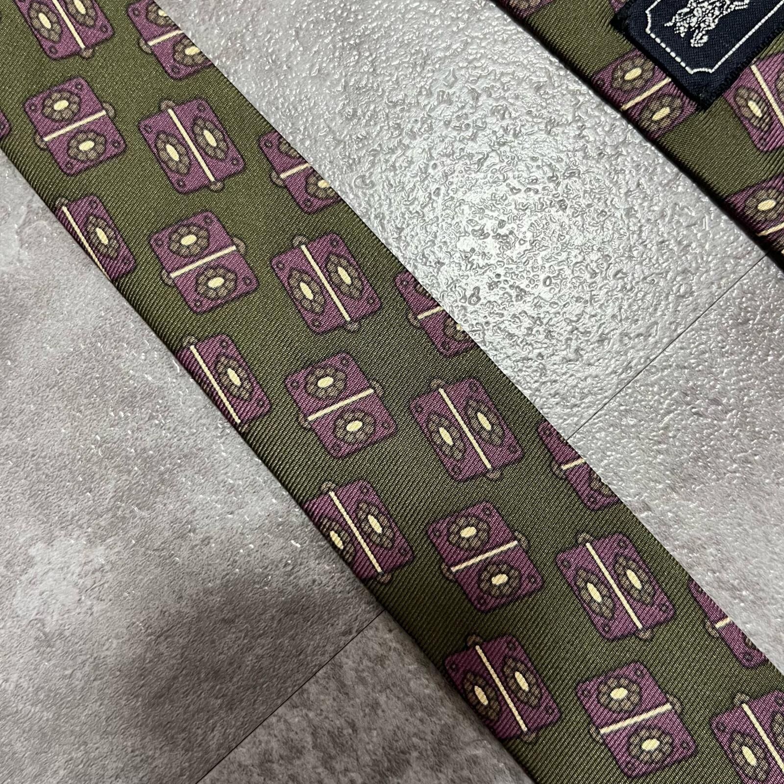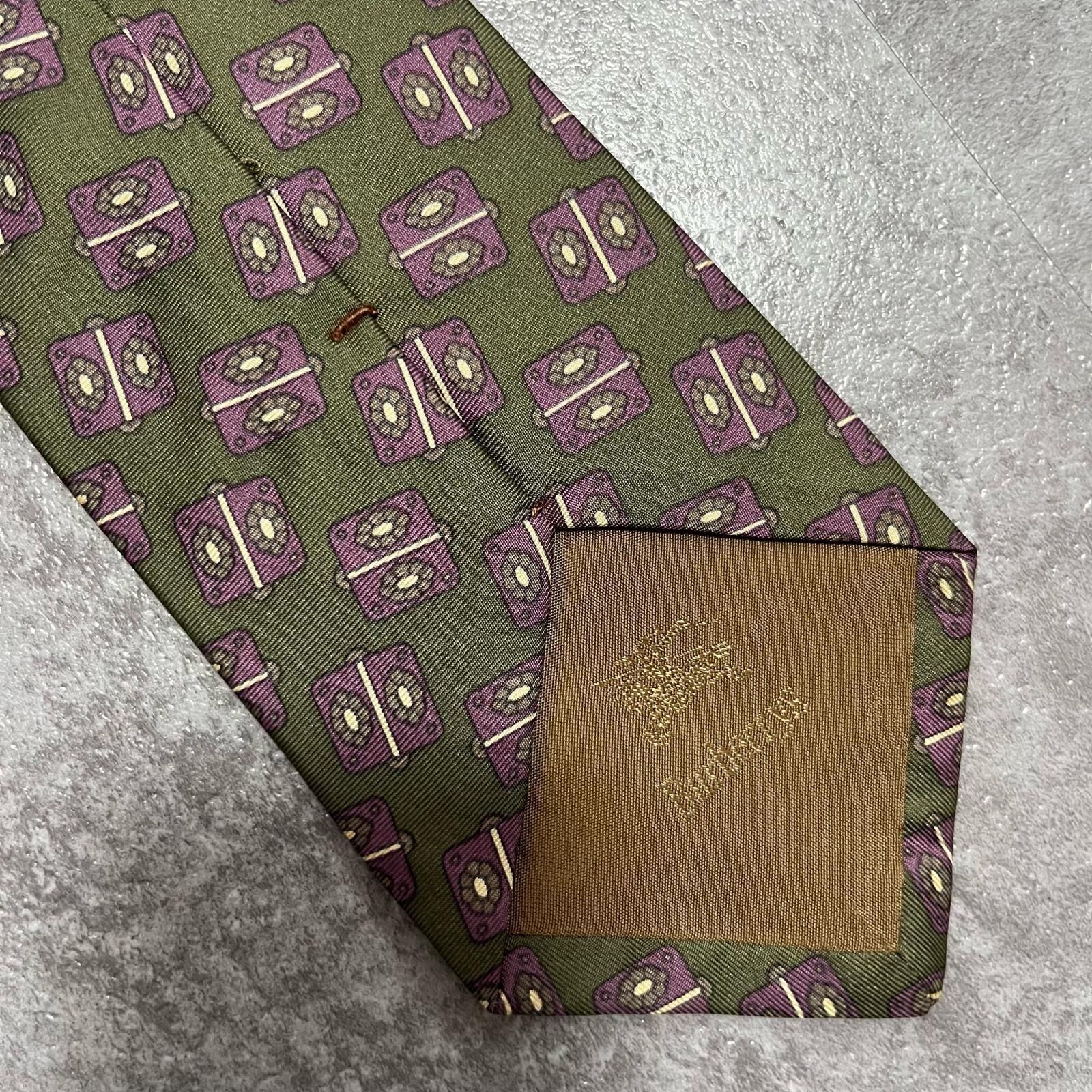 【BURBERRY】バーバリー 特殊小紋柄ネクタイ シルク100% メンズ カーキ 幾何学 四角 スクエア チェック柄 ヴィンテージ ビジネス向け