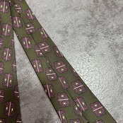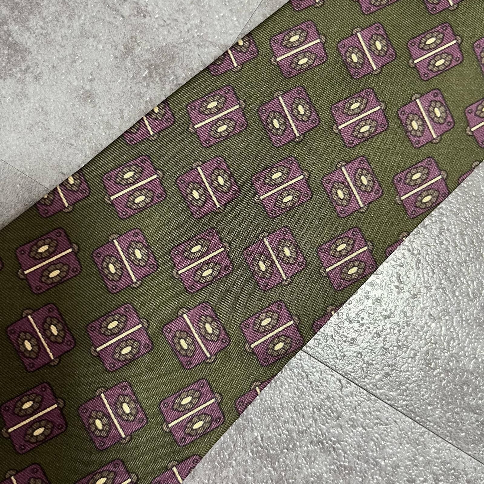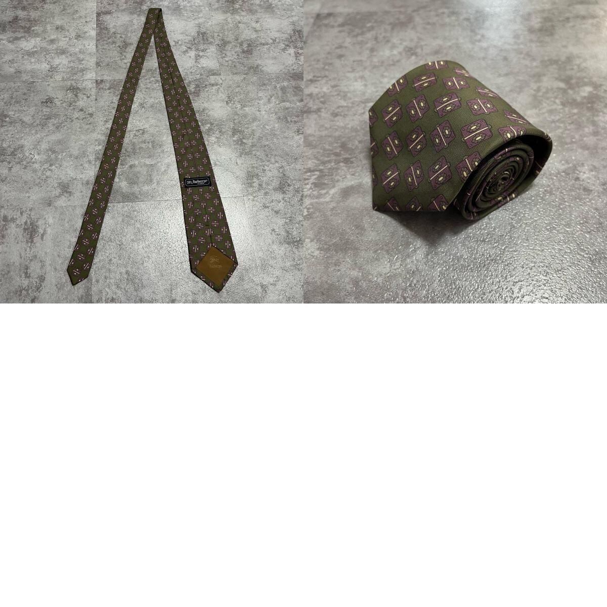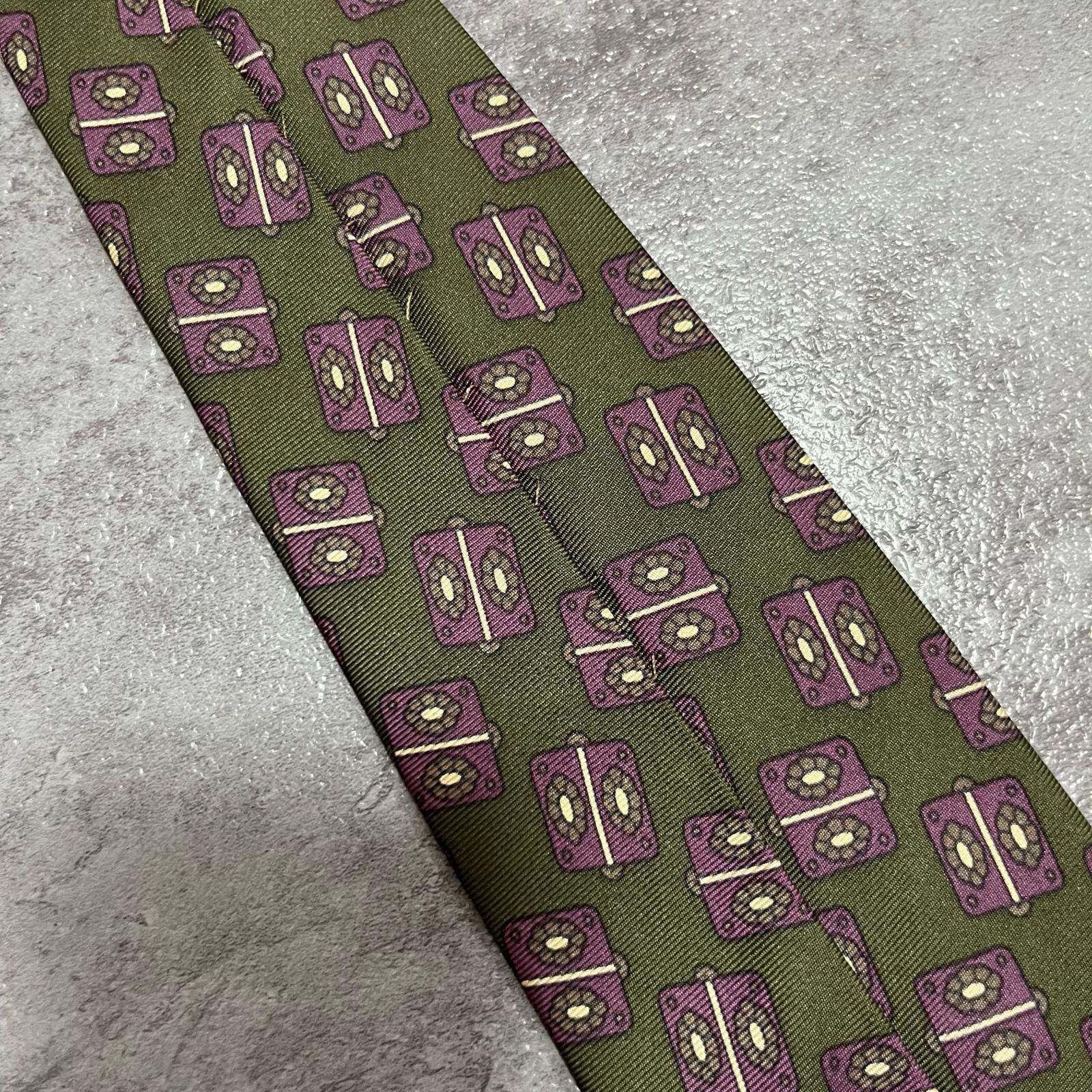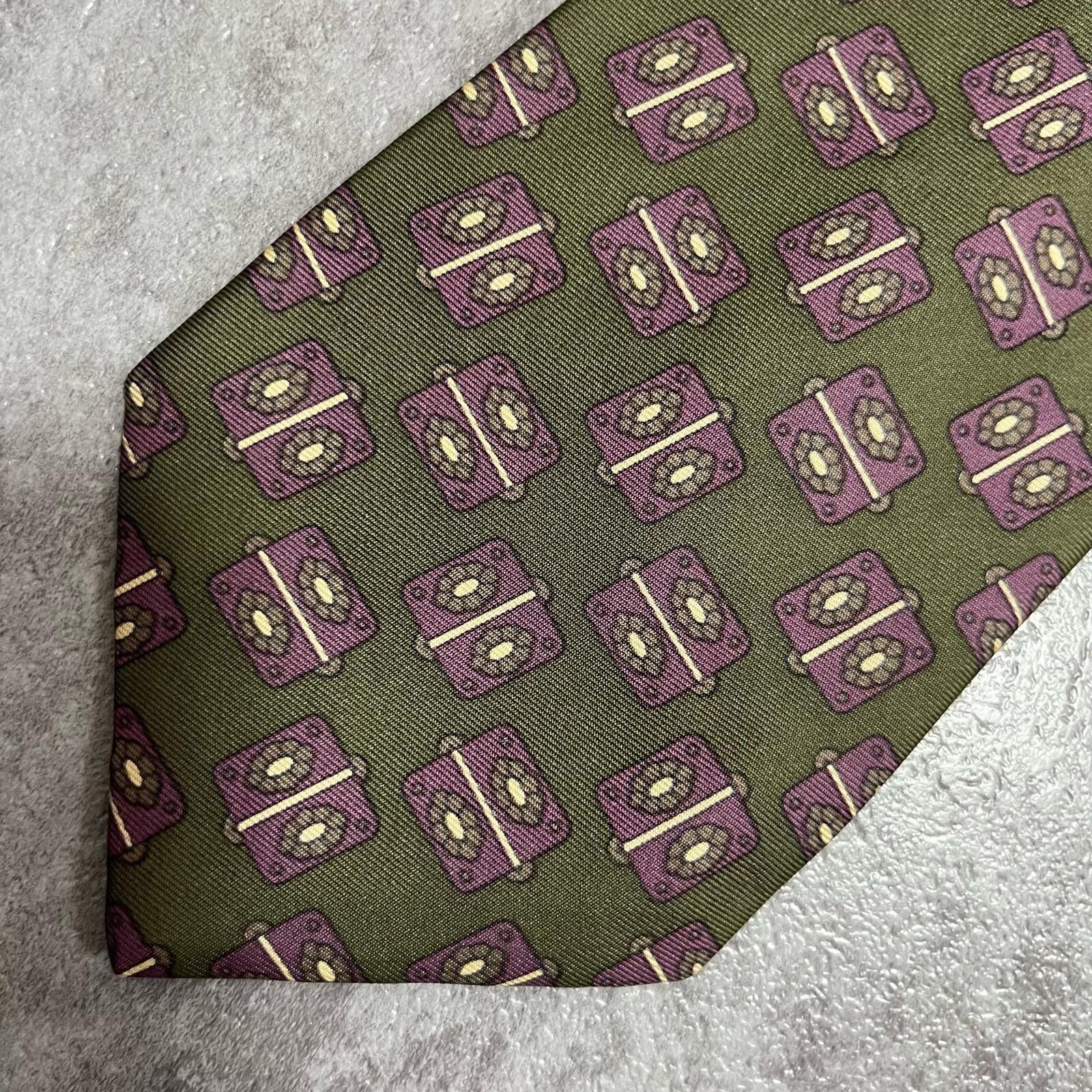【BURBERRY】バーバリー 特殊小紋柄ネクタイ シルク100% メンズ カーキ 幾何学 四角 スクエア チェック柄 ヴィンテージ ビジネス向け