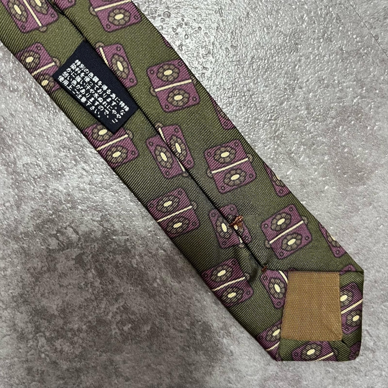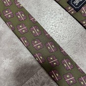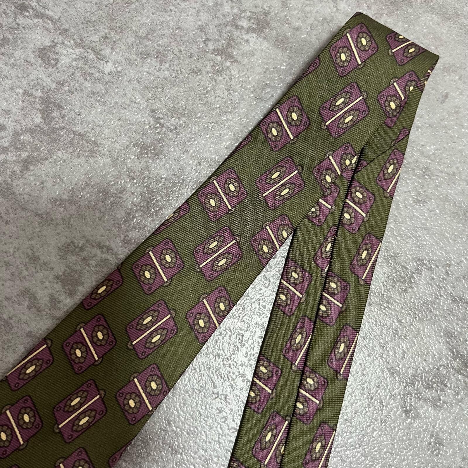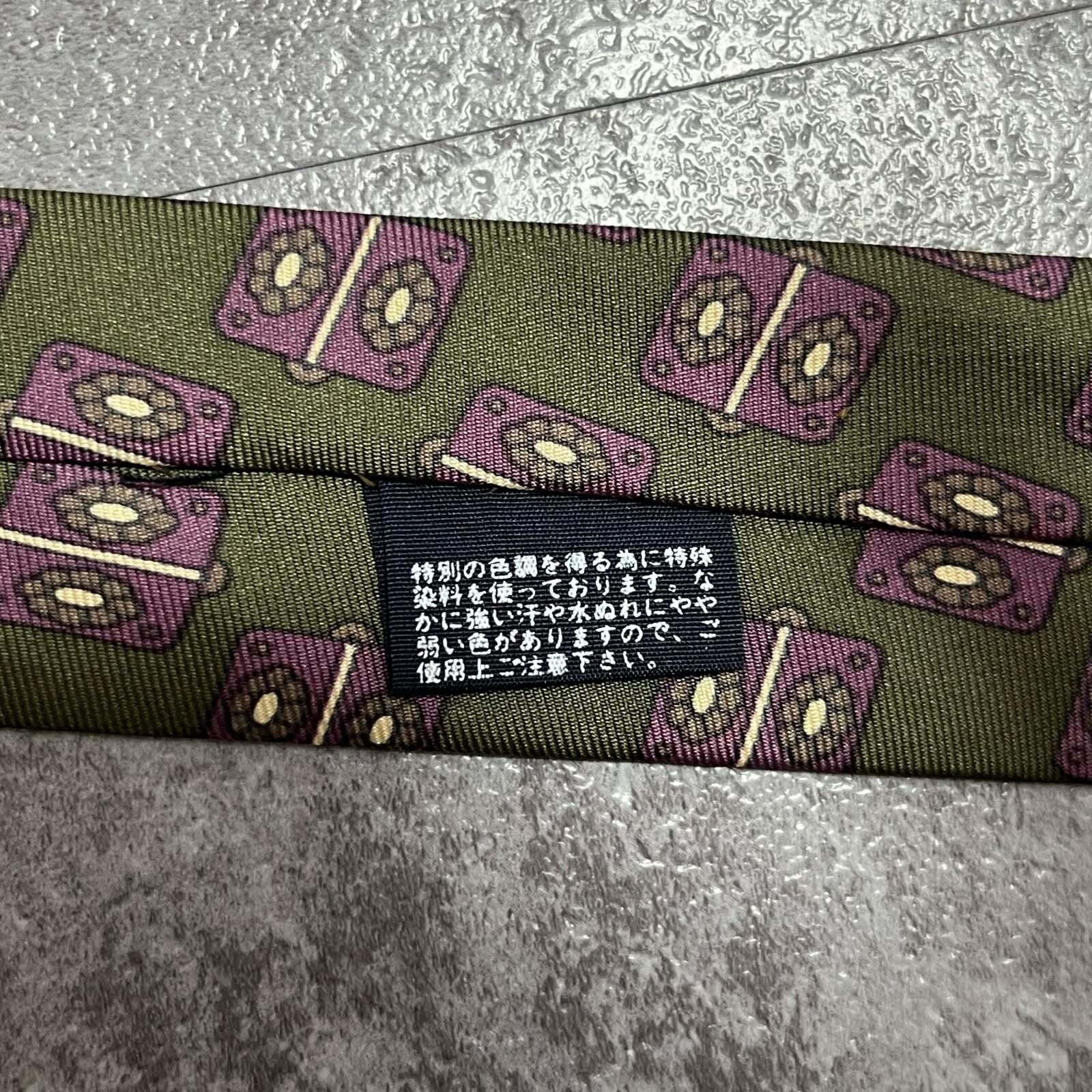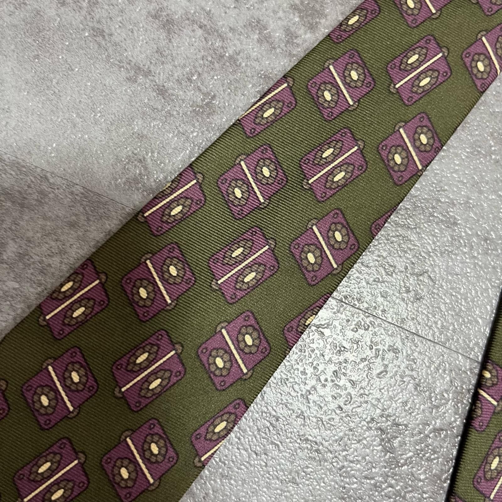 【BURBERRY】バーバリー 特殊小紋柄ネクタイ シルク100% メンズ カーキ 幾何学 四角 スクエア チェック柄 ヴィンテージ ビジネス向け