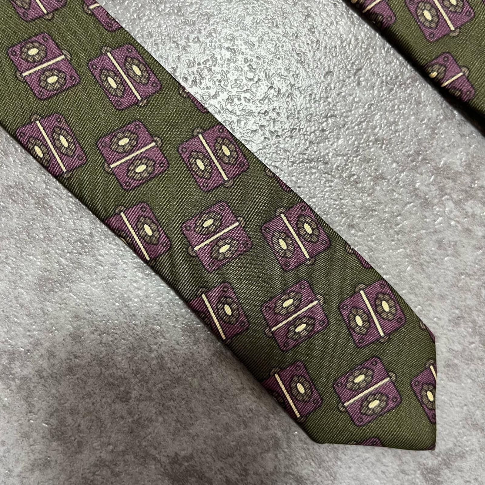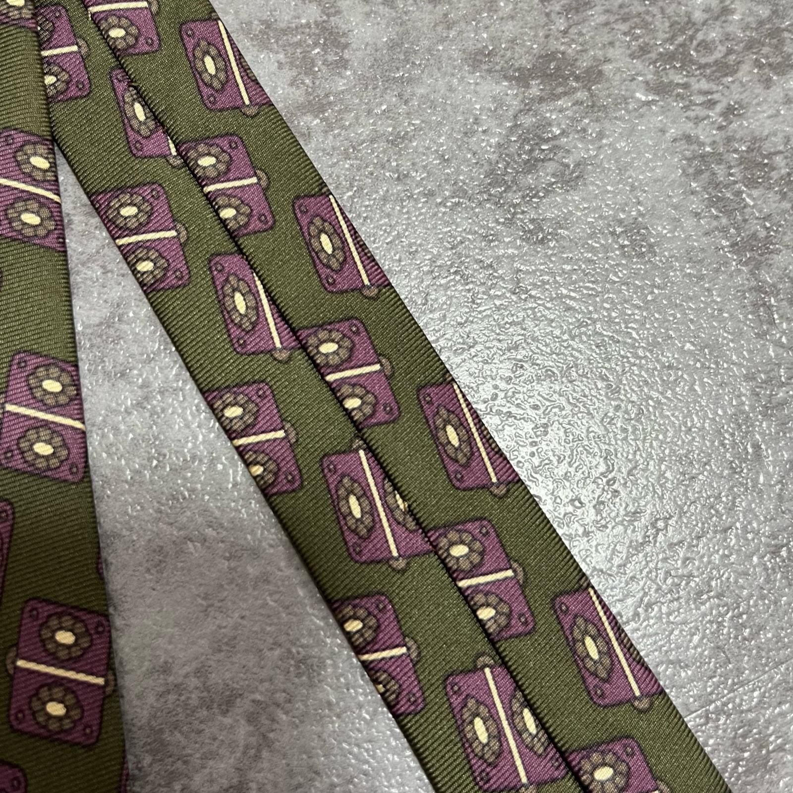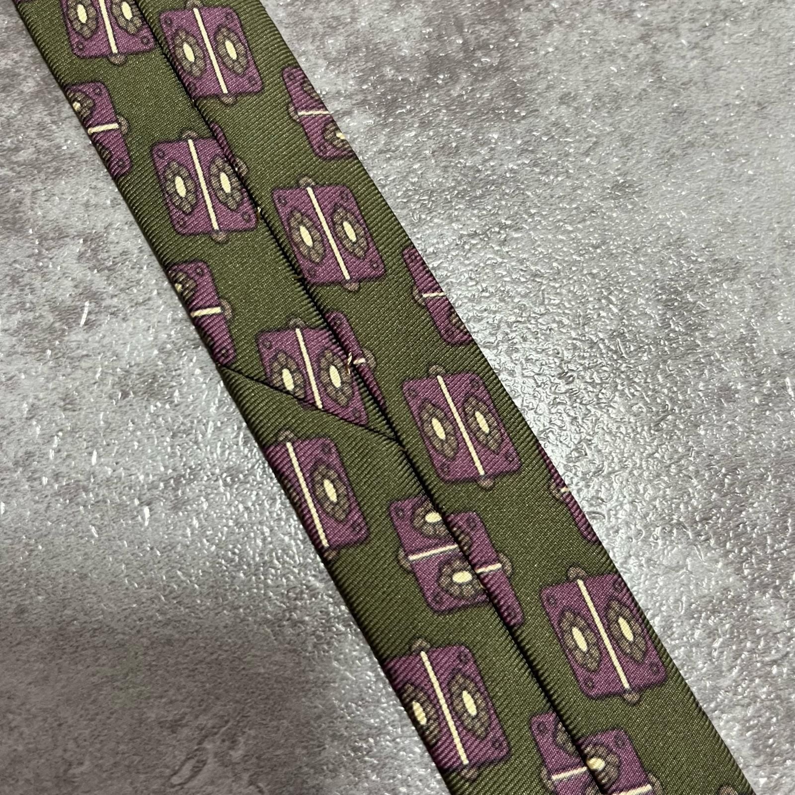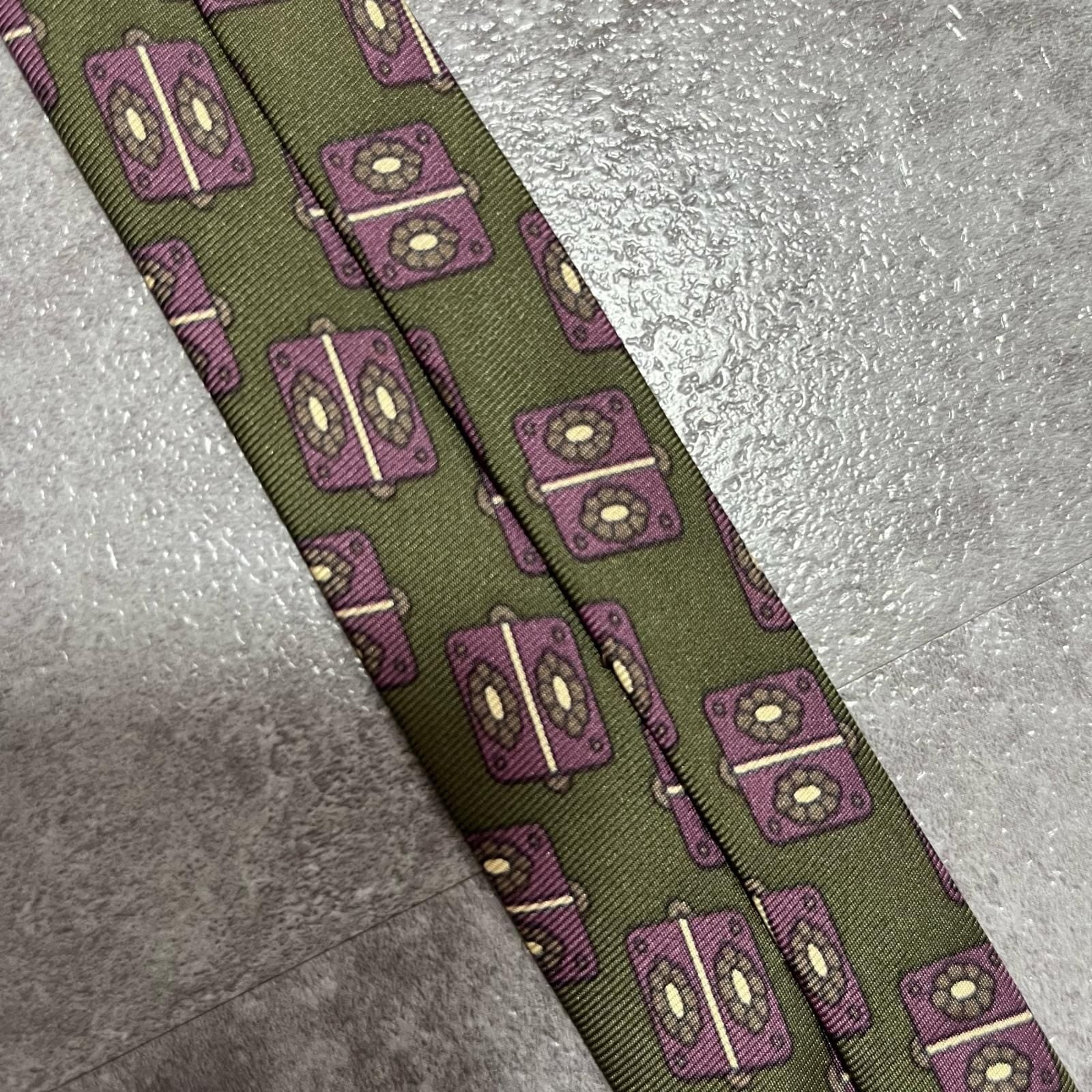 【BURBERRY】バーバリー 特殊小紋柄ネクタイ シルク100% メンズ カーキ 幾何学 四角 スクエア チェック柄 ヴィンテージ ビジネス向け