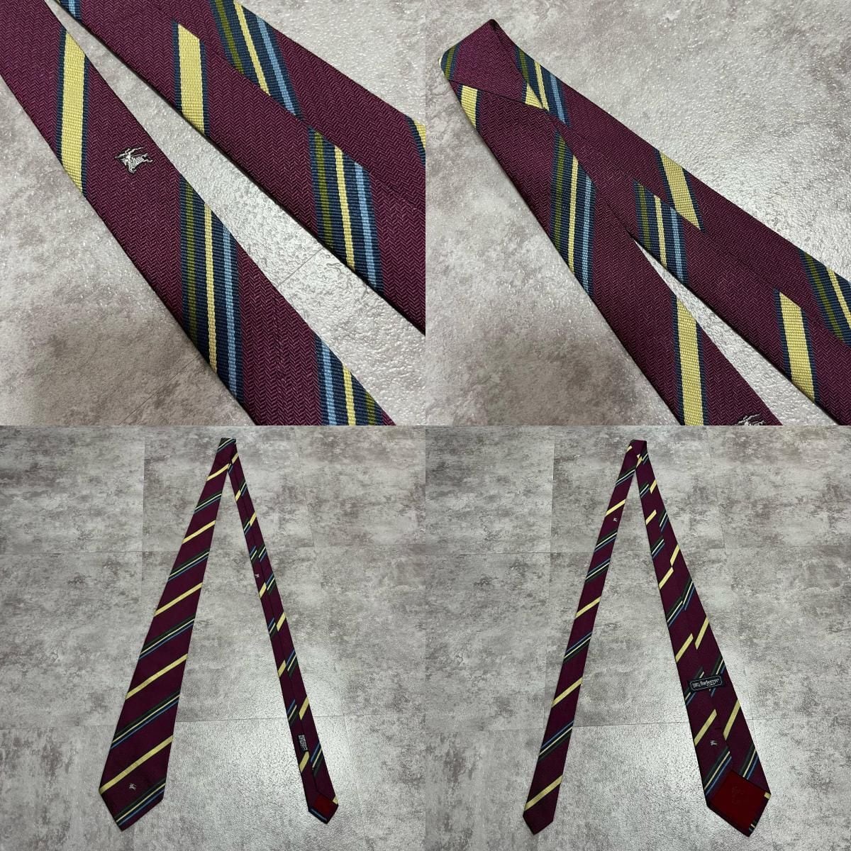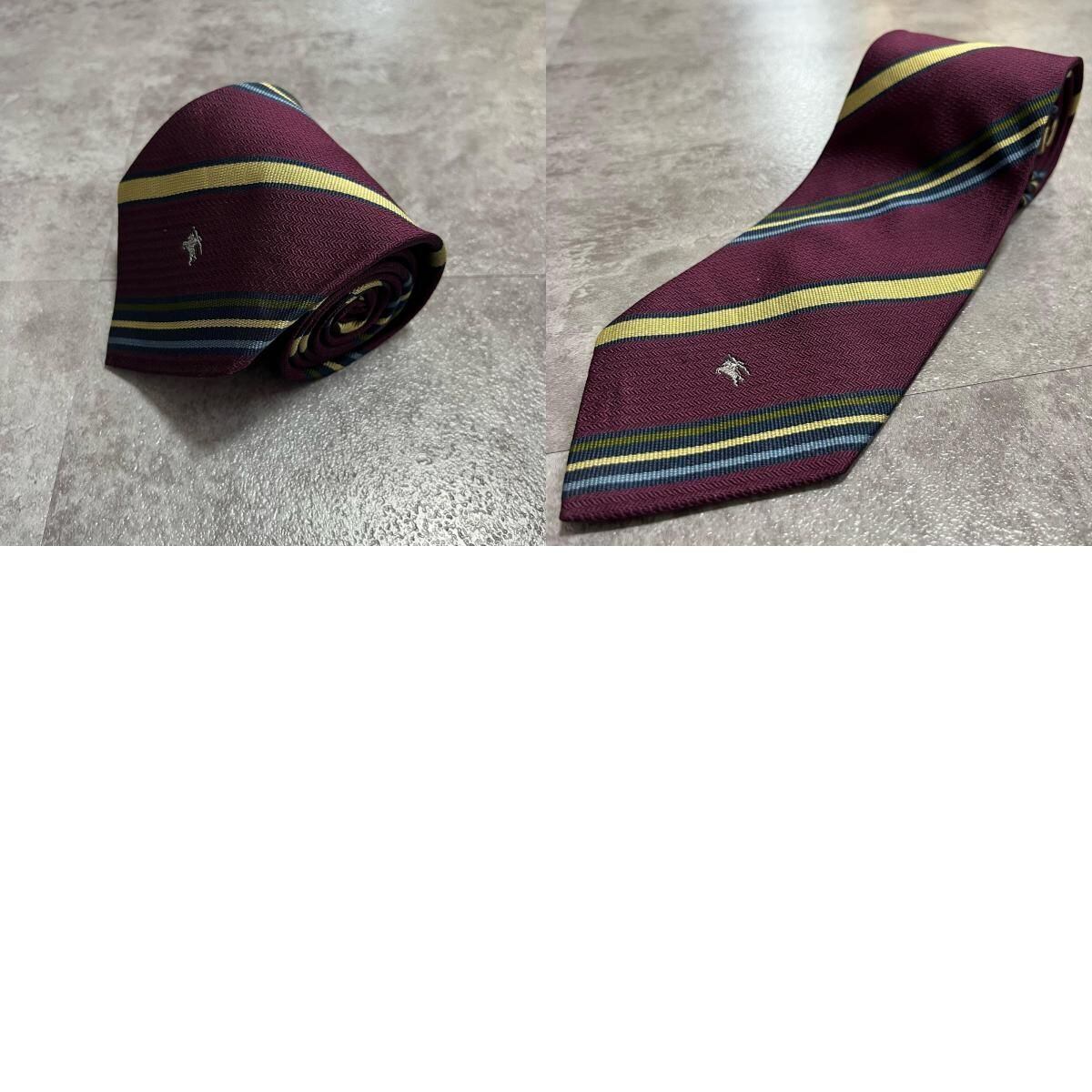 【BURBERRY】バーバリー ホースロゴ入りレジメンタルストライプネクタイ シルク100% メンズ バイカラー ゴールド 金 ビジネス向け
