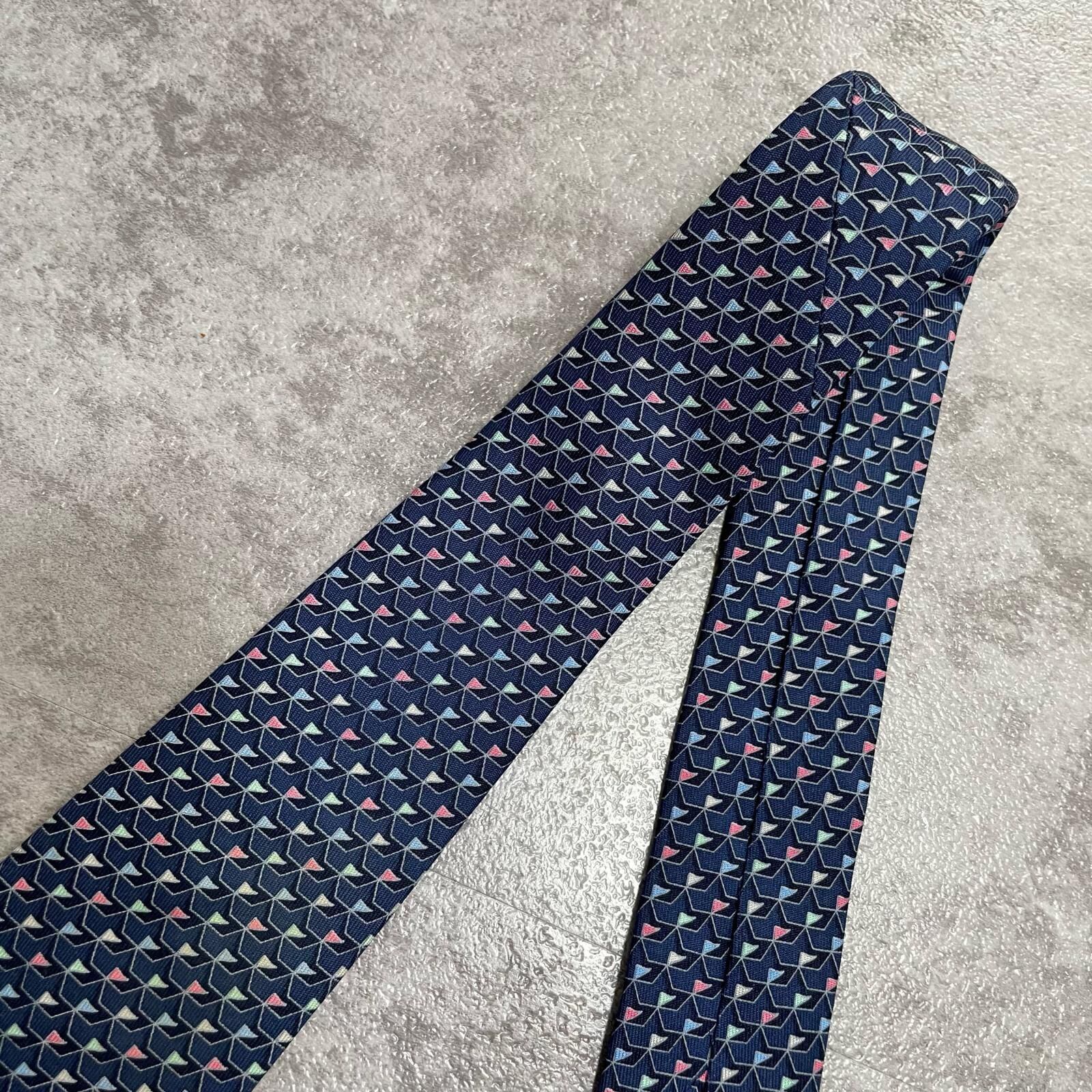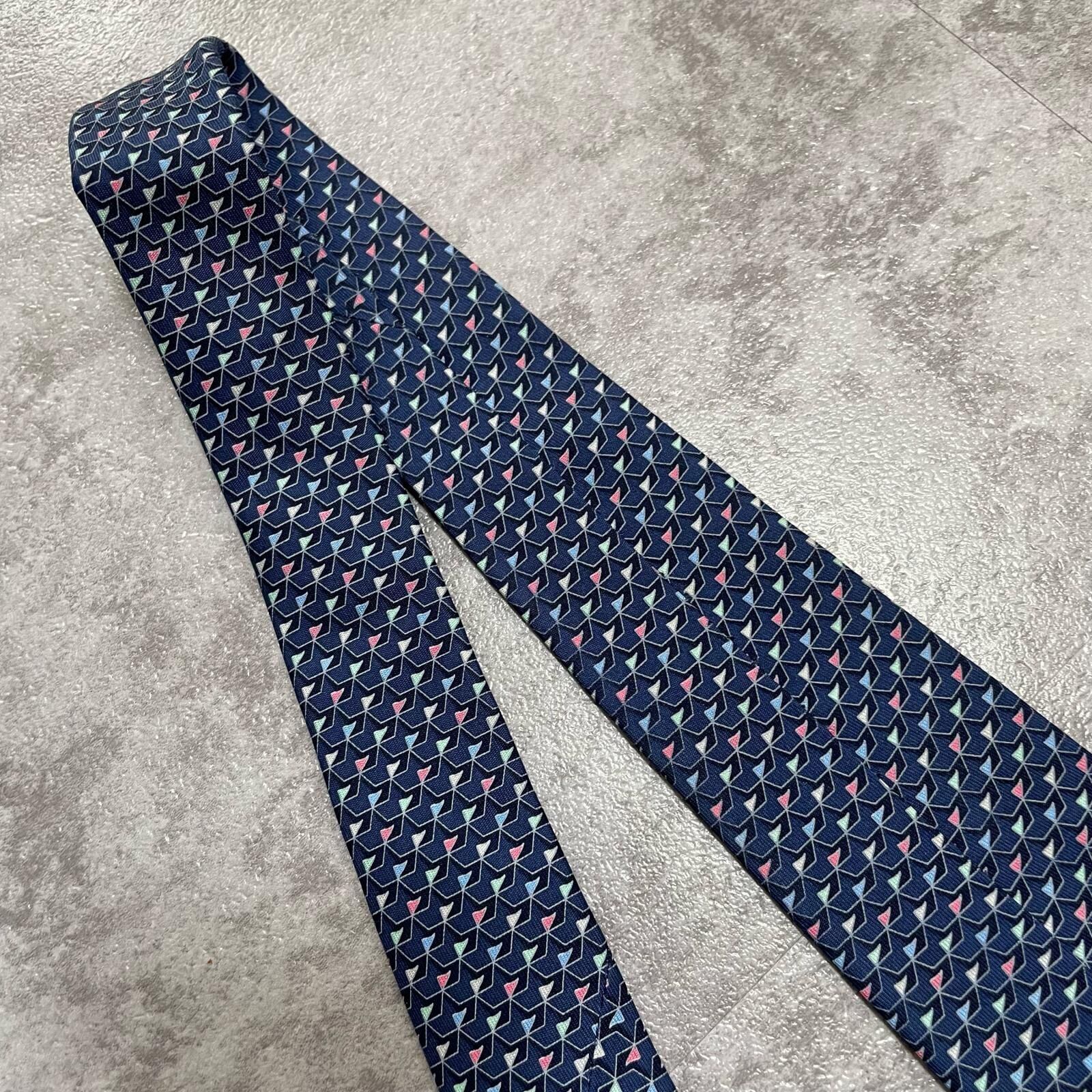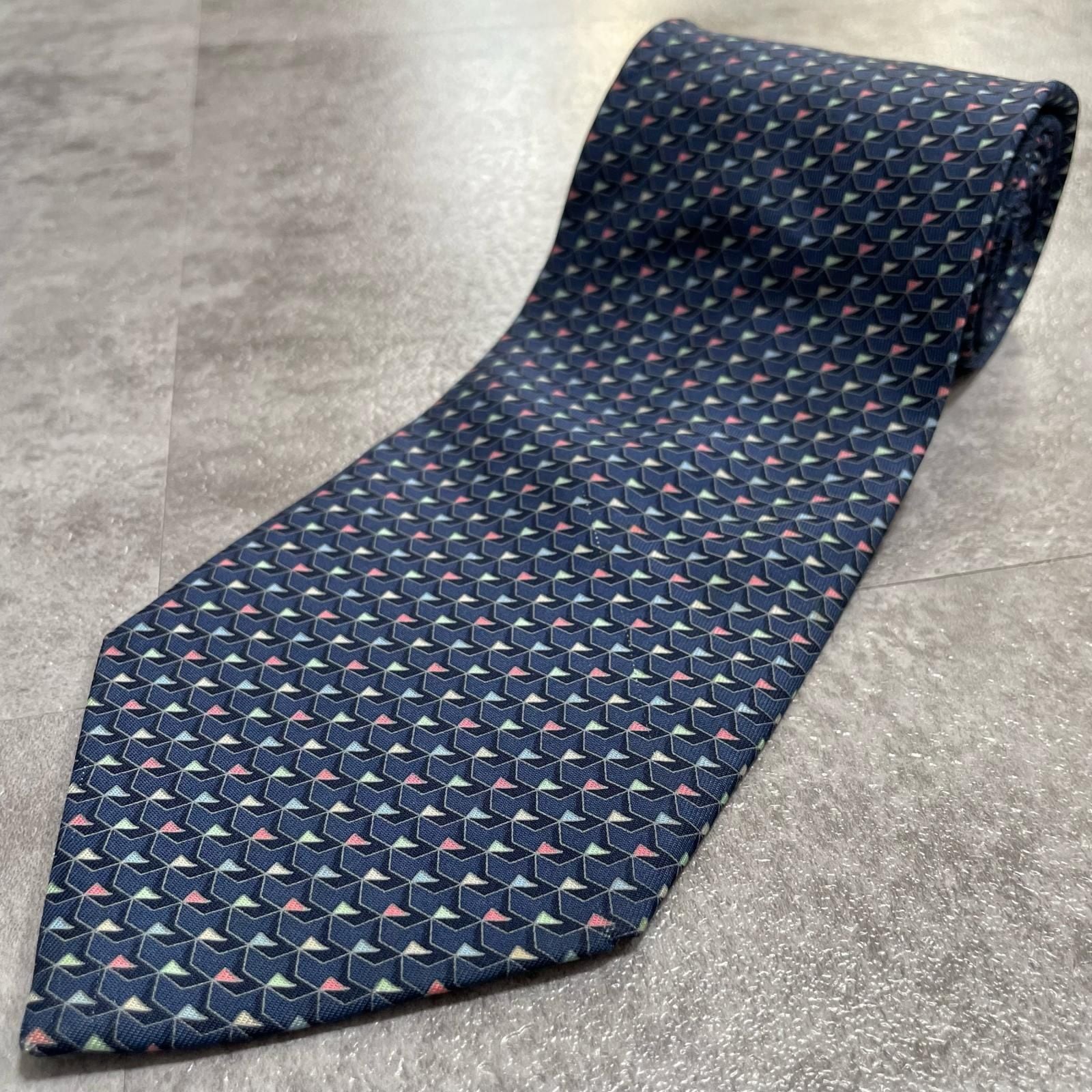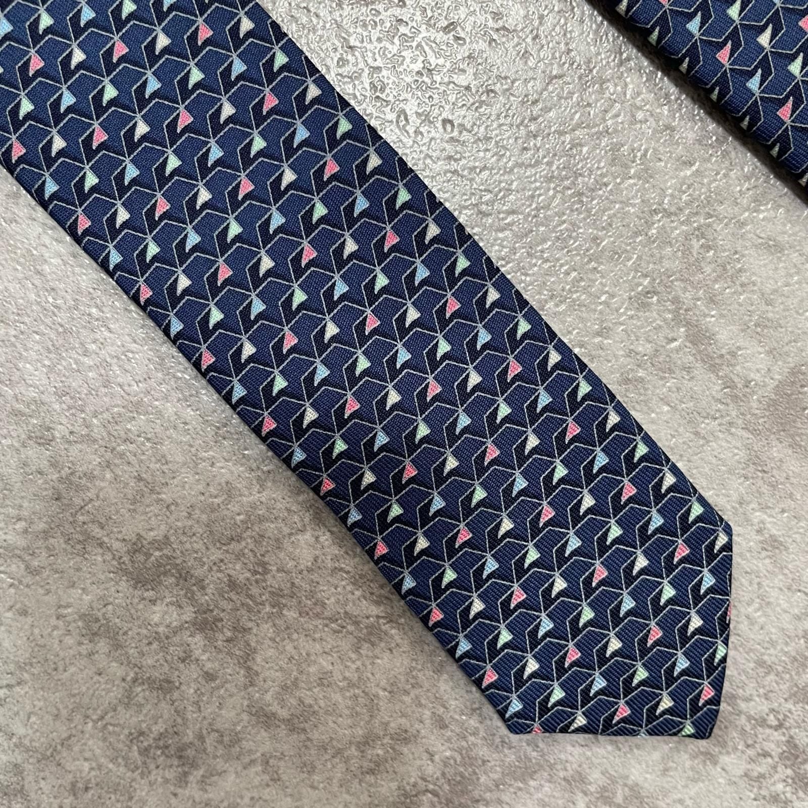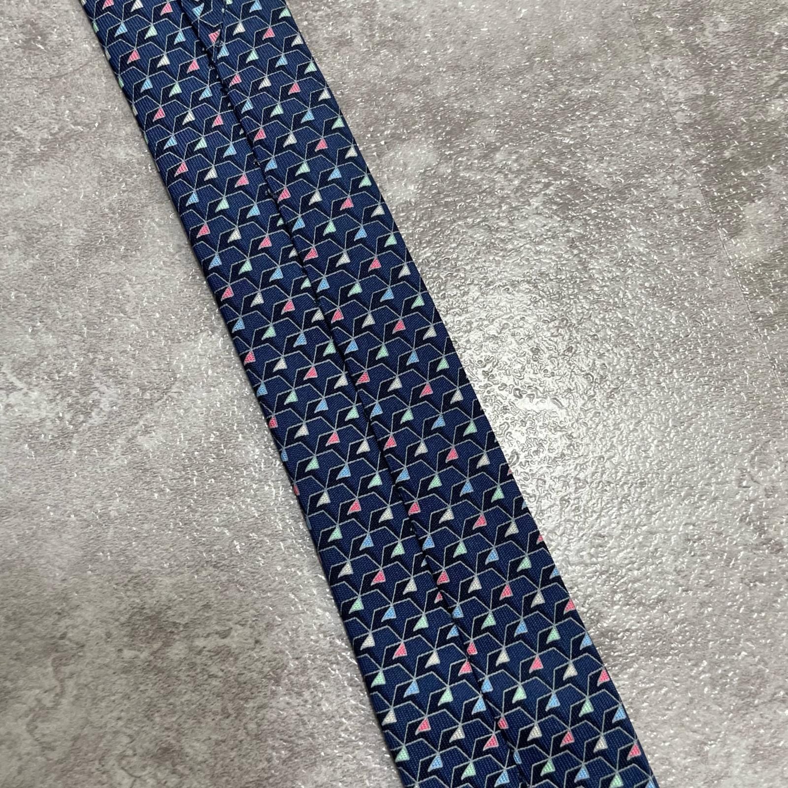 【Salvatore Ferragamo】サルヴァトーレフェラガモ 幾何学柄ネクタイ シルク100% メンズ ネイビー 紺色 バイカラー ピンク 桃色 イタリア製 ビジネス向け