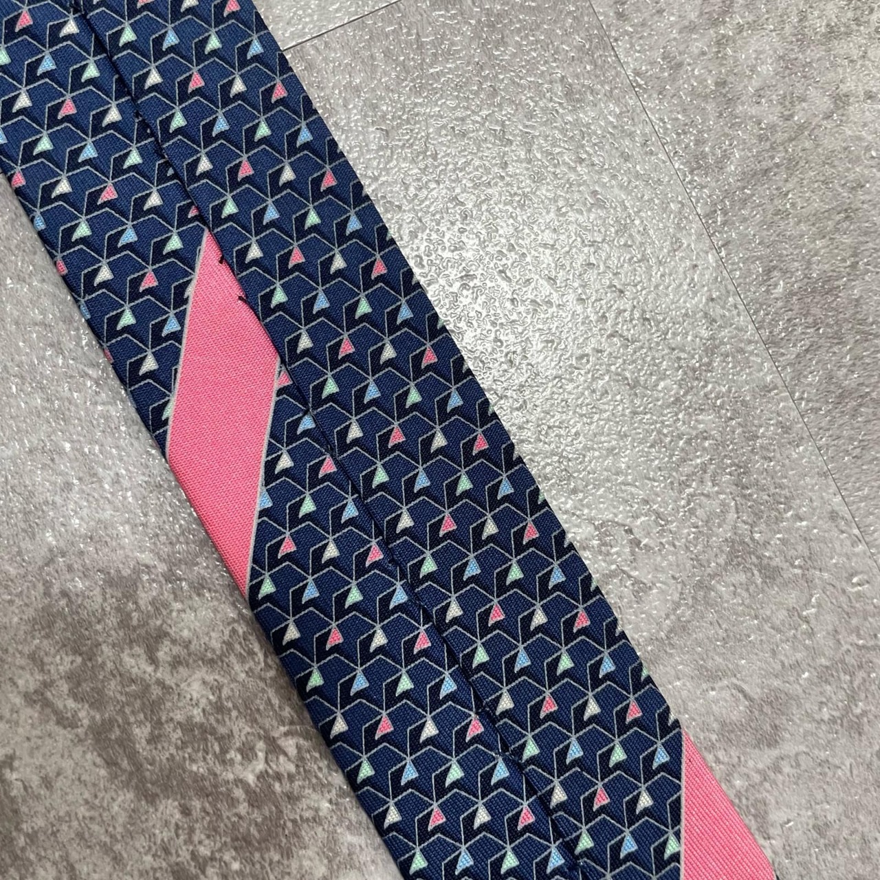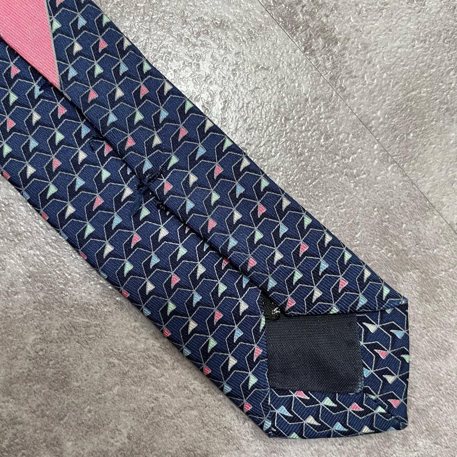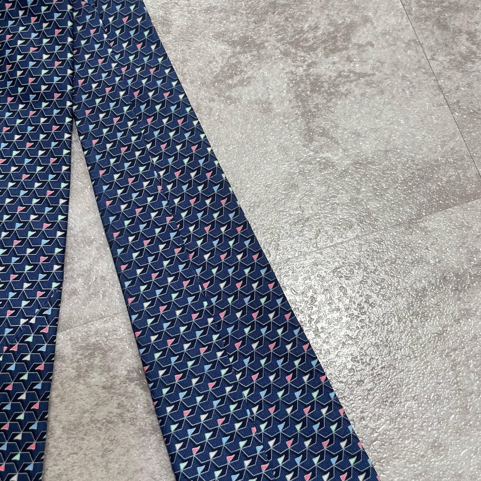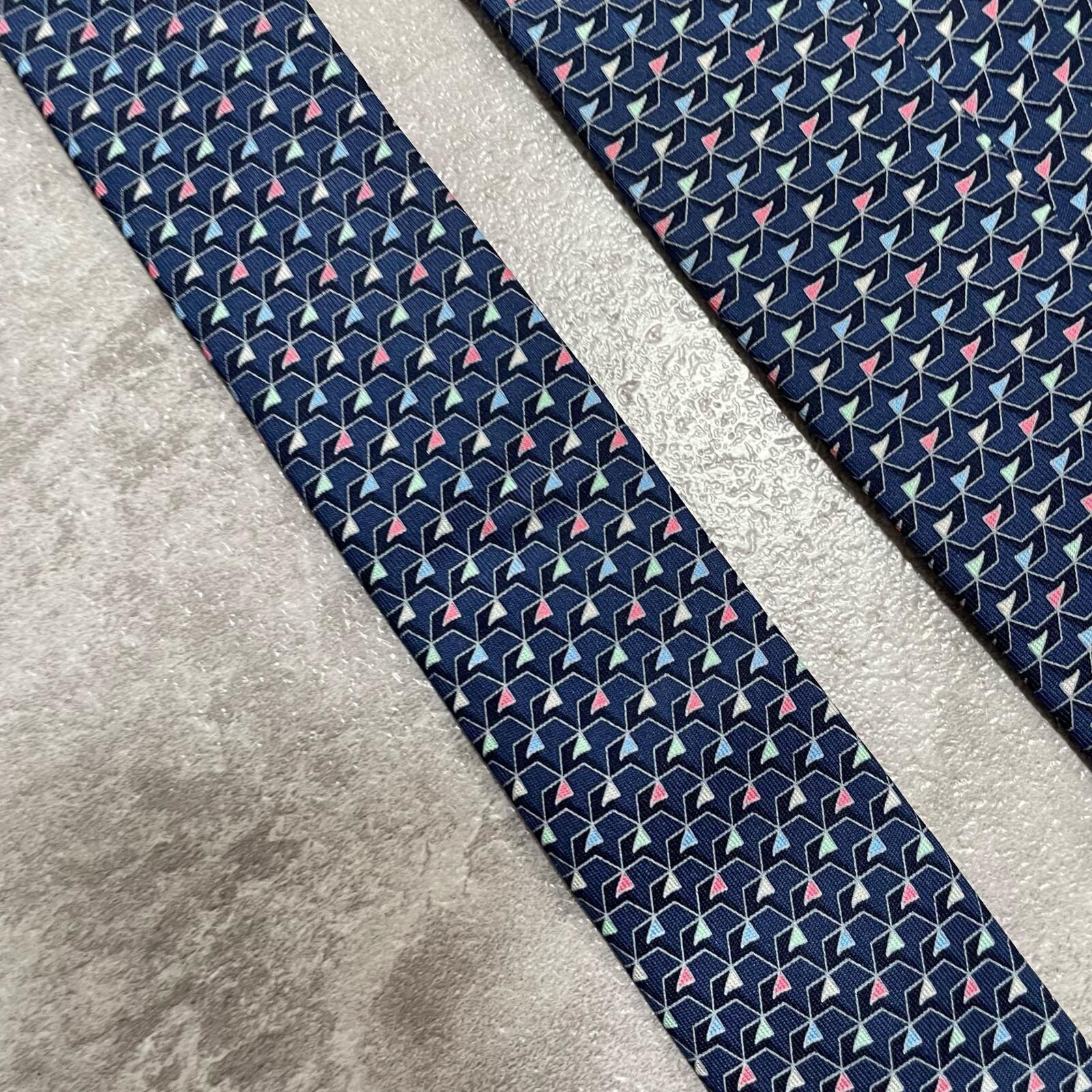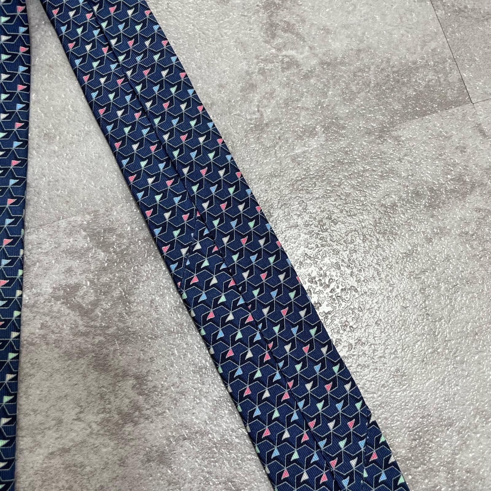 【Salvatore Ferragamo】サルヴァトーレフェラガモ 幾何学柄ネクタイ シルク100% メンズ ネイビー 紺色 バイカラー ピンク 桃色 イタリア製 ビジネス向け