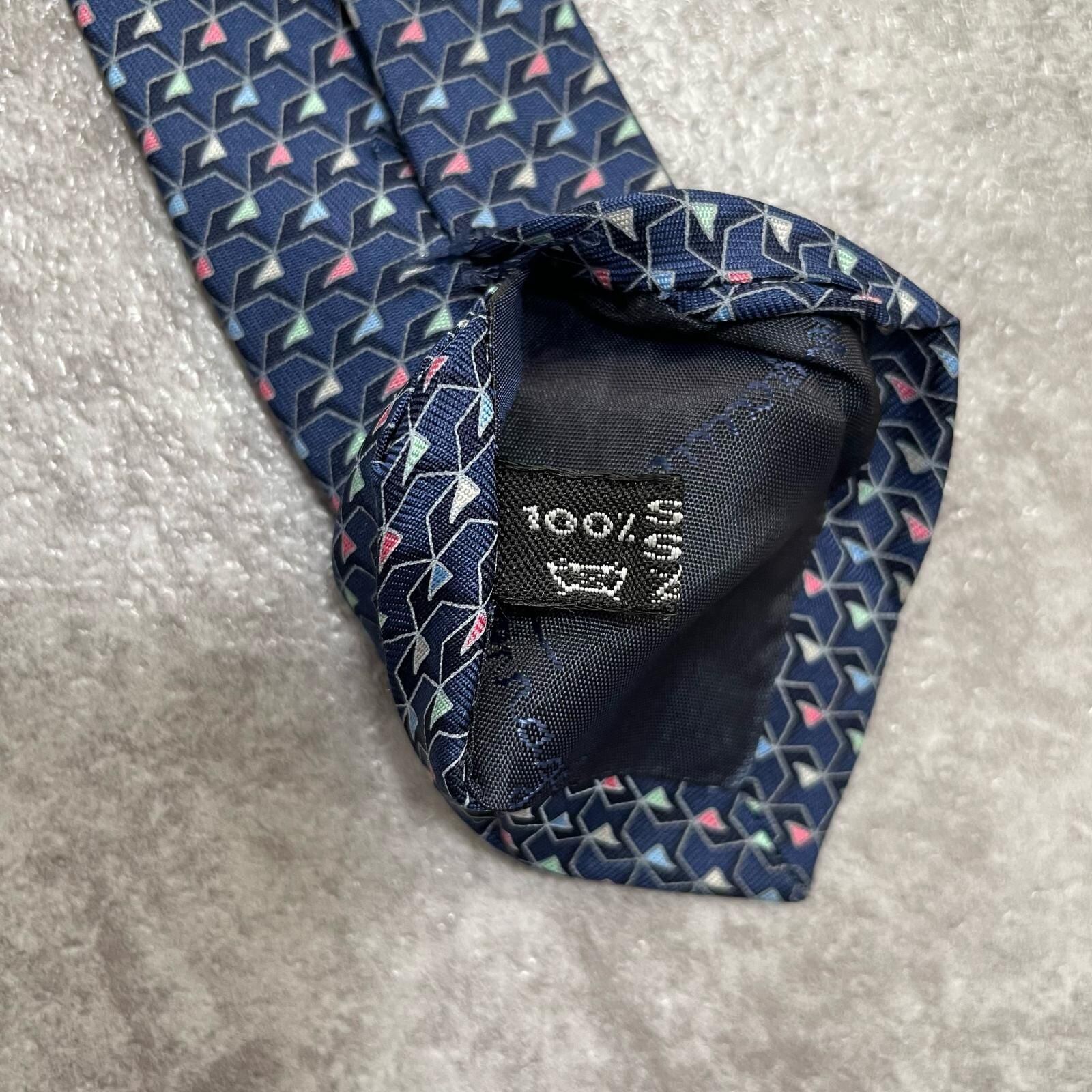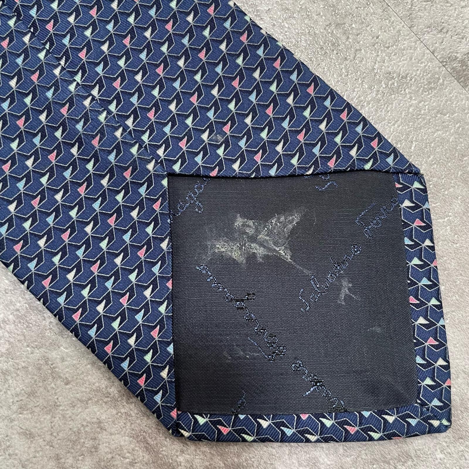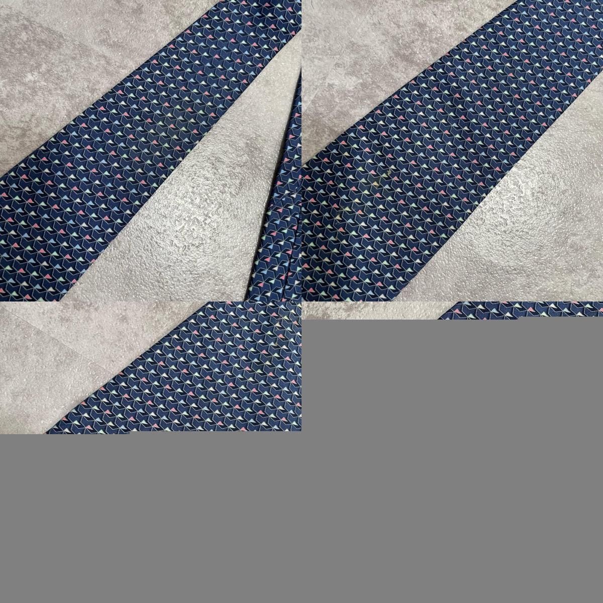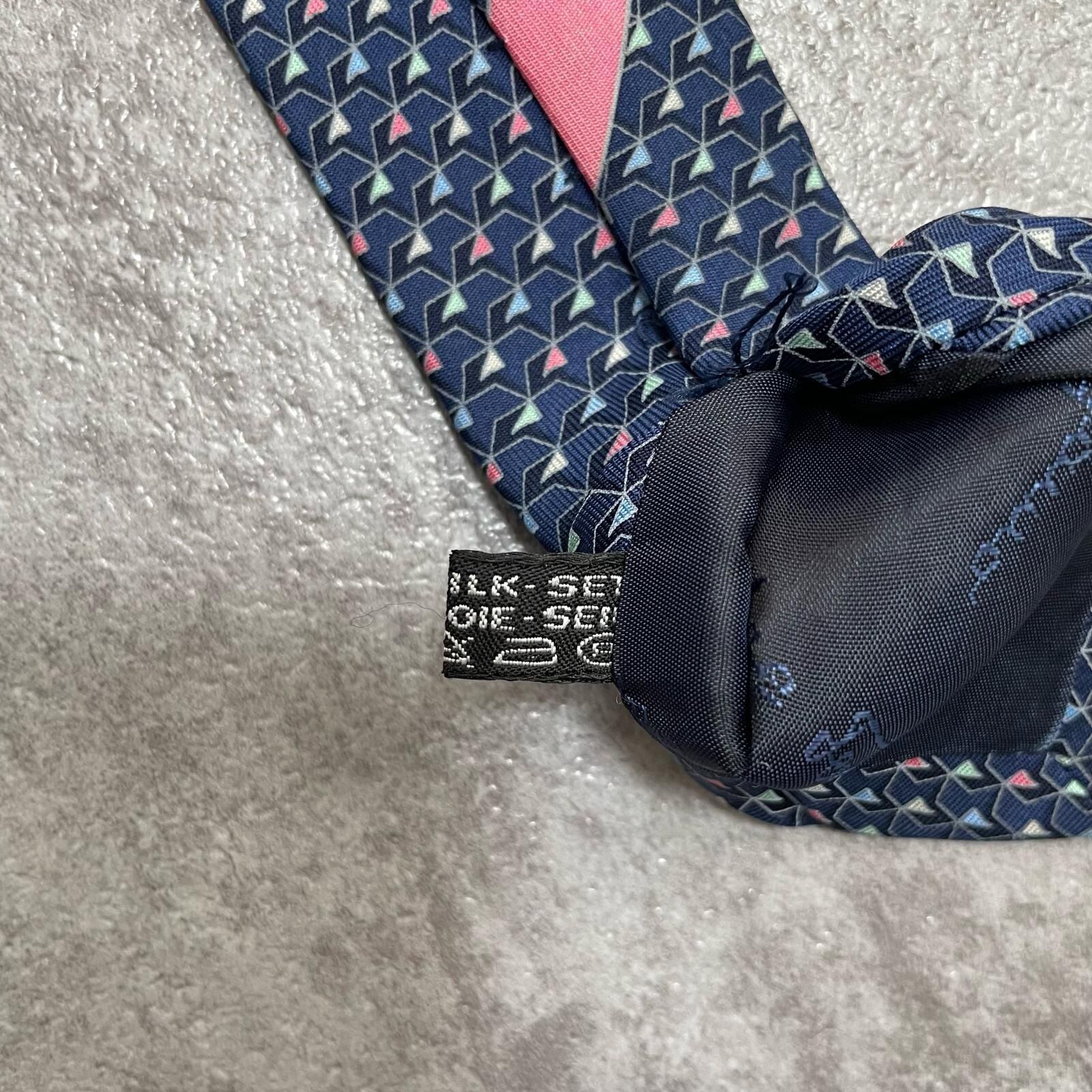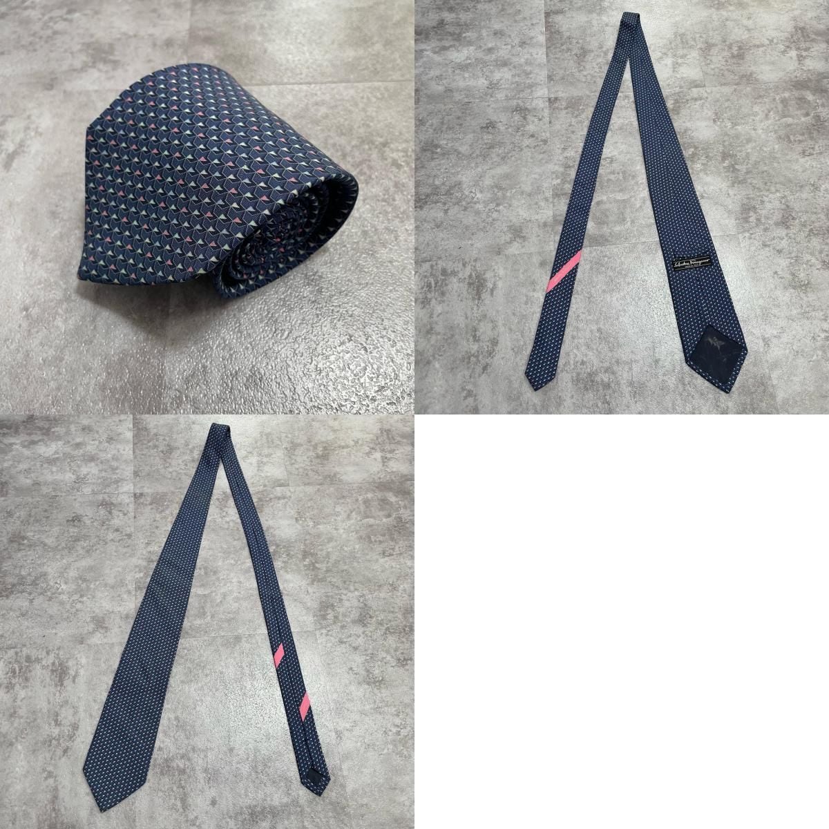 【Salvatore Ferragamo】サルヴァトーレフェラガモ 幾何学柄ネクタイ シルク100% メンズ ネイビー 紺色 バイカラー ピンク 桃色 イタリア製 ビジネス向け