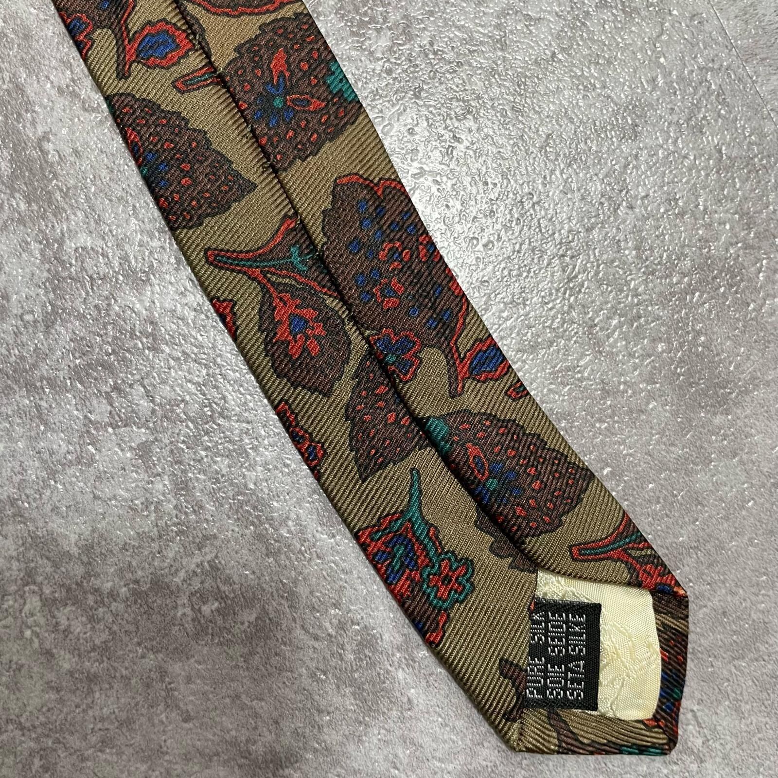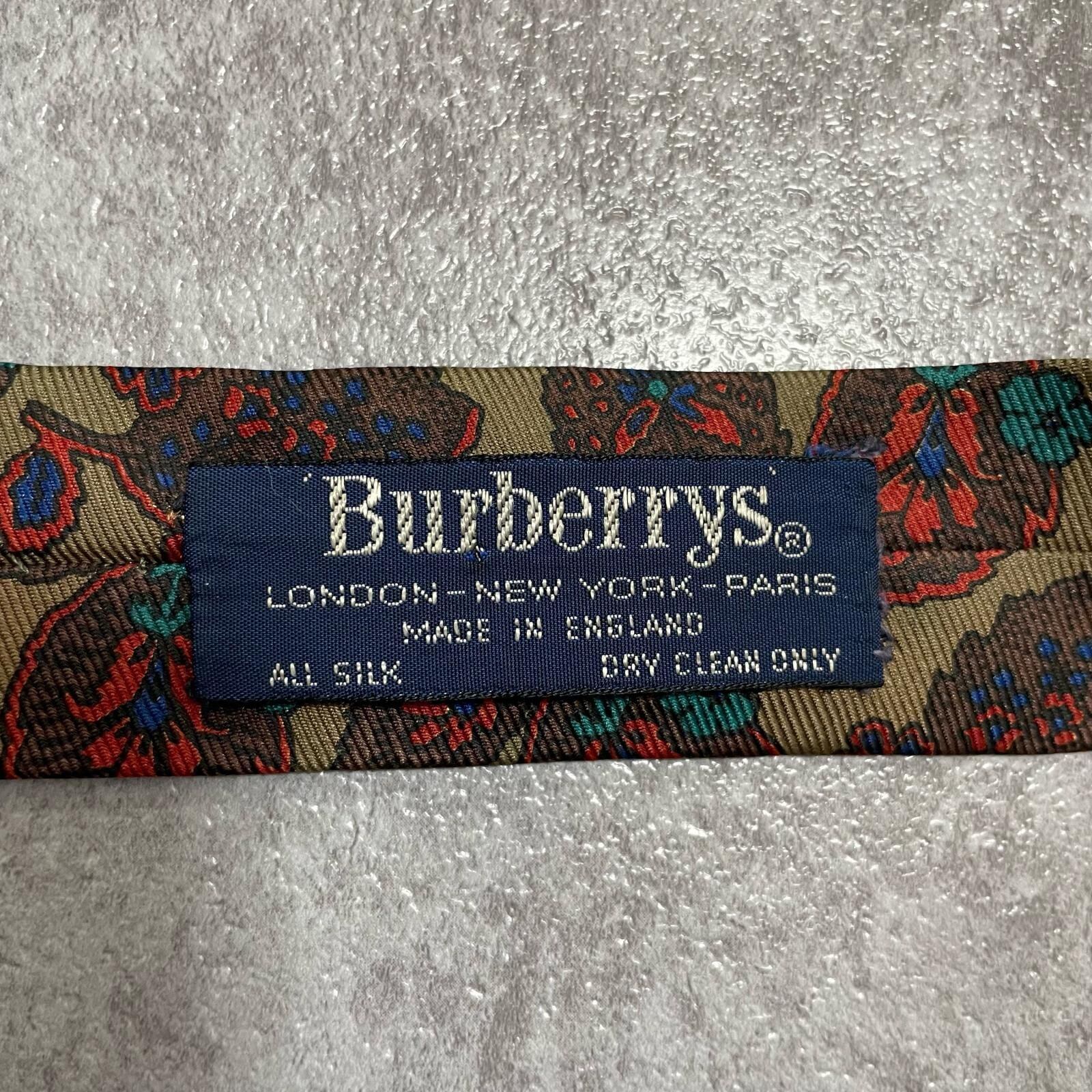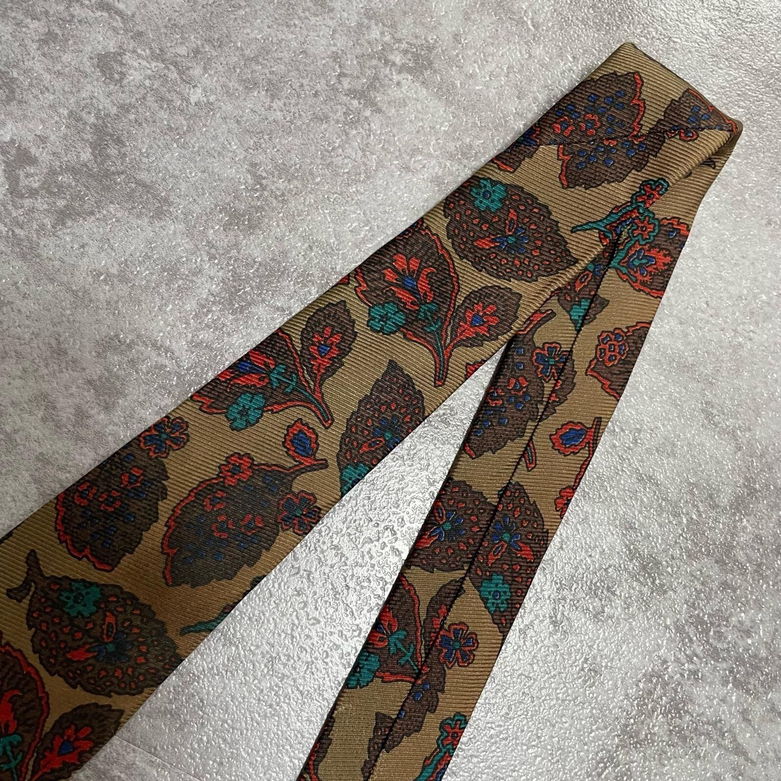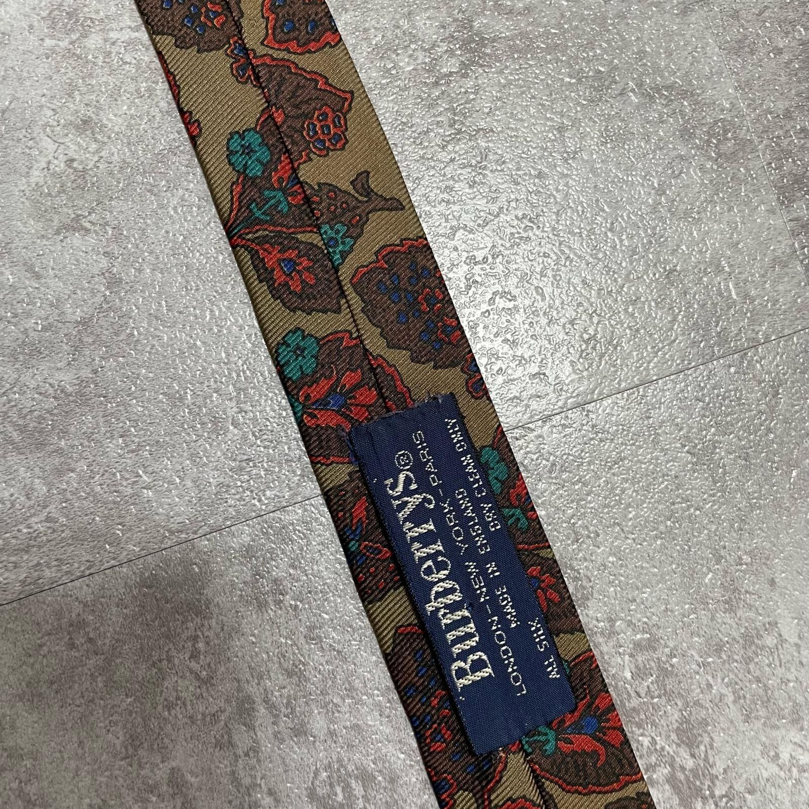【Burberrys】バーバリーズ リーフモチーフネクタイ シルク100% メンズ コーラル 黄土色 グリーン 緑 レッド 赤 イギリス製 植物柄 ボタニカル 葉っぱ柄 ヴィンテージ