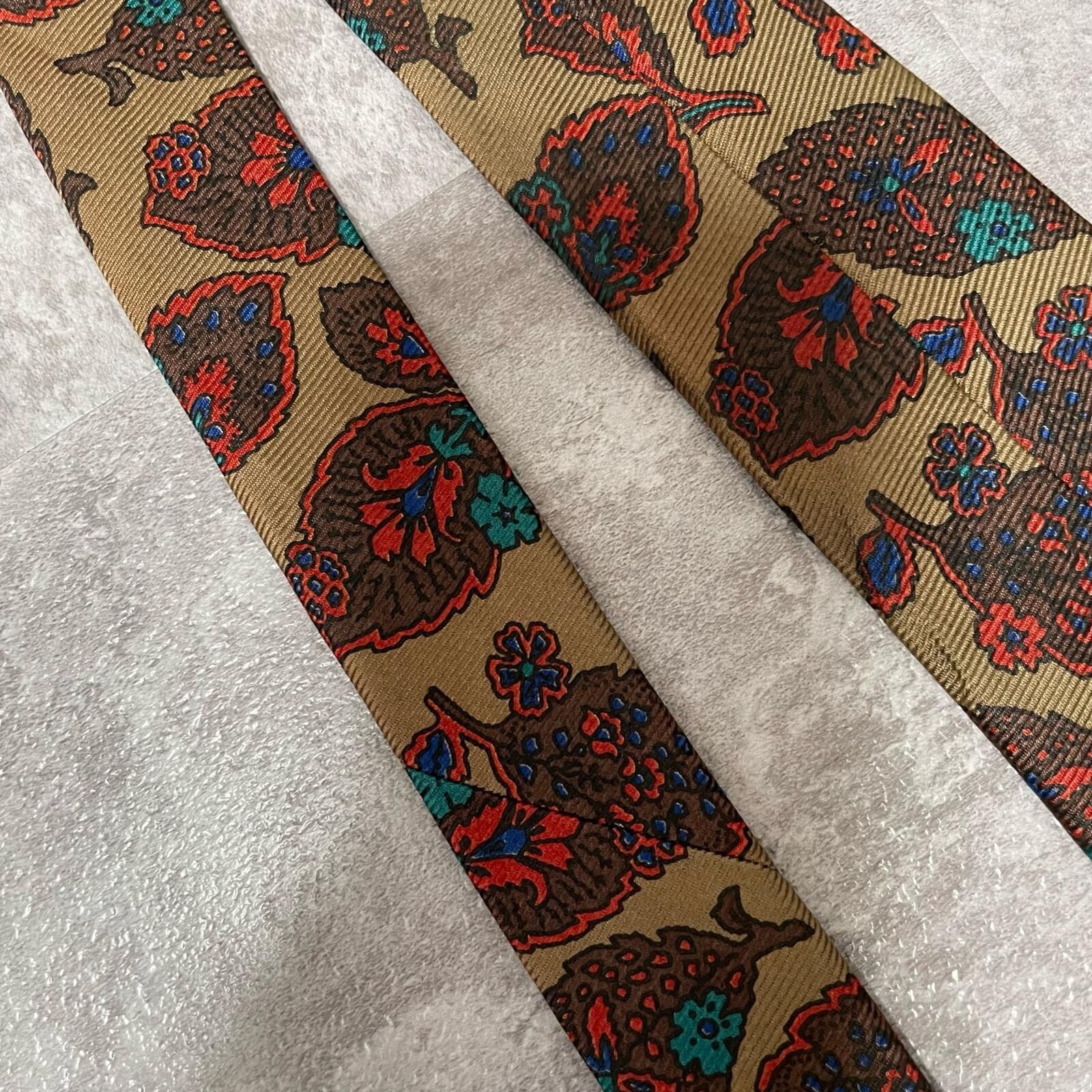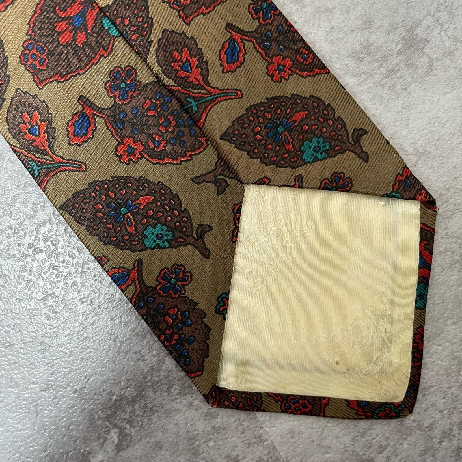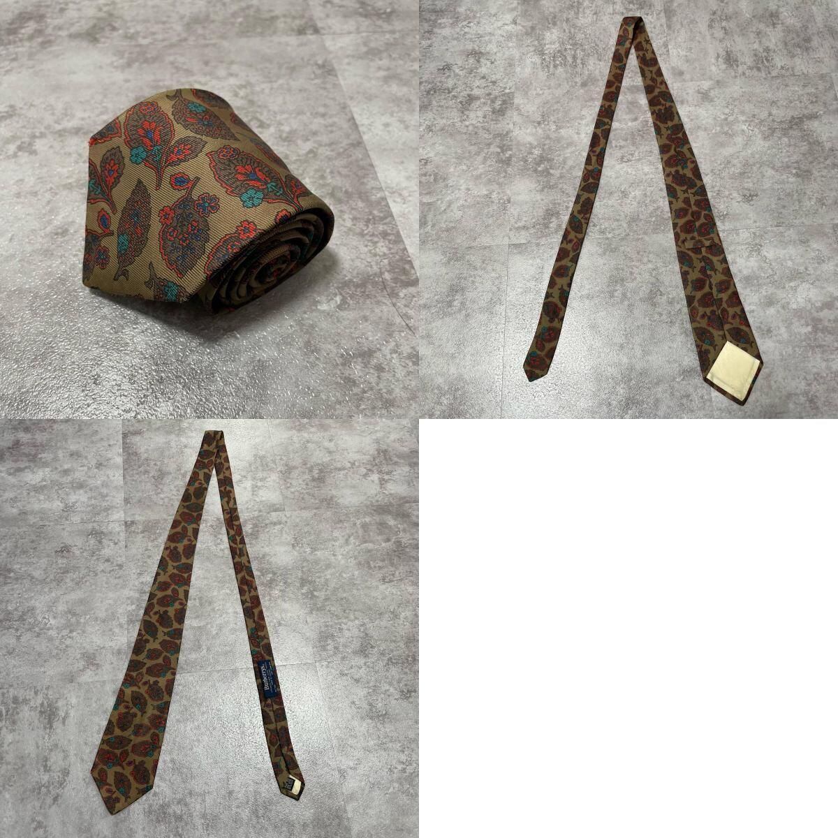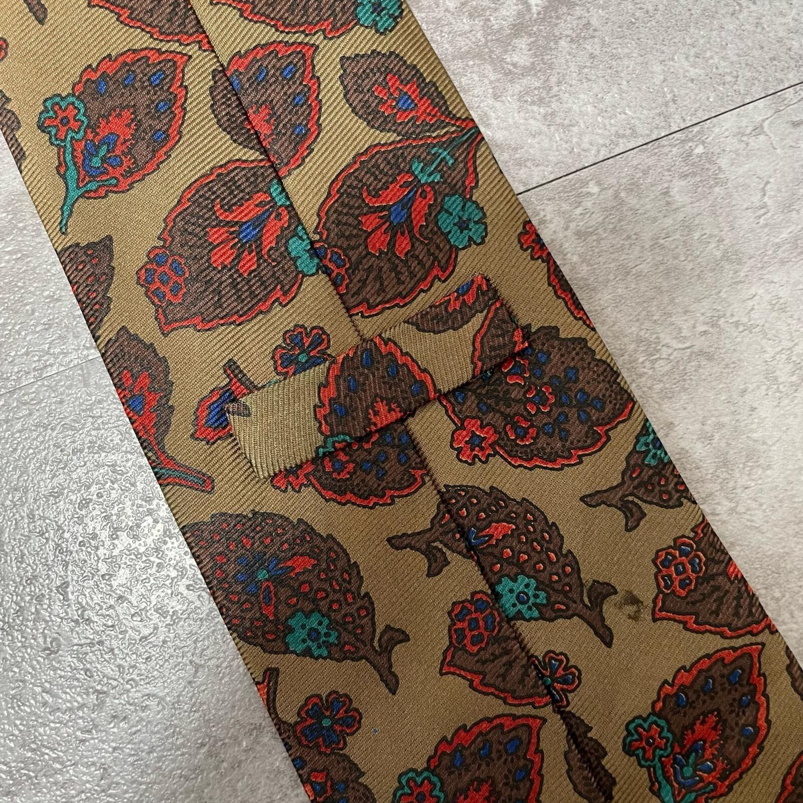 【Burberrys】バーバリーズ リーフモチーフネクタイ シルク100% メンズ コーラル 黄土色 グリーン 緑 レッド 赤 イギリス製 植物柄 ボタニカル 葉っぱ柄 ヴィンテージ