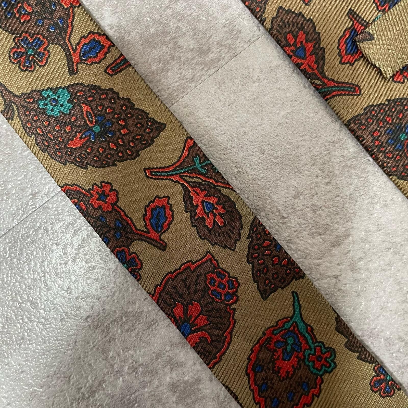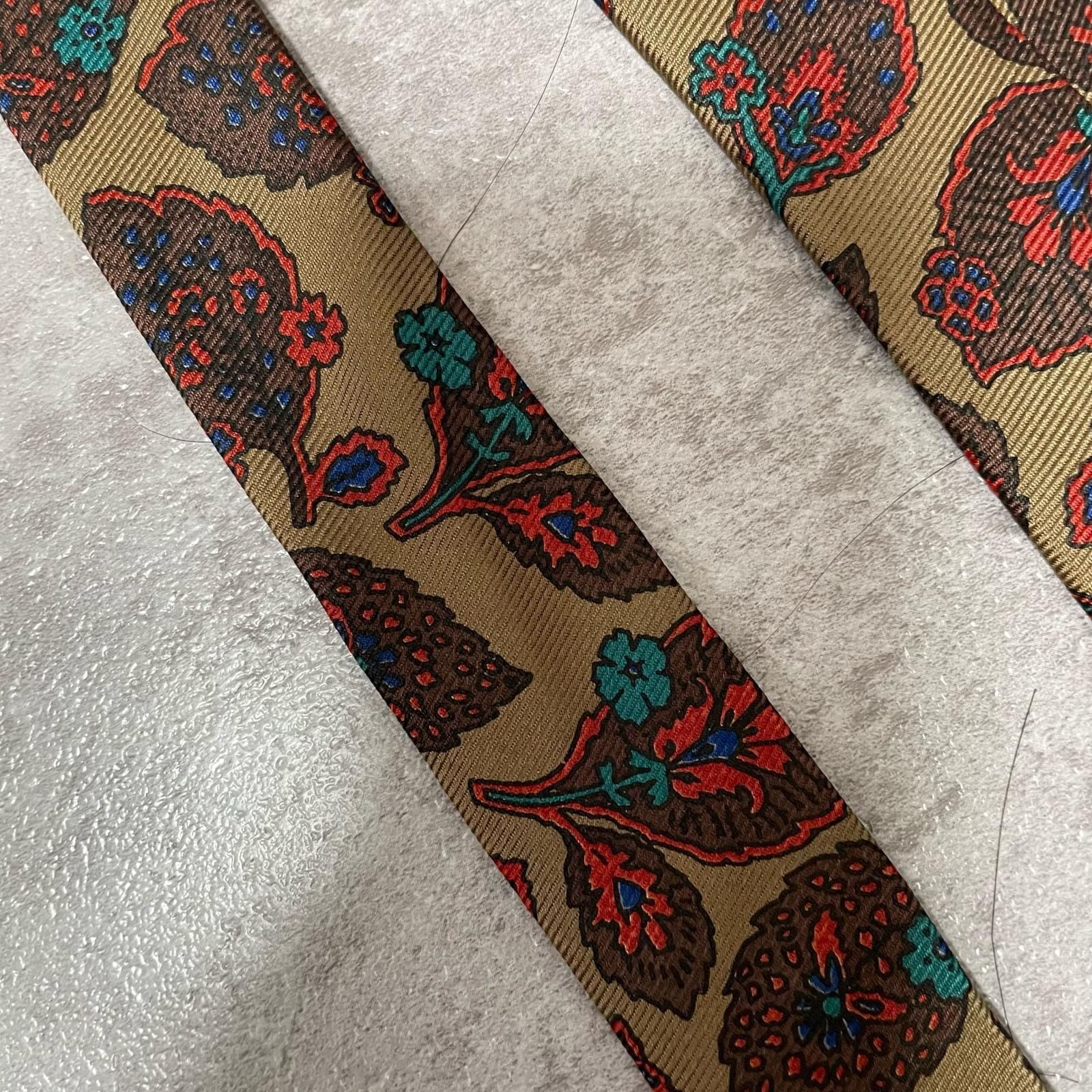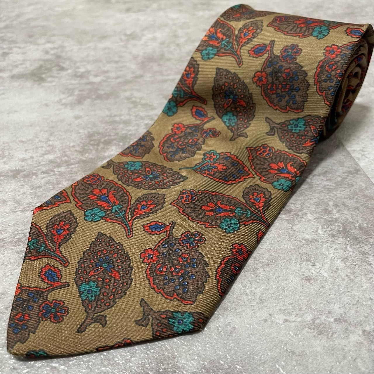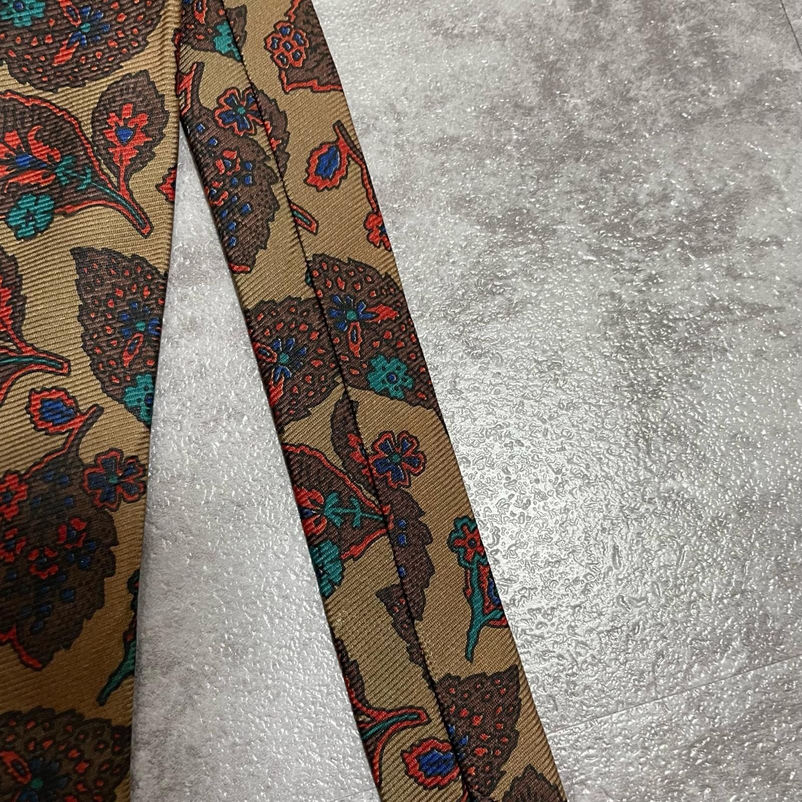 【Burberrys】バーバリーズ リーフモチーフネクタイ シルク100% メンズ コーラル 黄土色 グリーン 緑 レッド 赤 イギリス製 植物柄 ボタニカル 葉っぱ柄 ヴィンテージ
