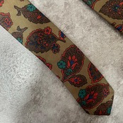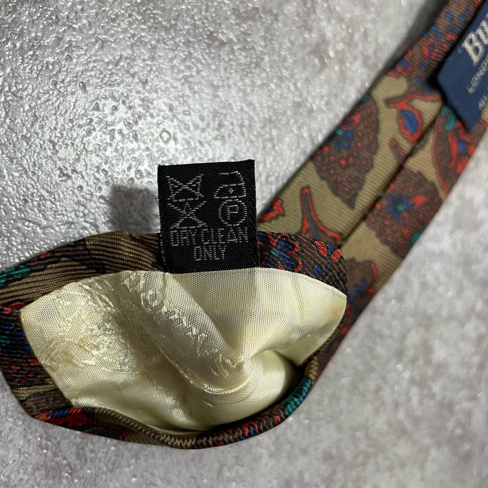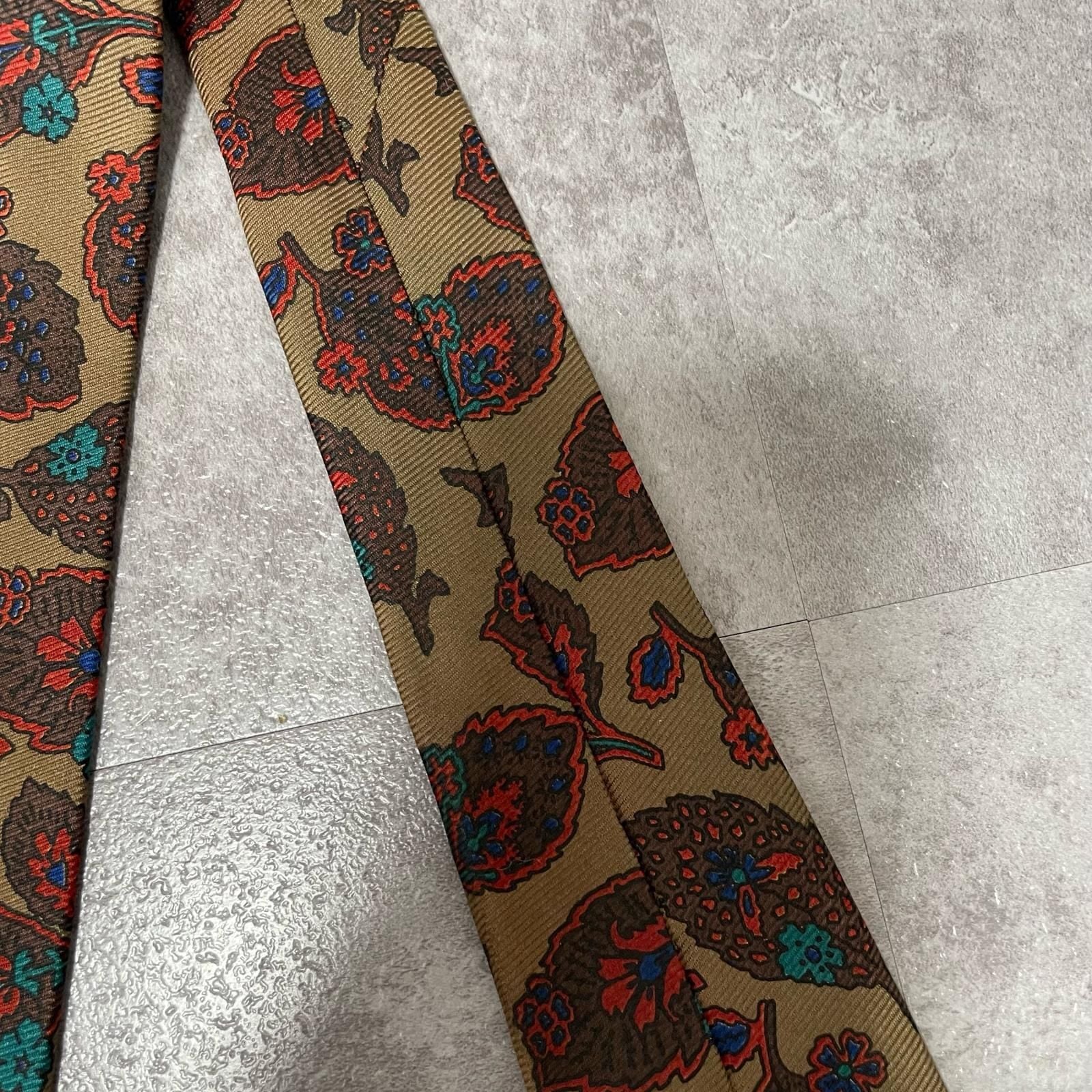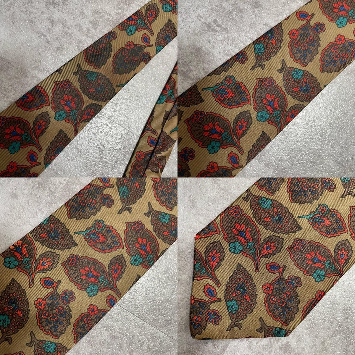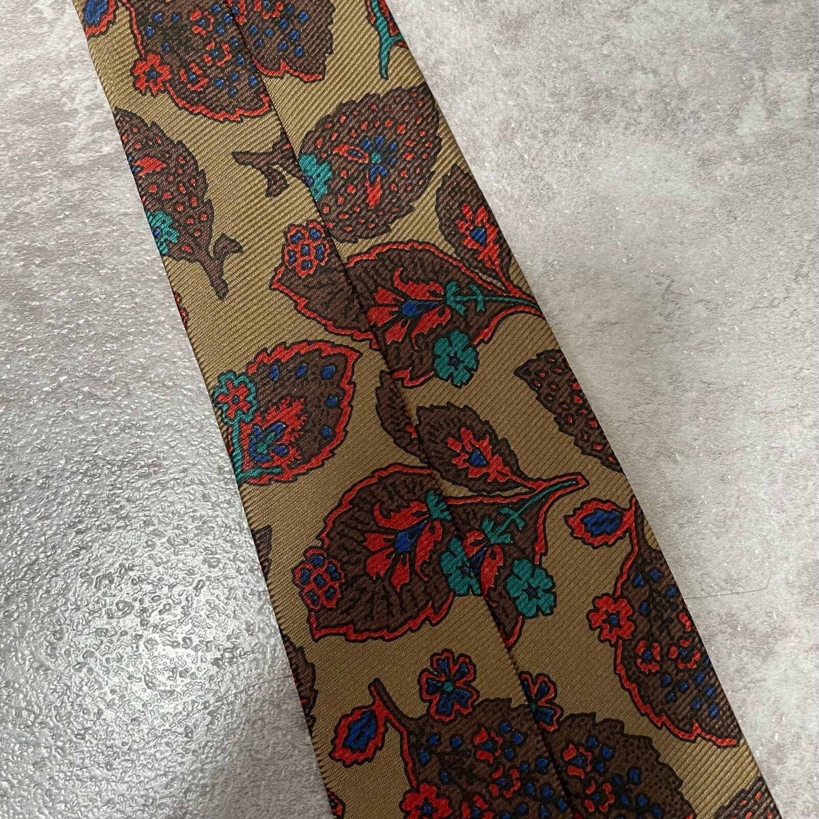 【Burberrys】バーバリーズ リーフモチーフネクタイ シルク100% メンズ コーラル 黄土色 グリーン 緑 レッド 赤 イギリス製 植物柄 ボタニカル 葉っぱ柄 ヴィンテージ