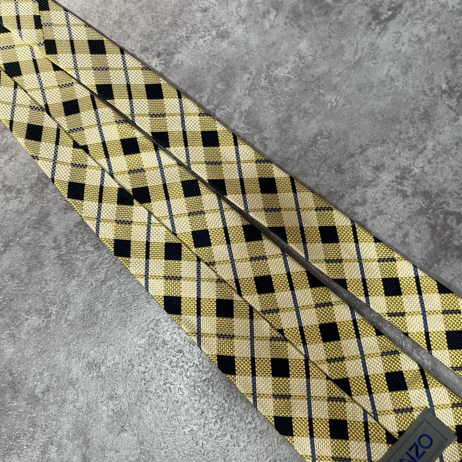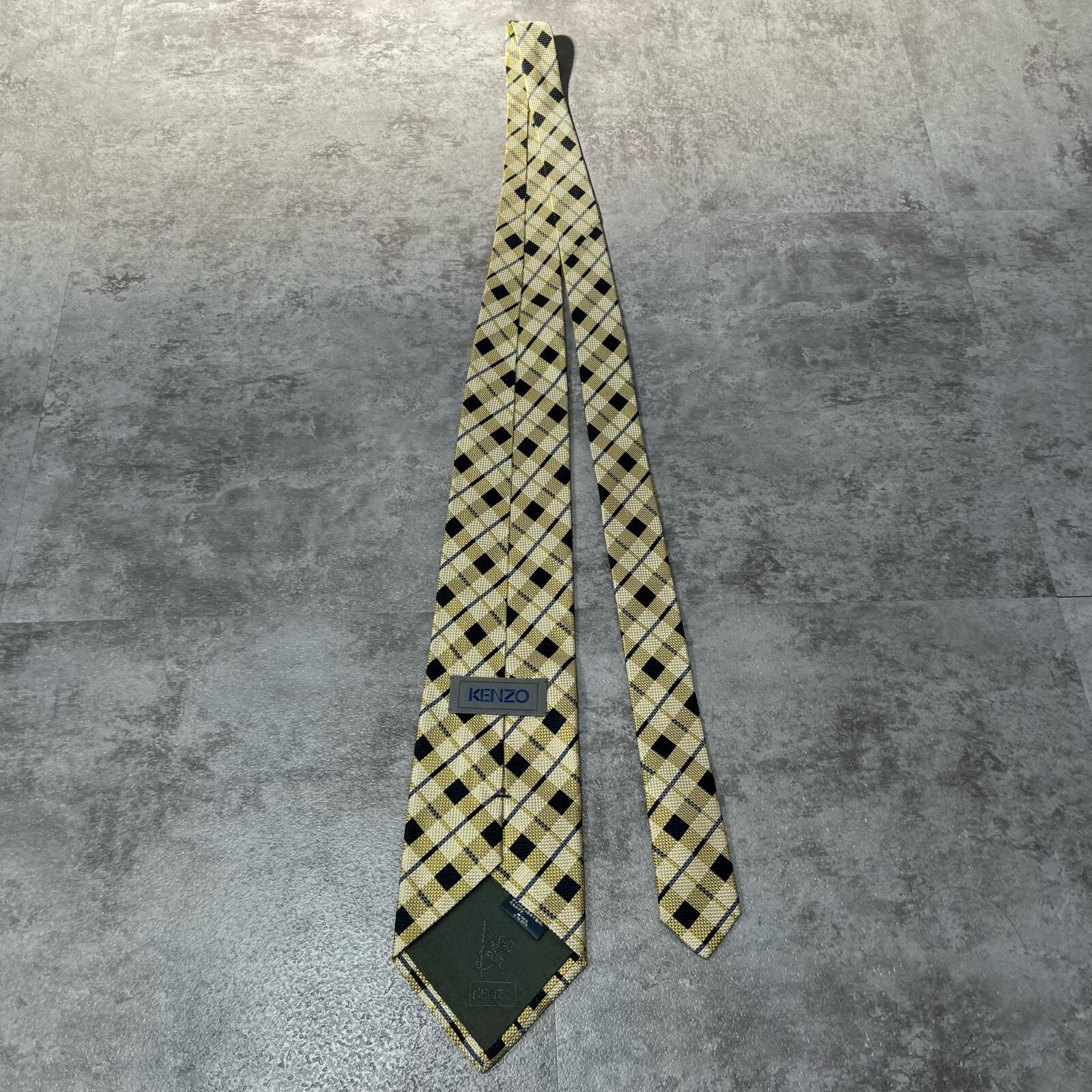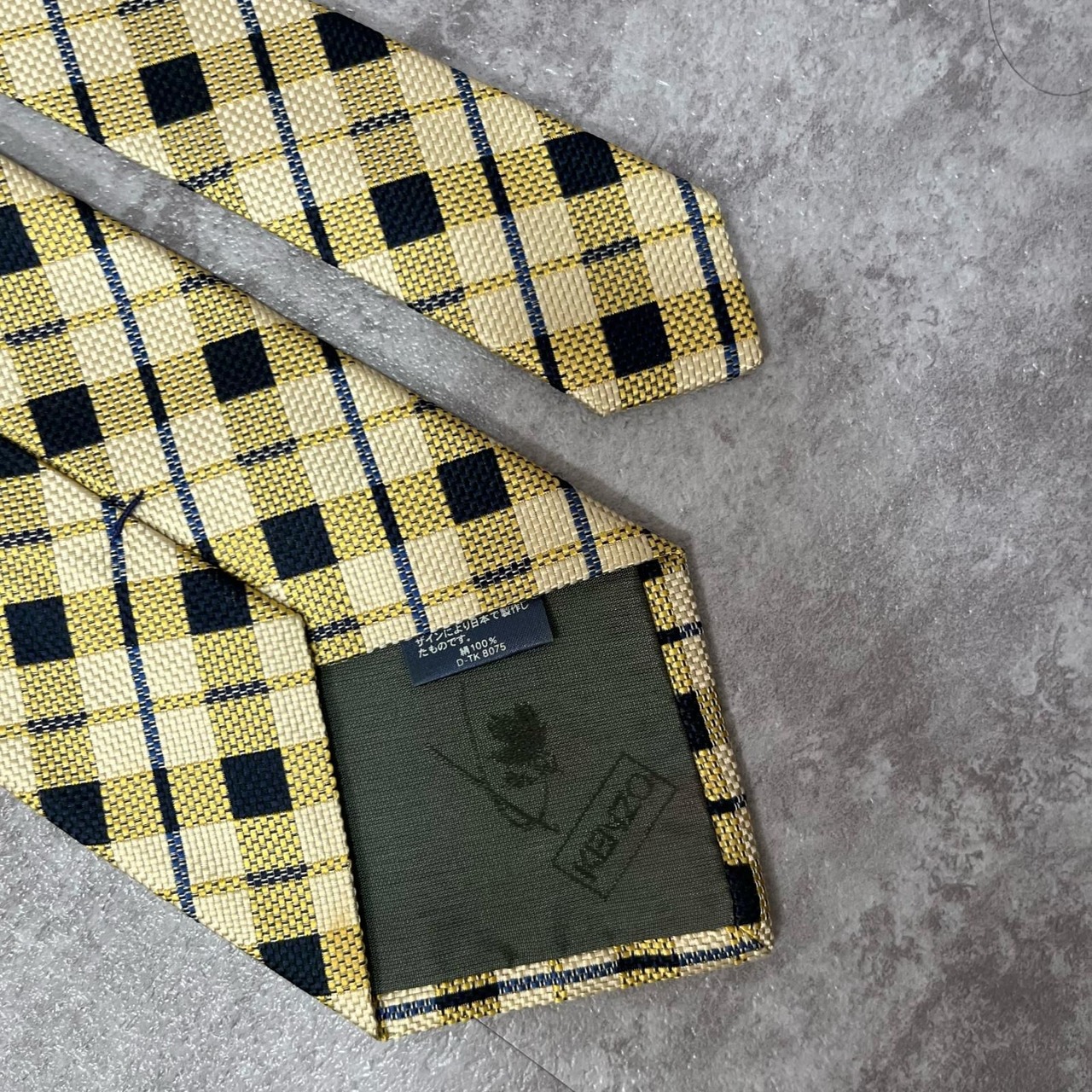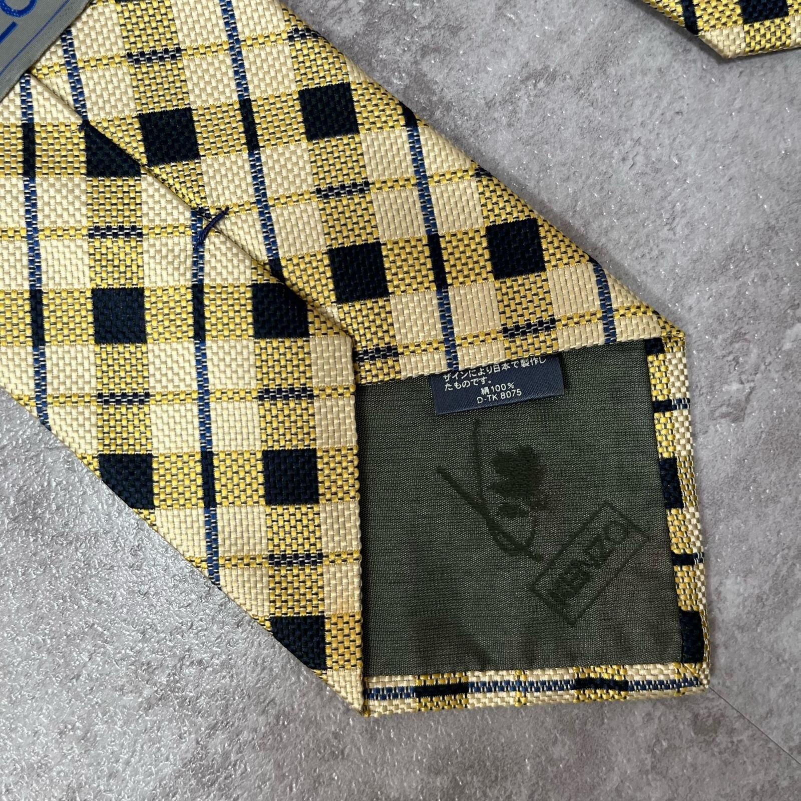 【KENZO】ケンゾー チェック柄ネクタイ バイカラー イエロー ネイビー 黄色 紺 ビジネス向け シルク100% 日本製