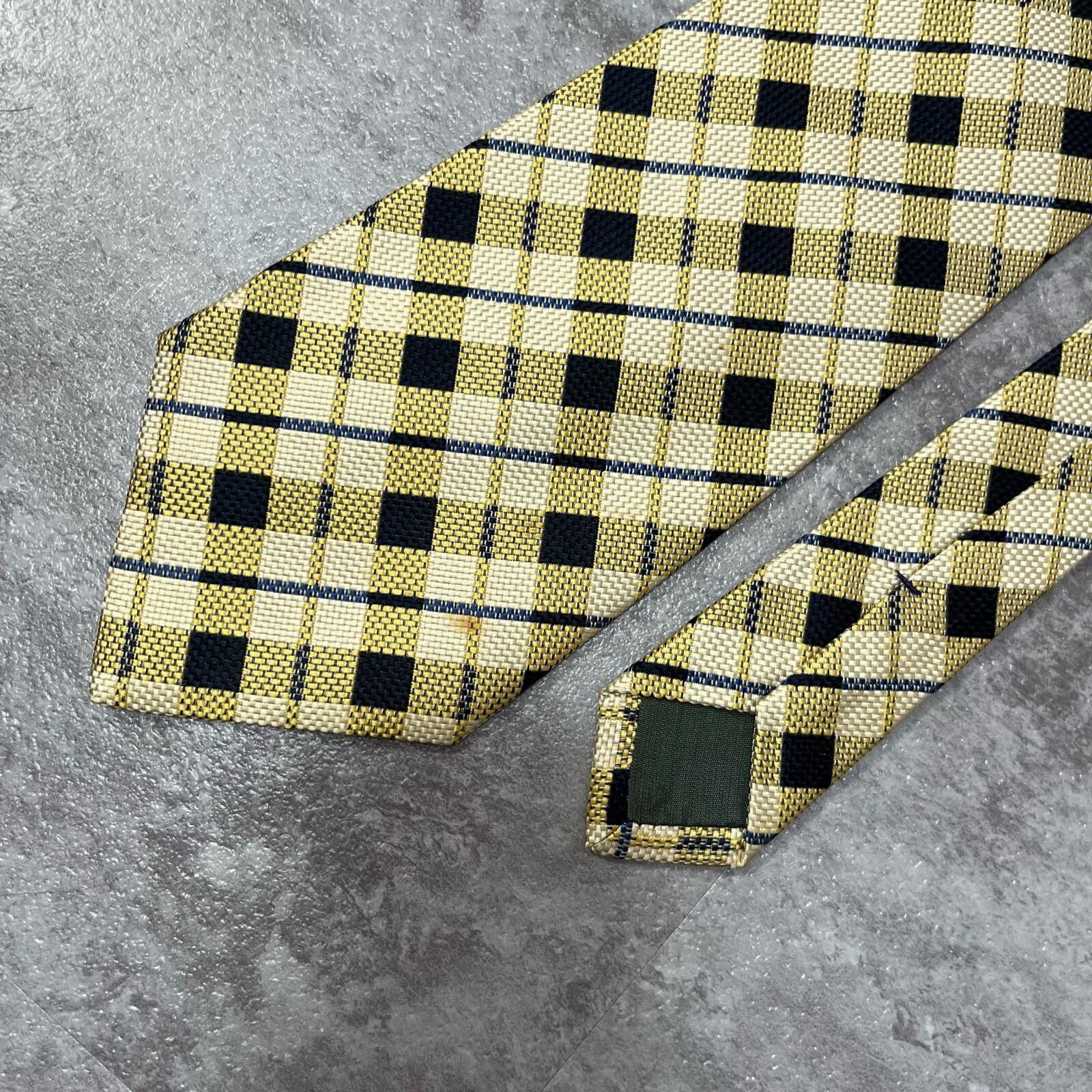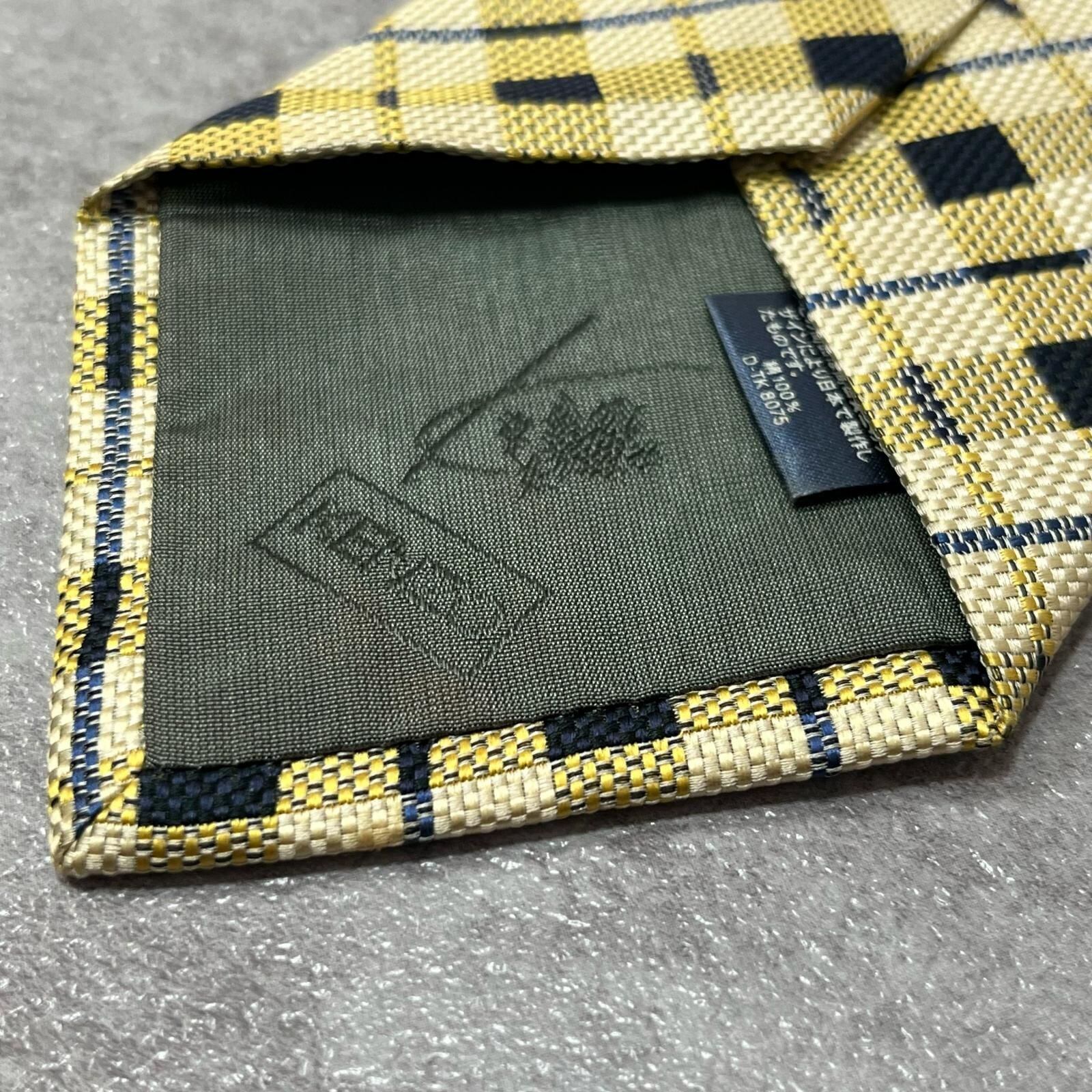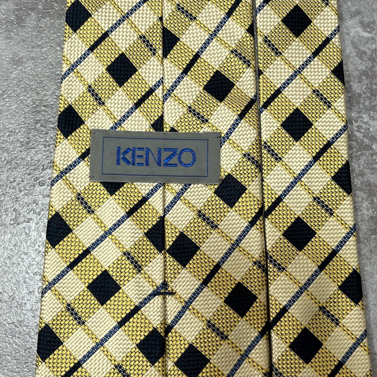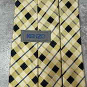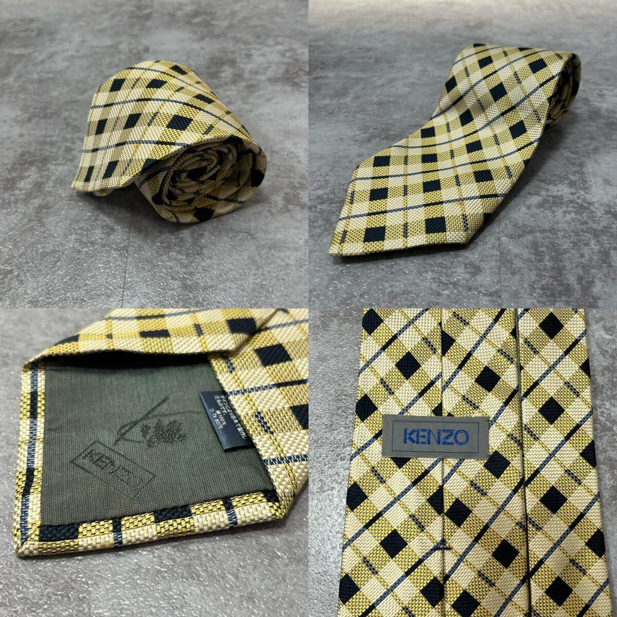 【KENZO】ケンゾー チェック柄ネクタイ バイカラー イエロー ネイビー 黄色 紺 ビジネス向け シルク100% 日本製