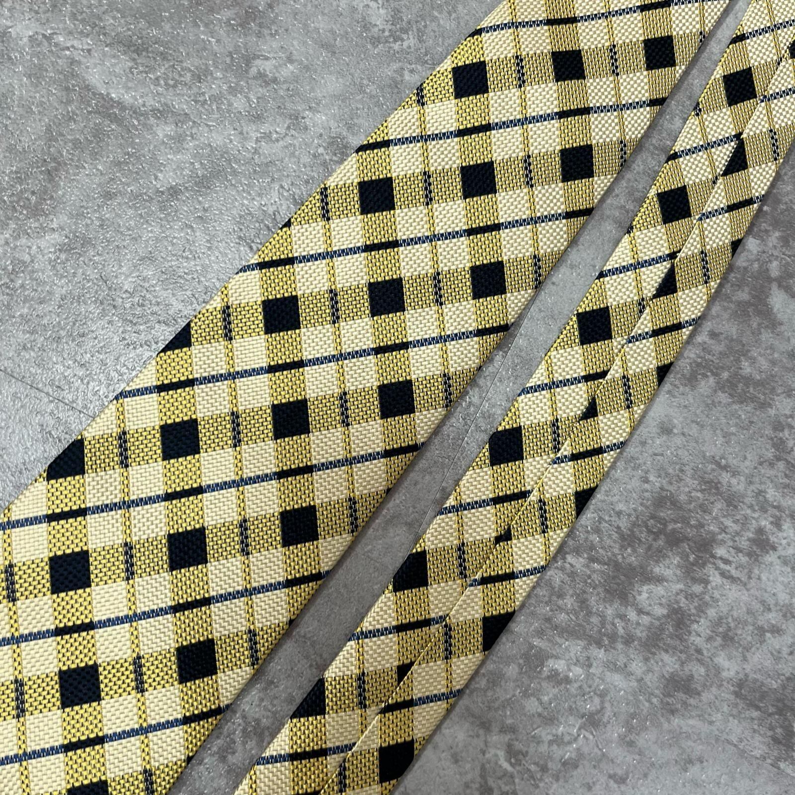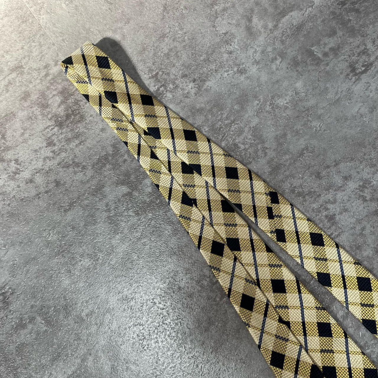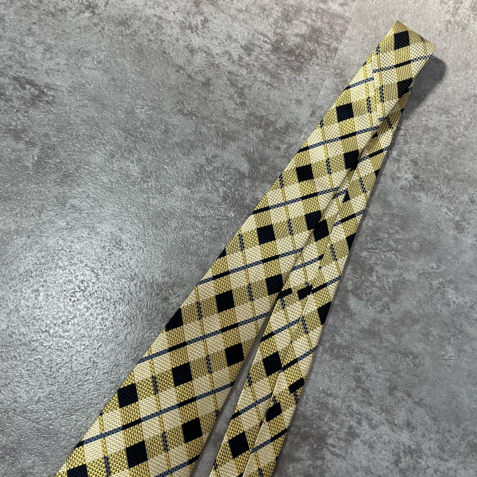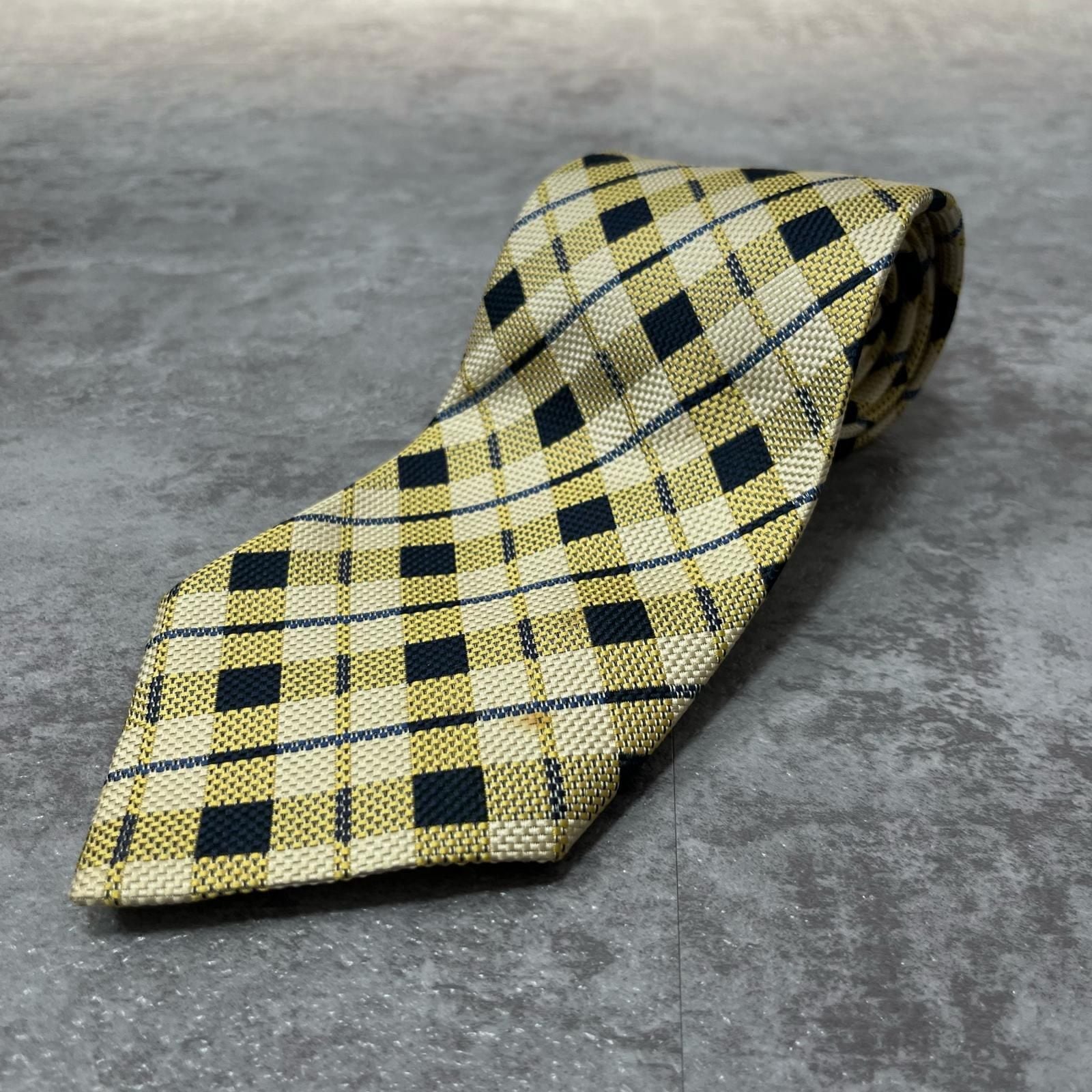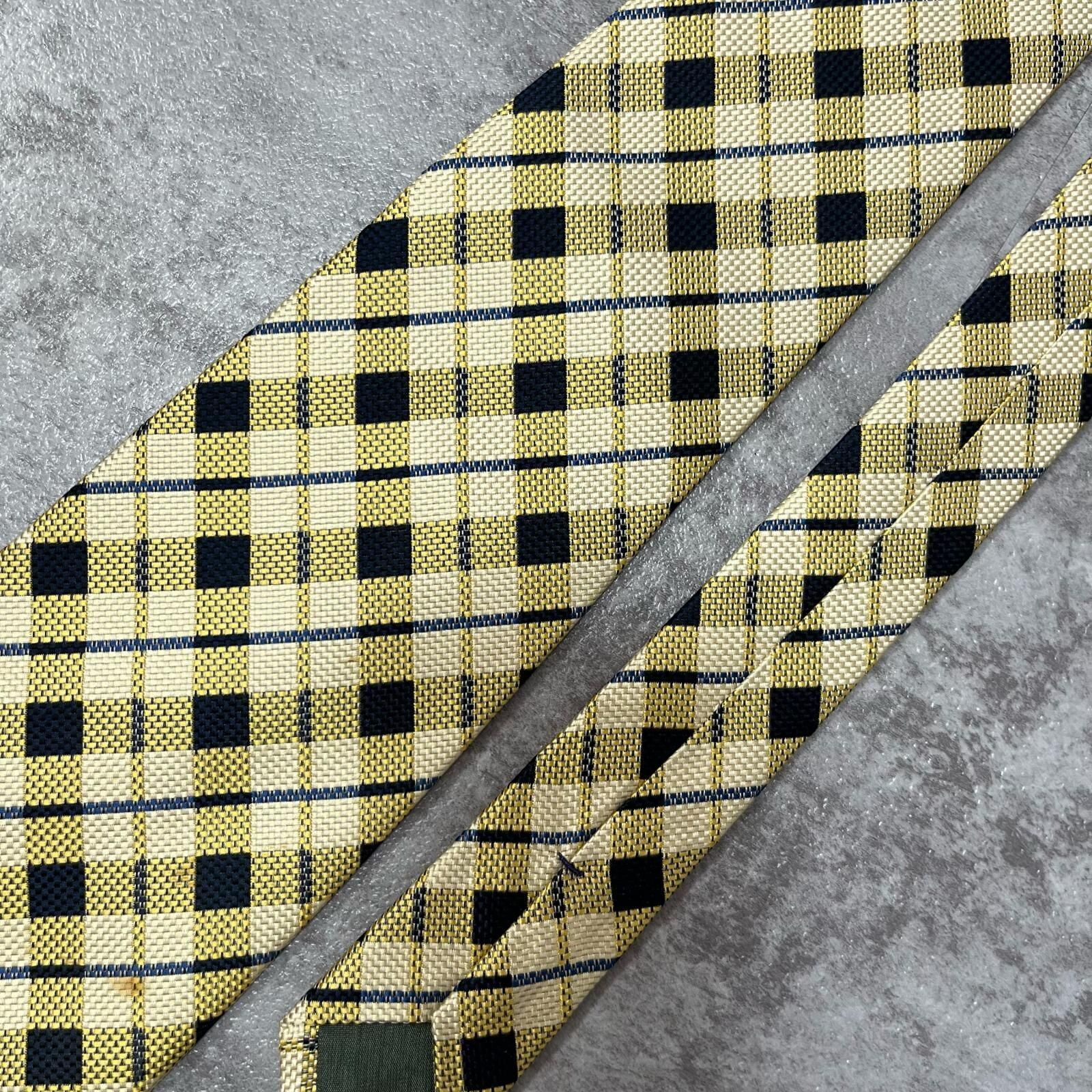 【KENZO】ケンゾー チェック柄ネクタイ バイカラー イエロー ネイビー 黄色 紺 ビジネス向け シルク100% 日本製