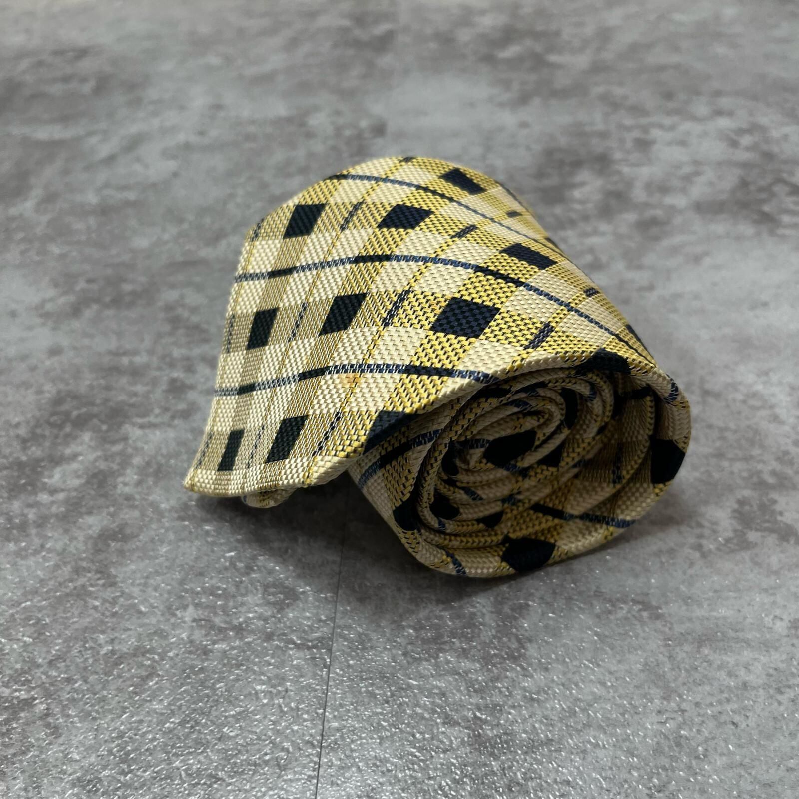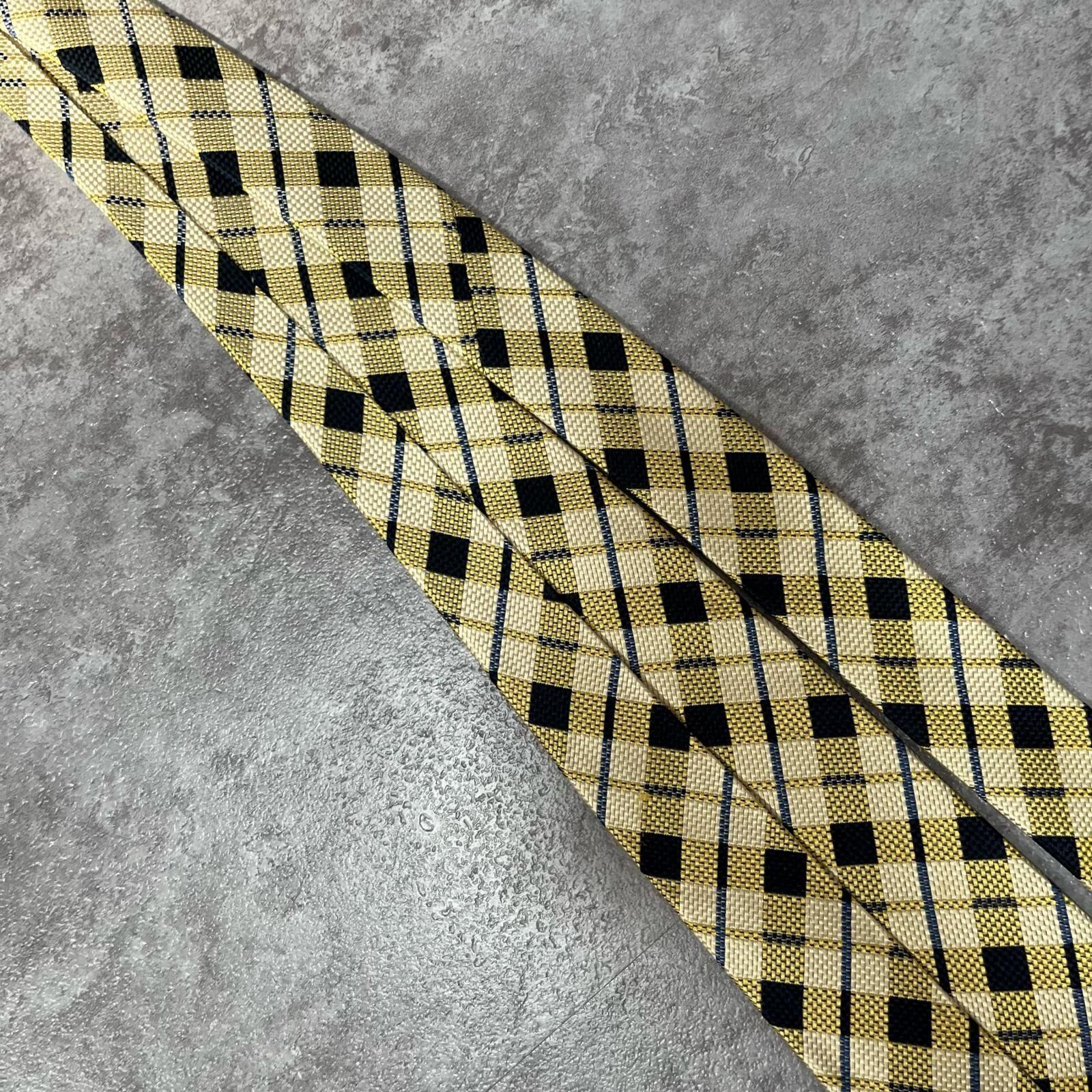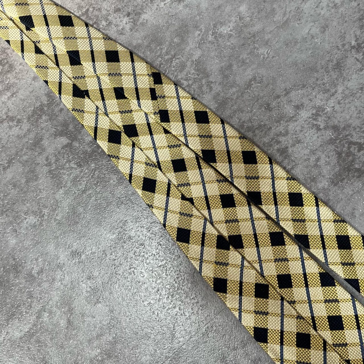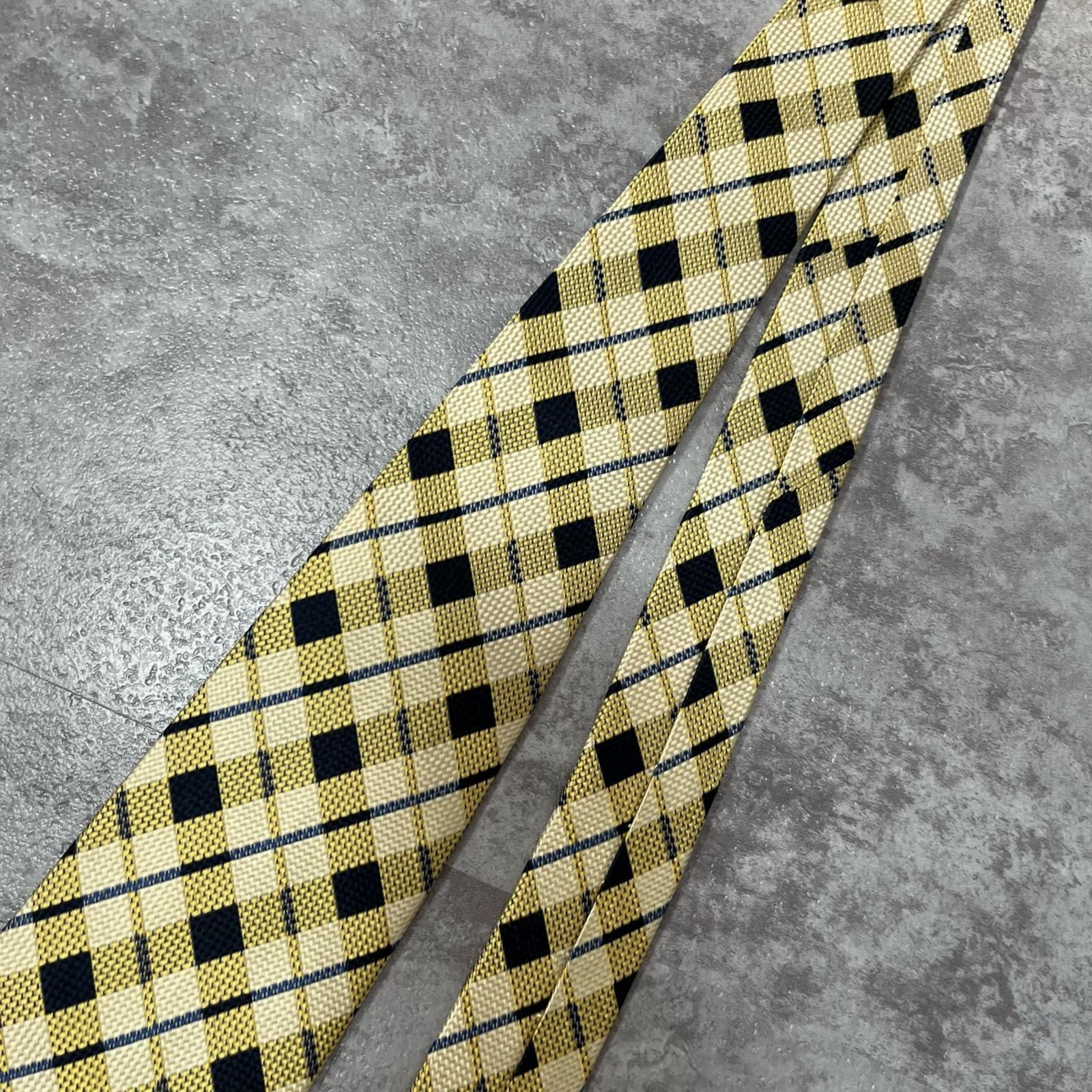 【KENZO】ケンゾー チェック柄ネクタイ バイカラー イエロー ネイビー 黄色 紺 ビジネス向け シルク100% 日本製