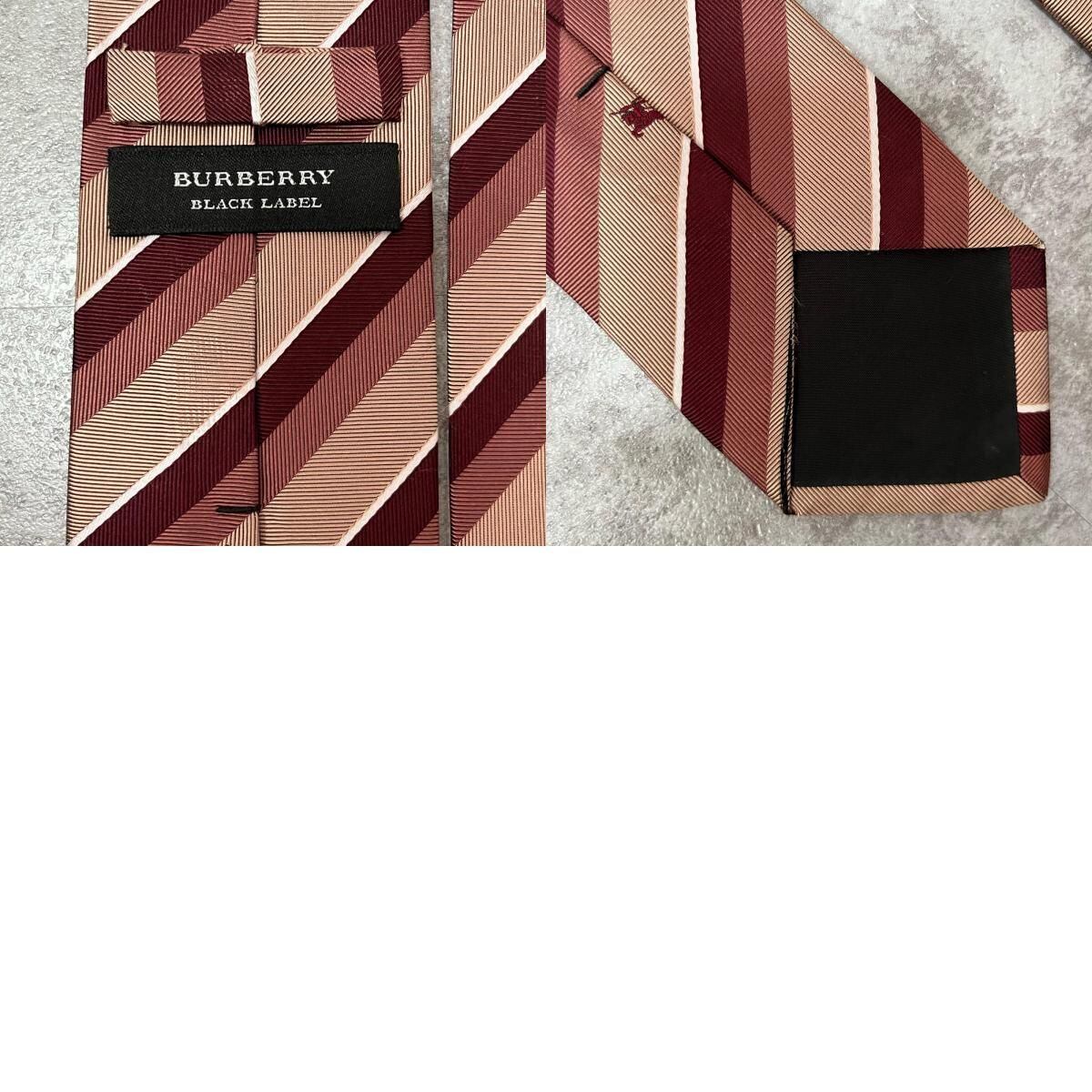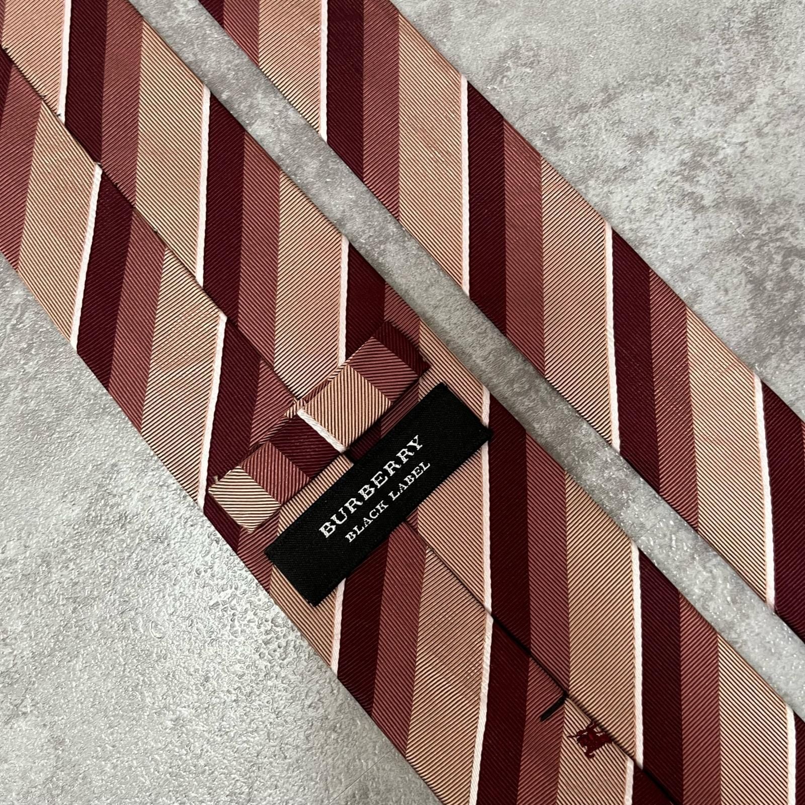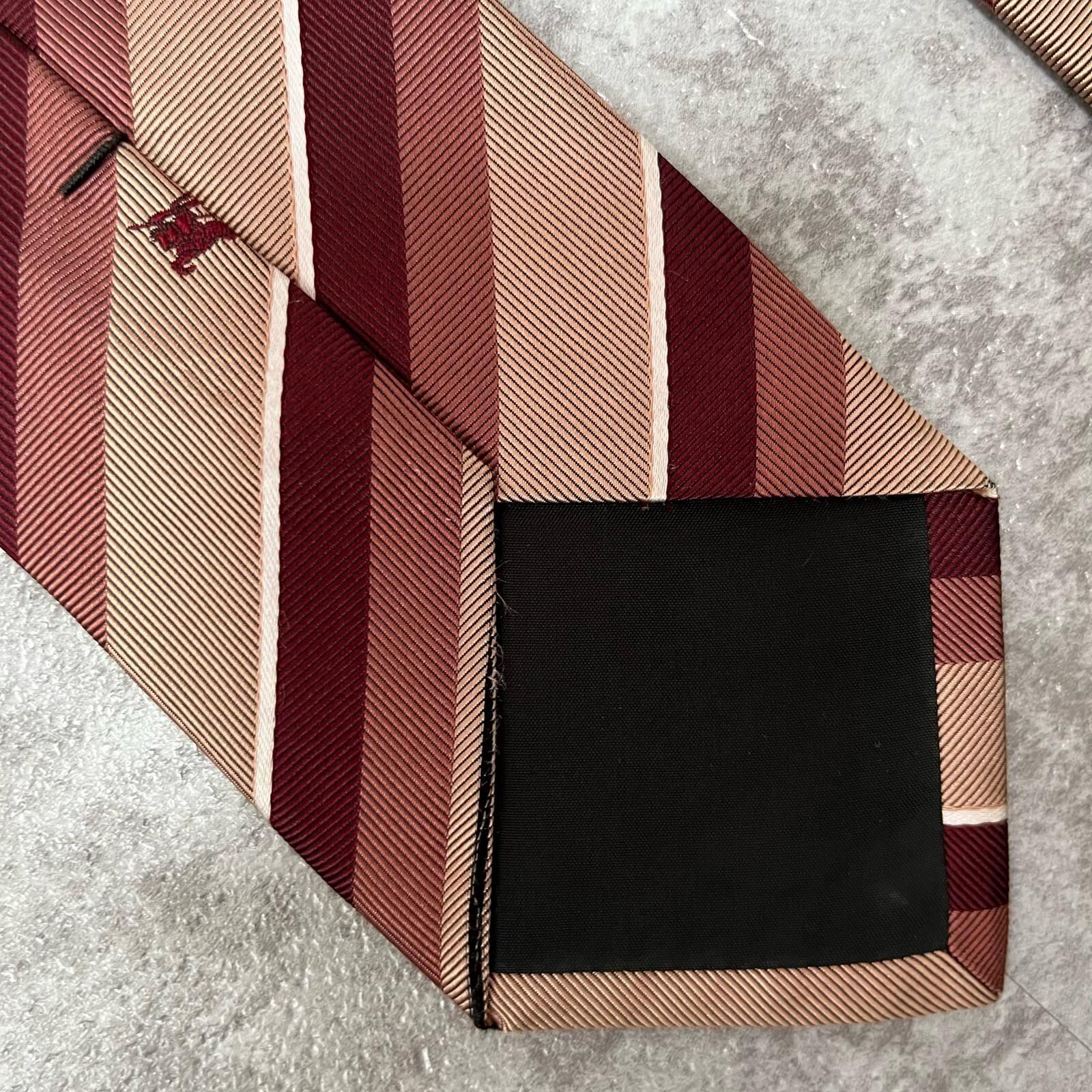 【BURBERRY BLACK LABEL】バーバリーブラックレーベル ロゴ入りレジメンタルストライプネクタイ シルク100% メンズ 日本製 ホースロゴ バイカラー レッド ピンク 赤 桃色 ビジネス向け