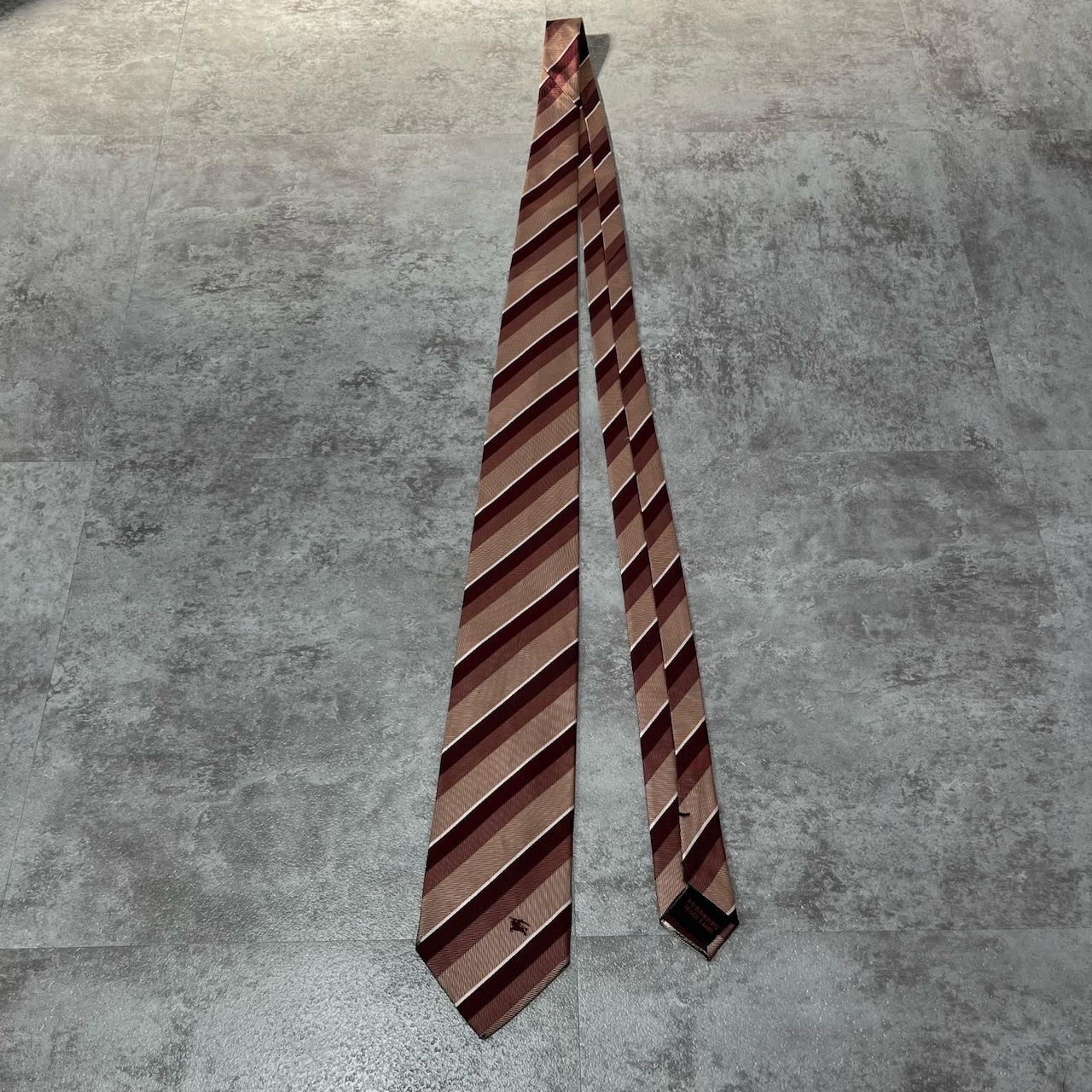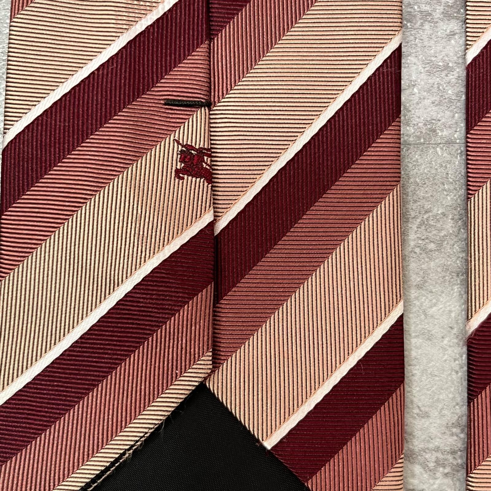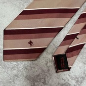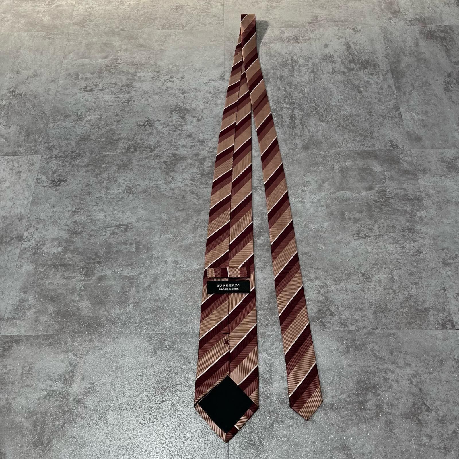 【BURBERRY BLACK LABEL】バーバリーブラックレーベル ロゴ入りレジメンタルストライプネクタイ シルク100% メンズ 日本製 ホースロゴ バイカラー レッド ピンク 赤 桃色 ビジネス向け