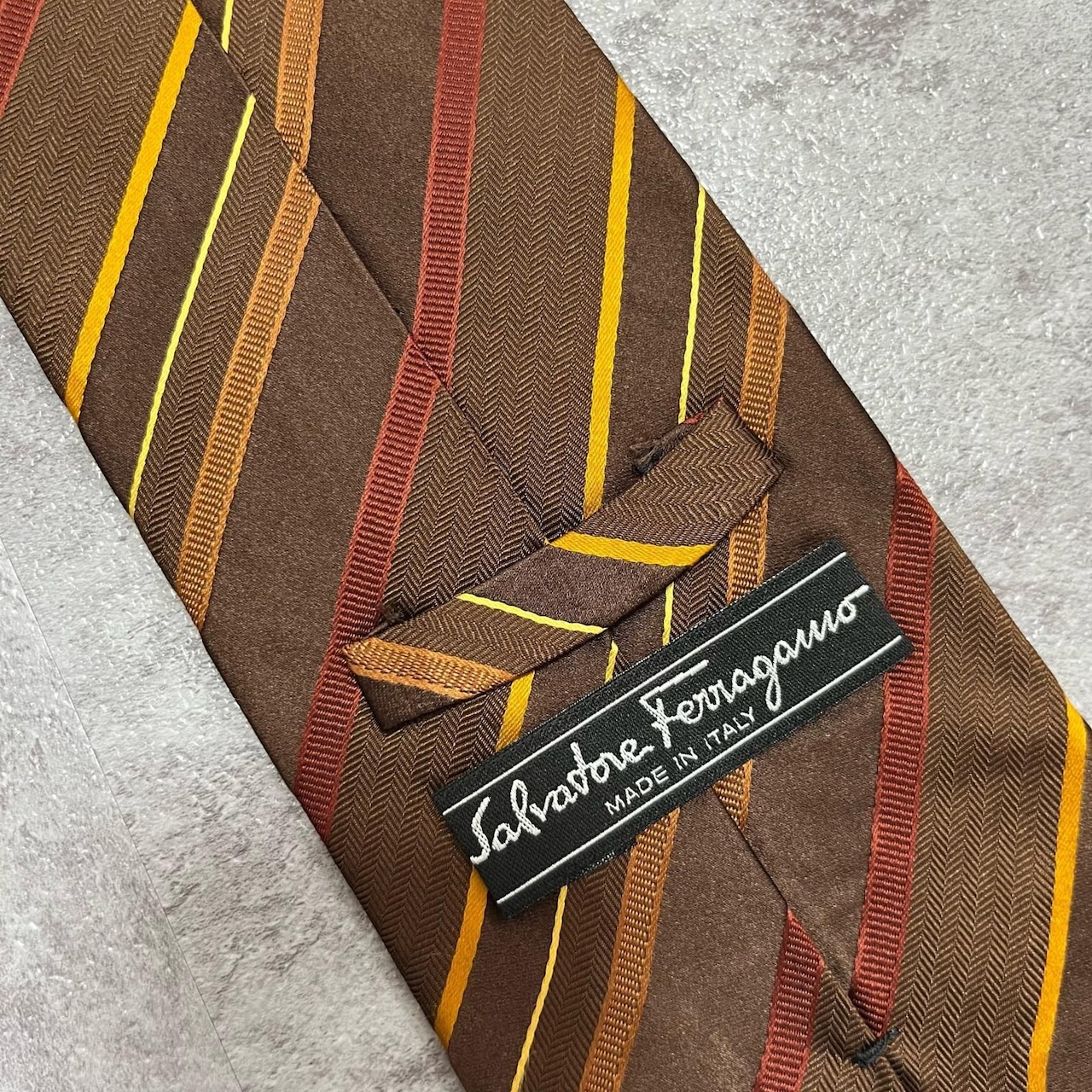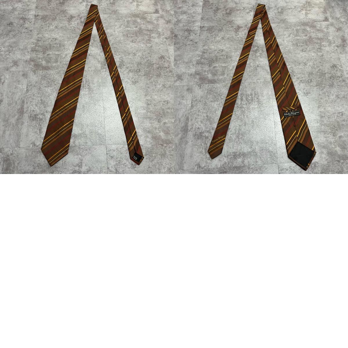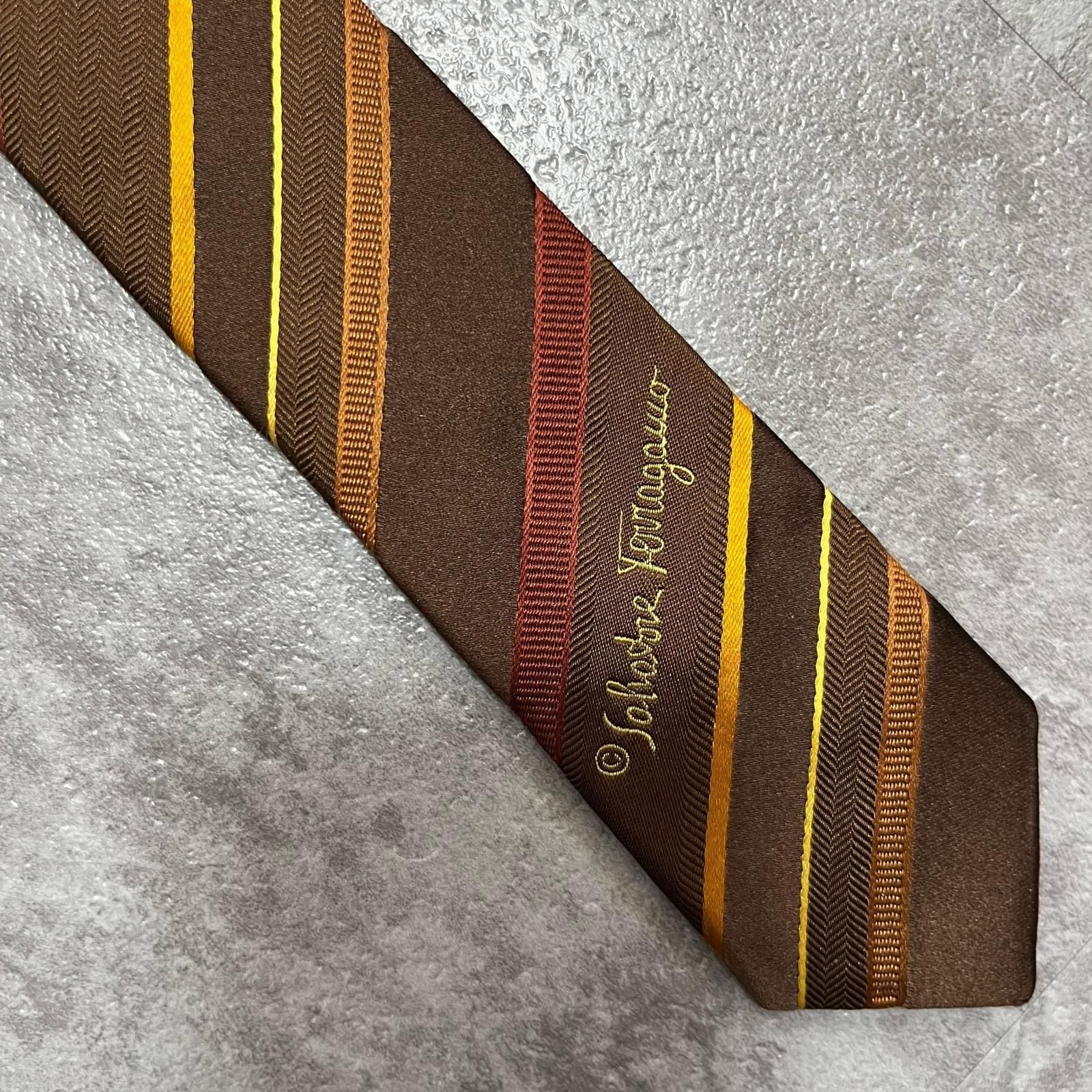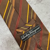 【Salvatore Ferragamo】サルヴァトーレフェラガモ レジメンタルストライプネクタイ シルク100% メンズ マルチカラー ブラウン 茶色 イエロー 黄色 レッド 赤 ビジネス向け イタリア製