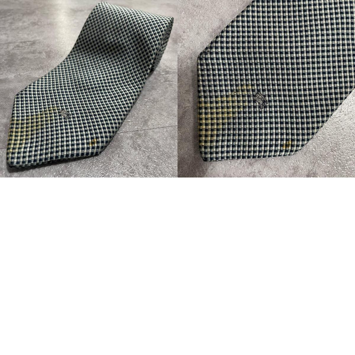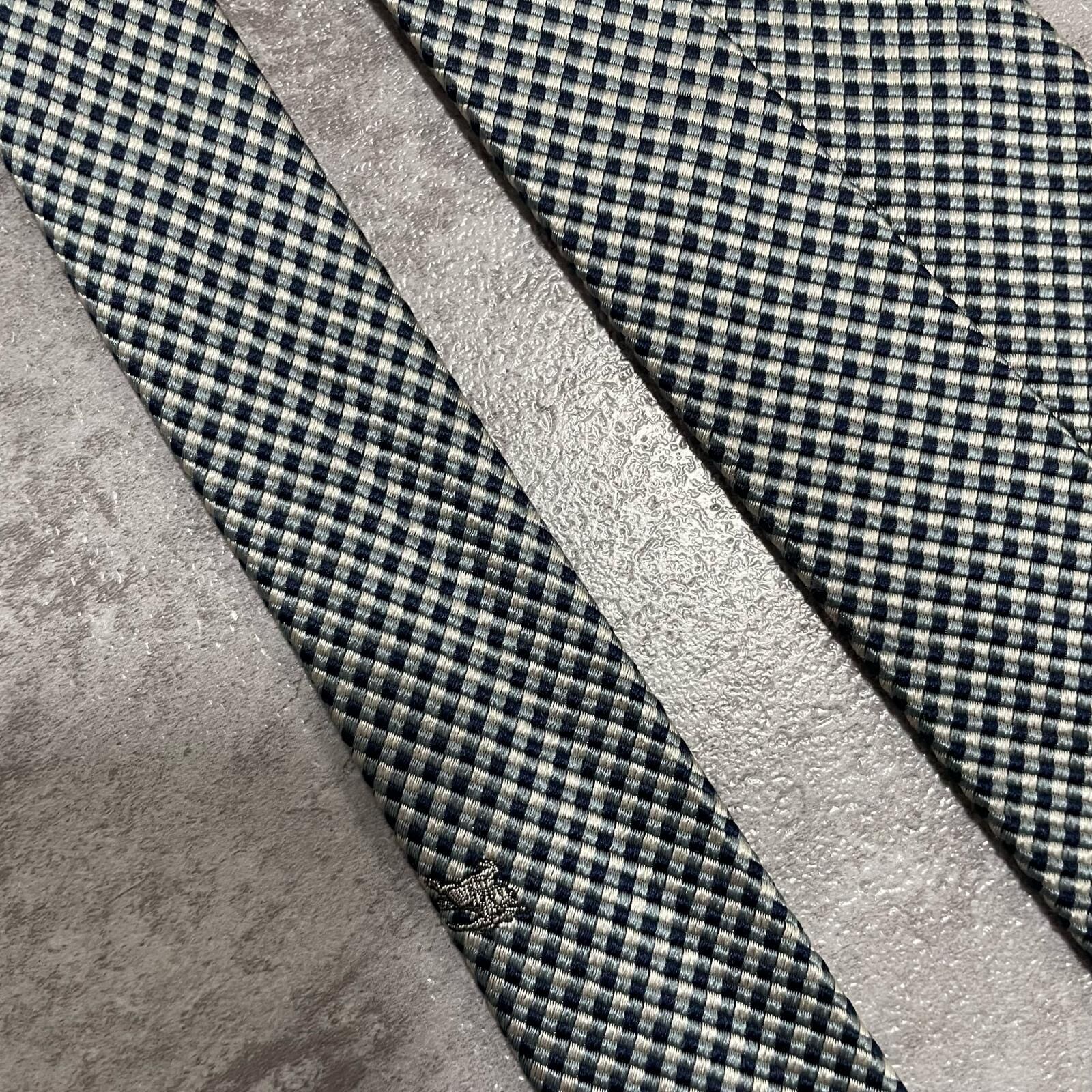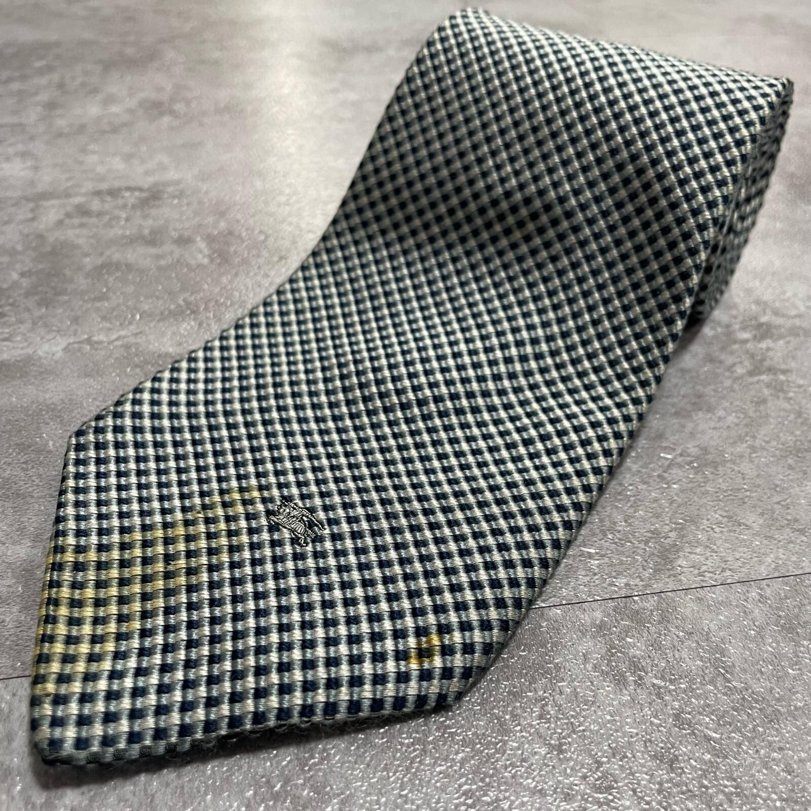 【BURBERRY】バーバリー ロゴ入りチェック柄ネクタイ シルク100% メンズ 日本製 ネイビー 紺色 グレー 灰色 ホースロゴ ワンポイント刺繍 格子柄 クラシックデザイン ビジネス向け ヴィンテージ