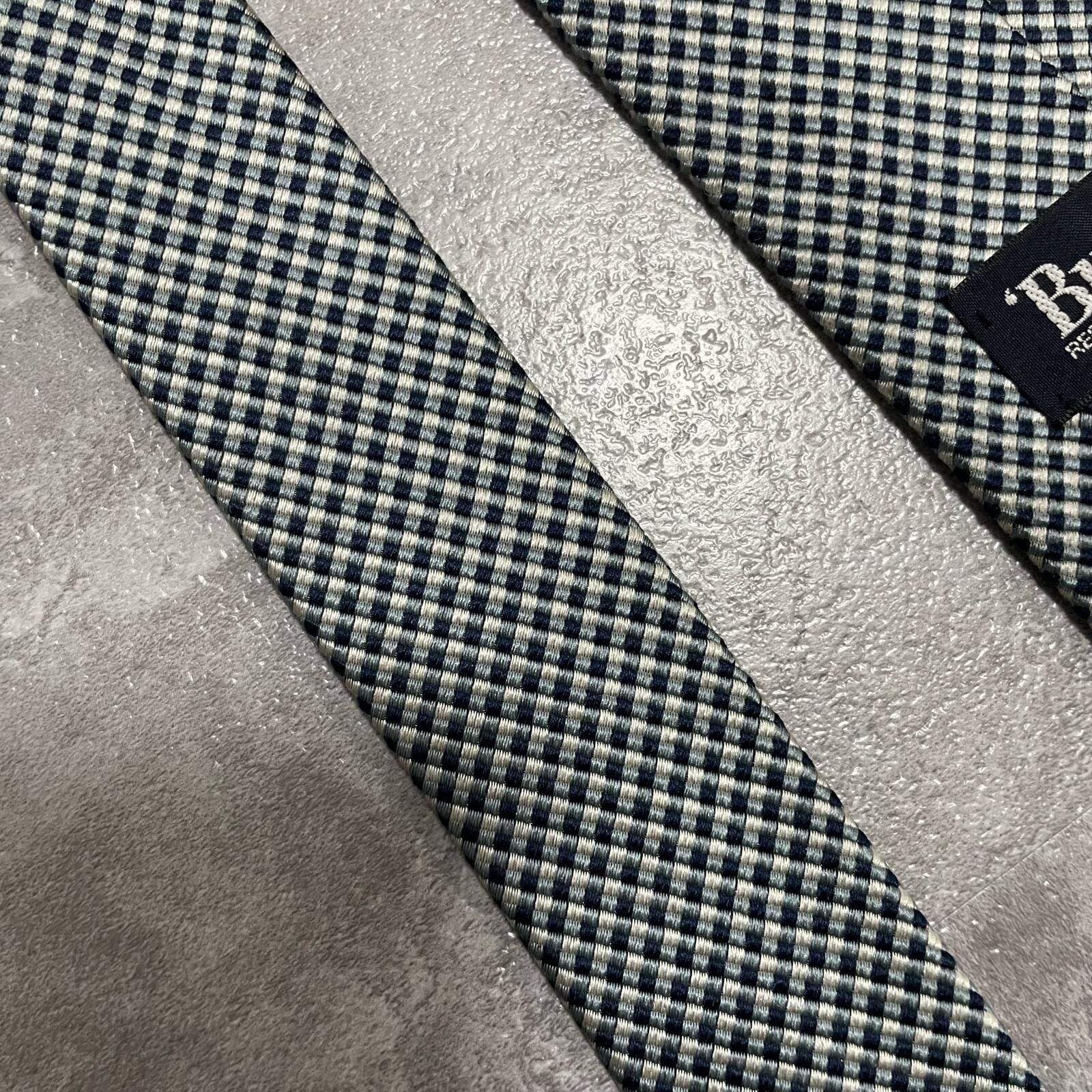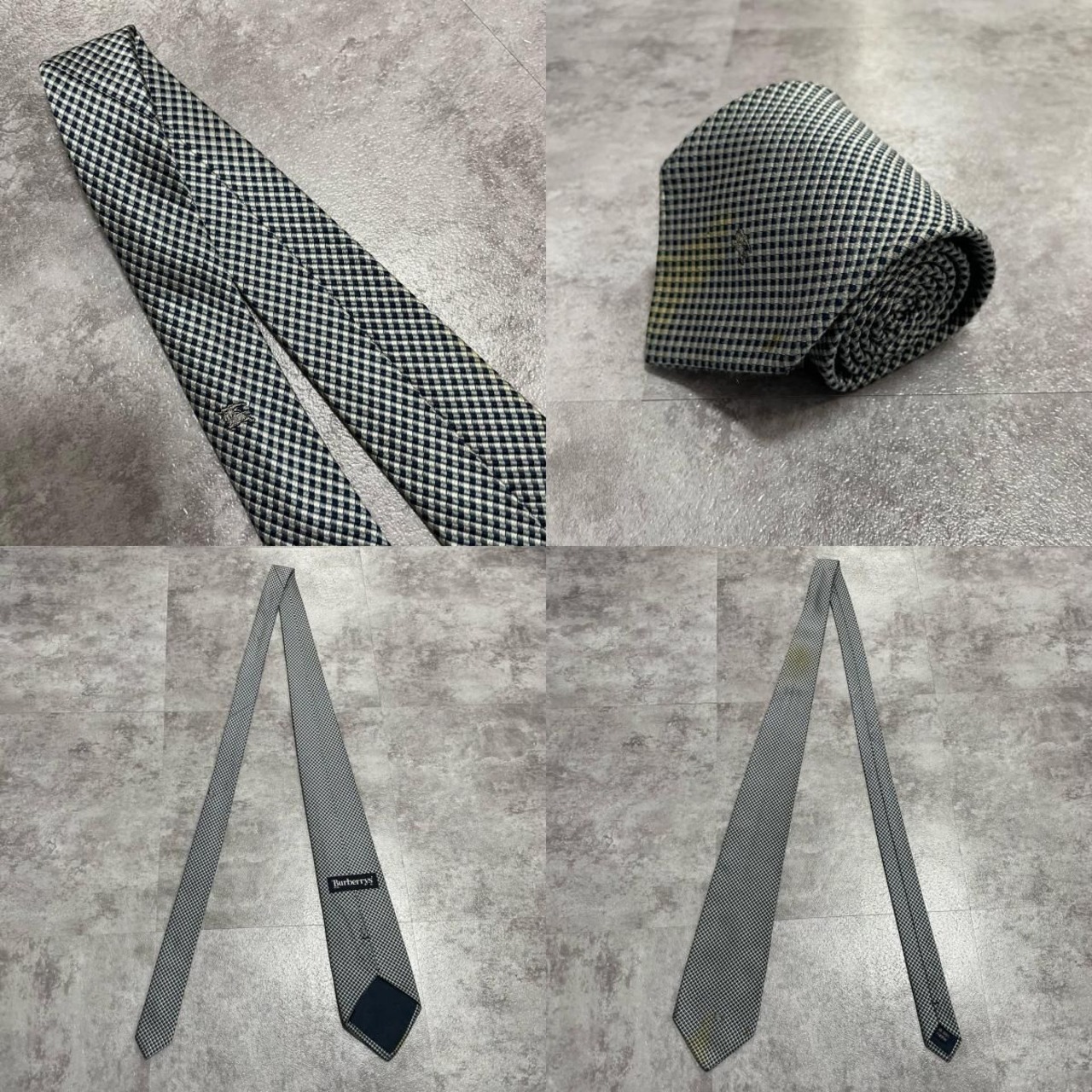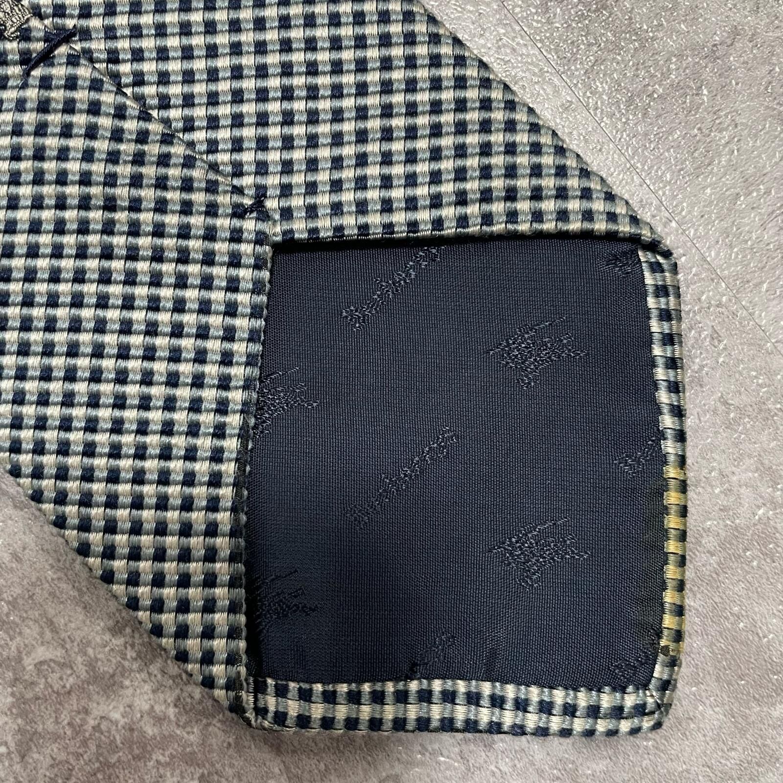 【BURBERRY】バーバリー ロゴ入りチェック柄ネクタイ シルク100% メンズ 日本製 ネイビー 紺色 グレー 灰色 ホースロゴ ワンポイント刺繍 格子柄 クラシックデザイン ビジネス向け ヴィンテージ