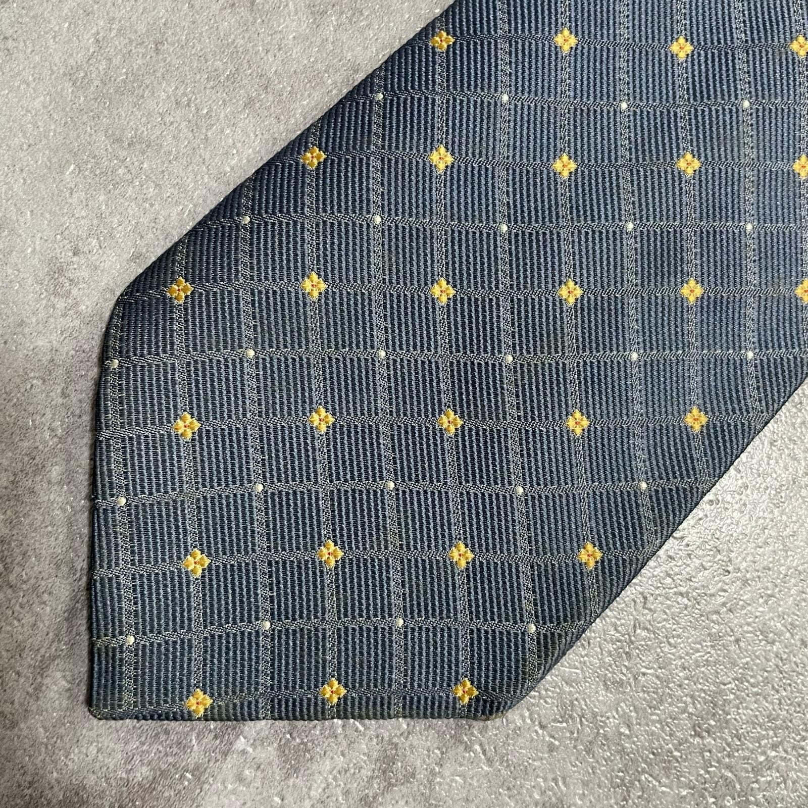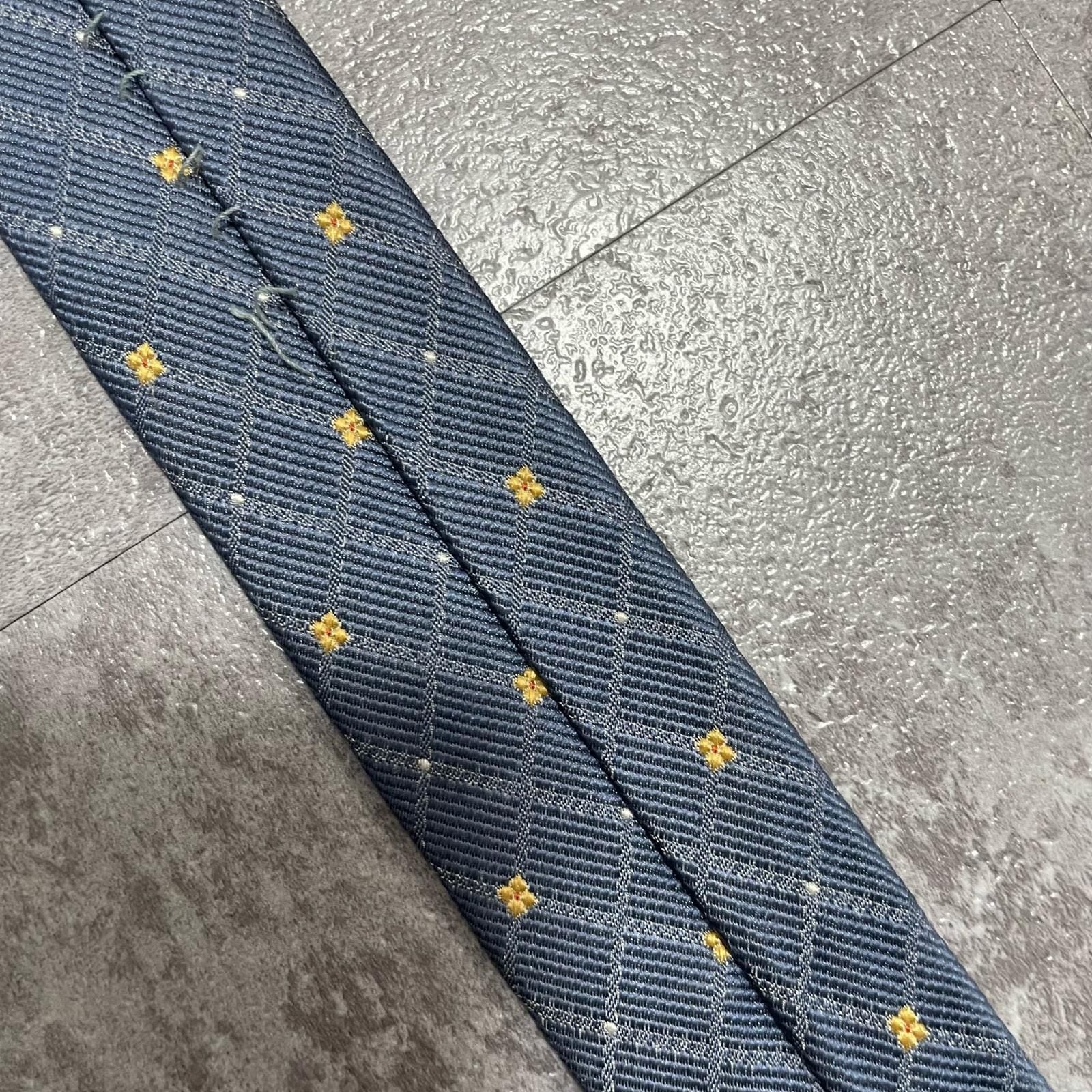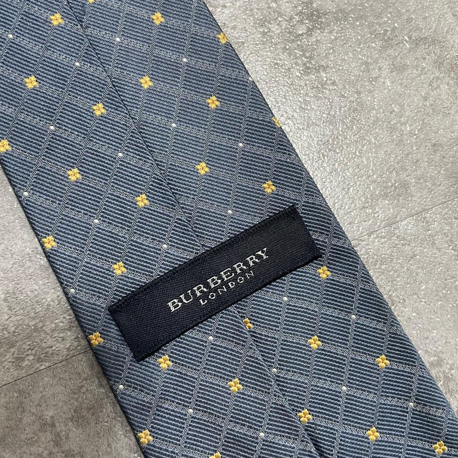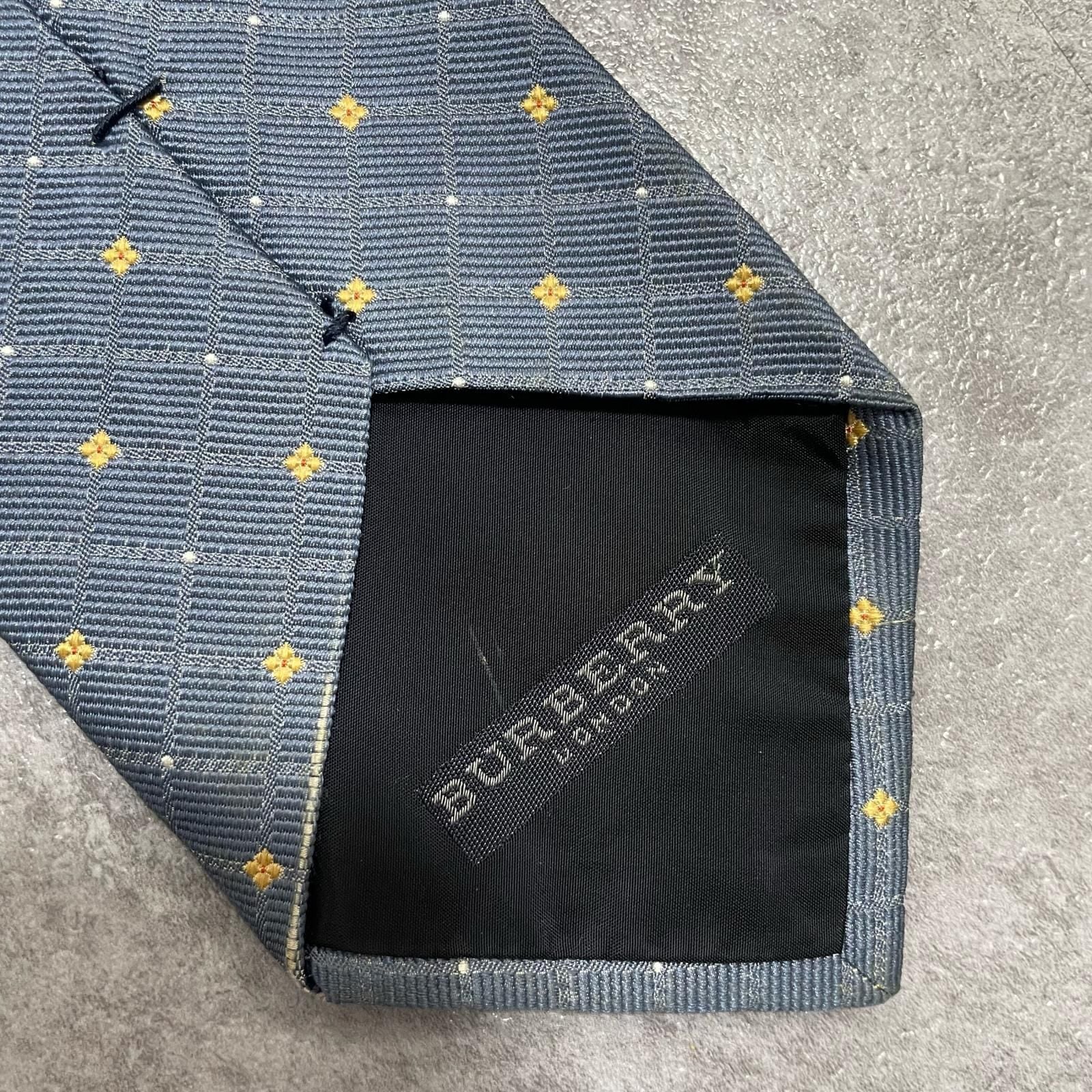 【BURBERRY】バーバリー 小紋柄ネクタイ シルク100% メンズ 日本製 グレー 灰色 イエロー 黄色 刺繍 格子柄 クラシックデザイン ビジネス向け ヴィンテージ