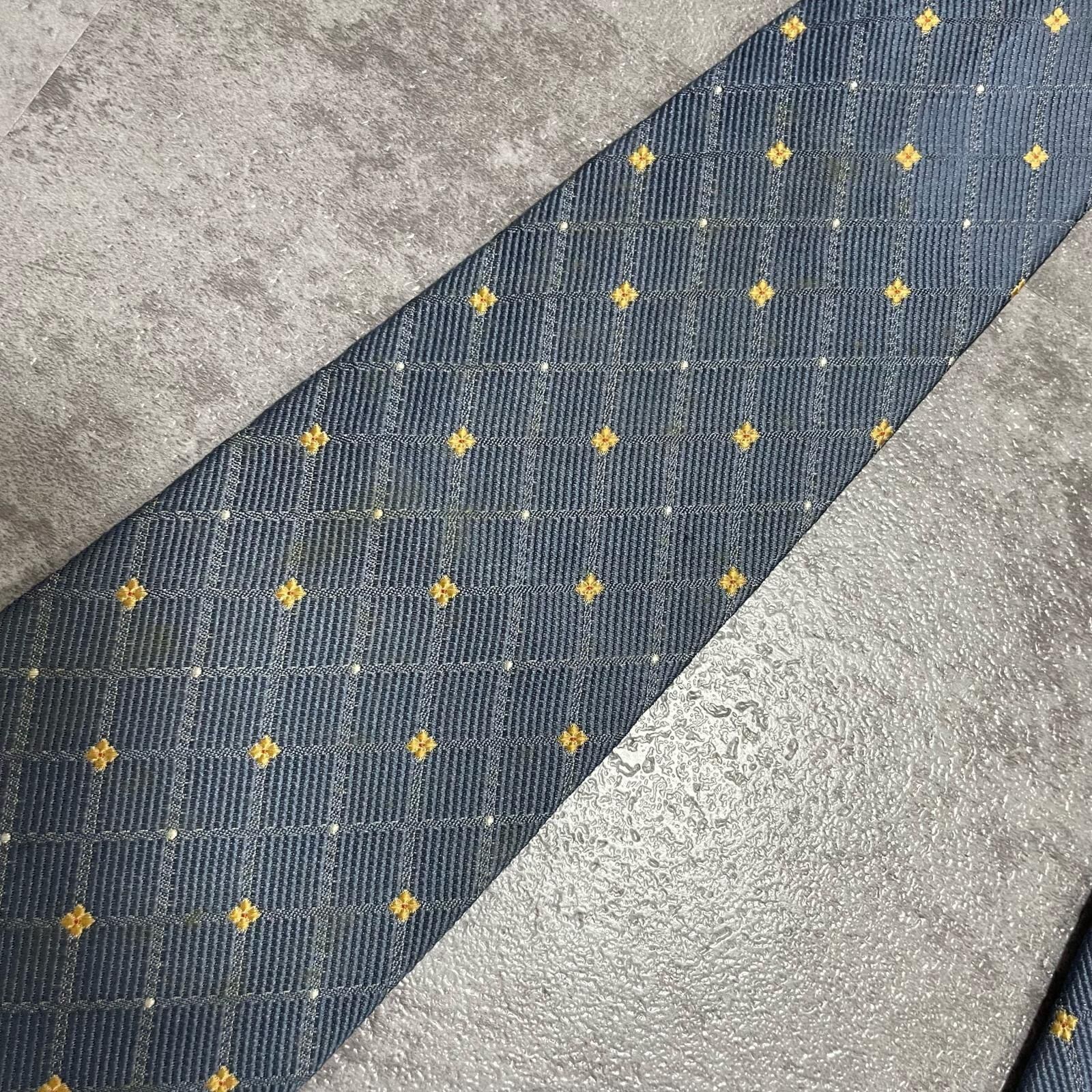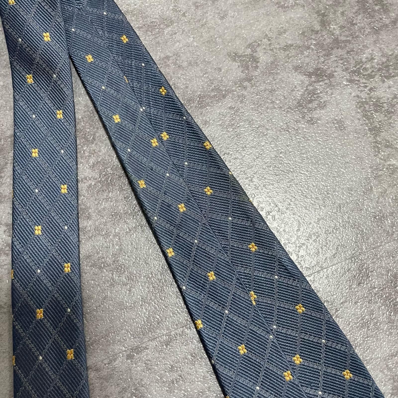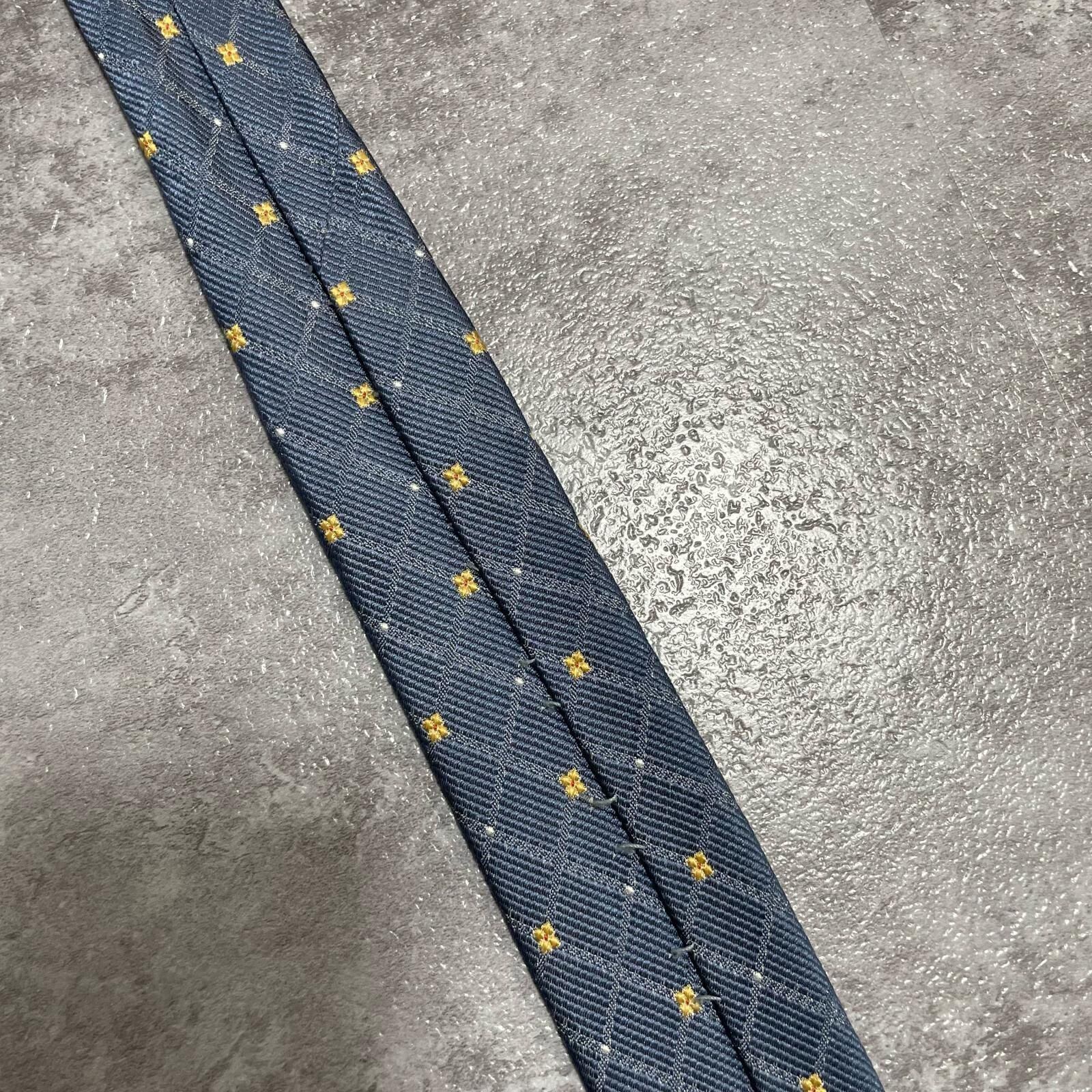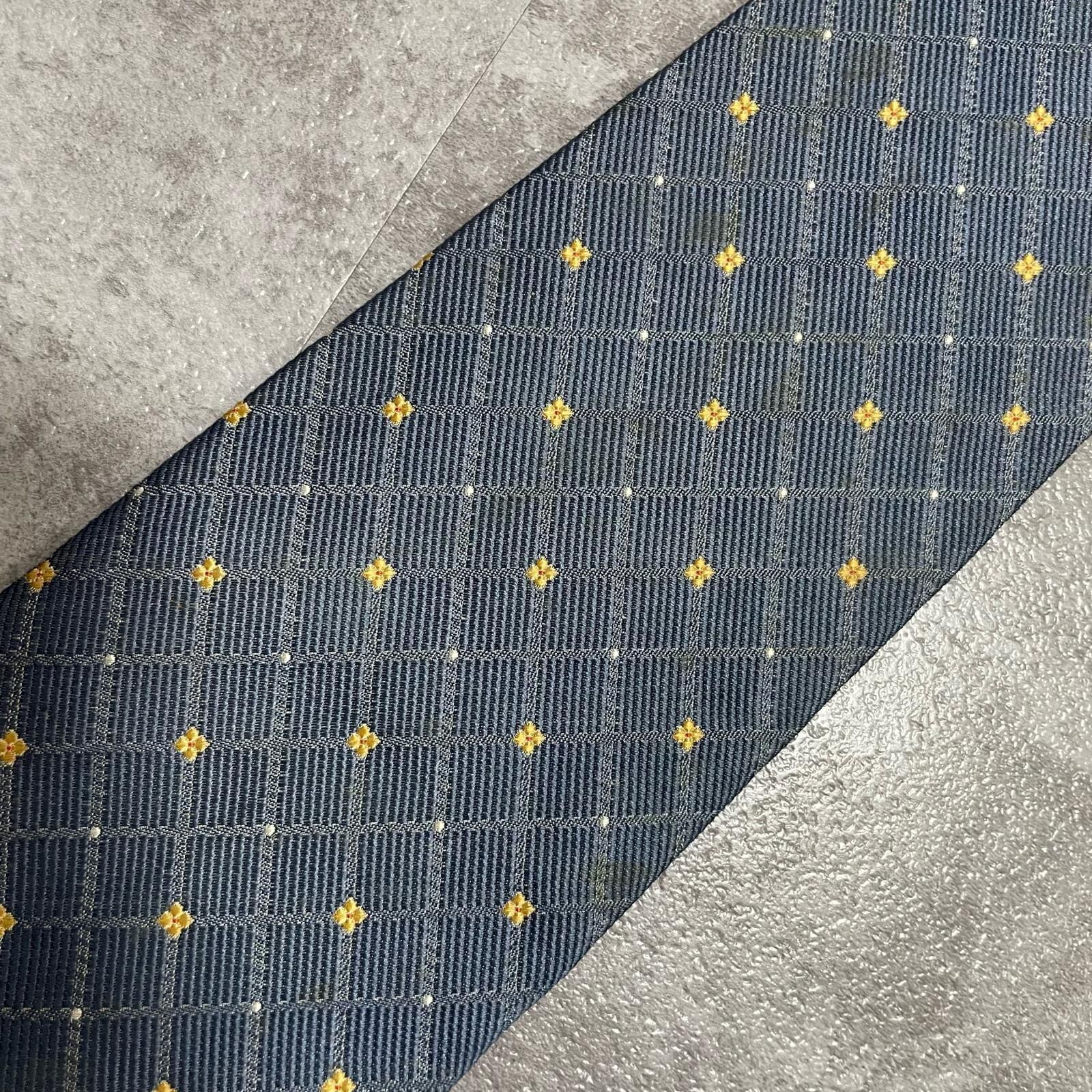 【BURBERRY】バーバリー 小紋柄ネクタイ シルク100% メンズ 日本製 グレー 灰色 イエロー 黄色 刺繍 格子柄 クラシックデザイン ビジネス向け ヴィンテージ