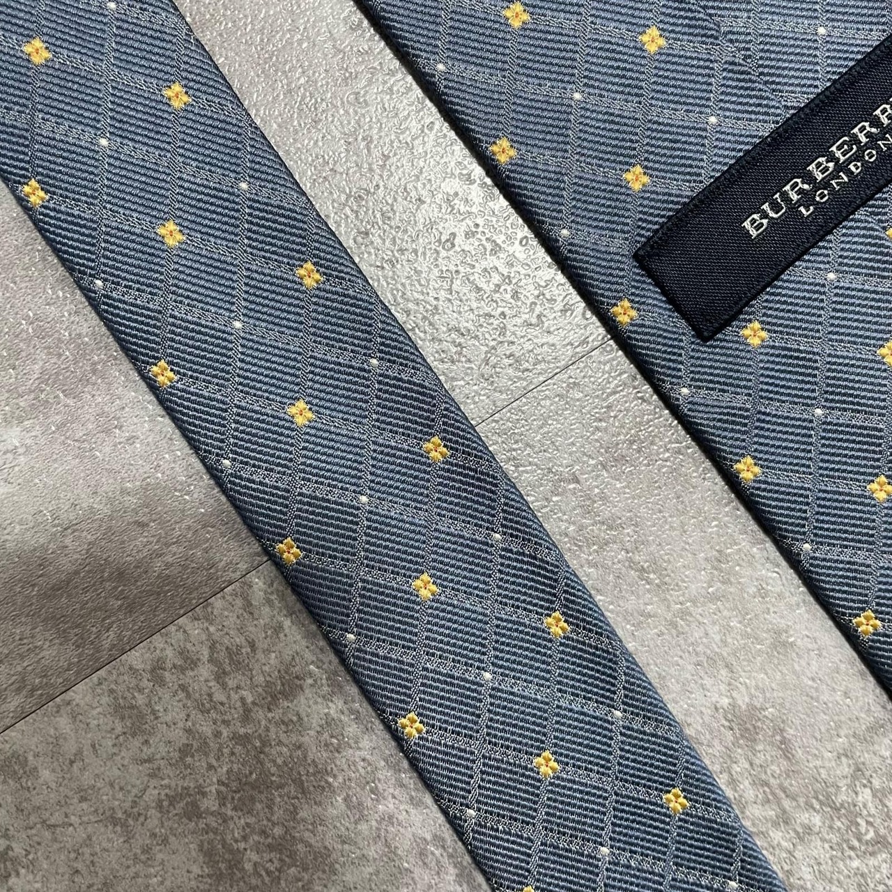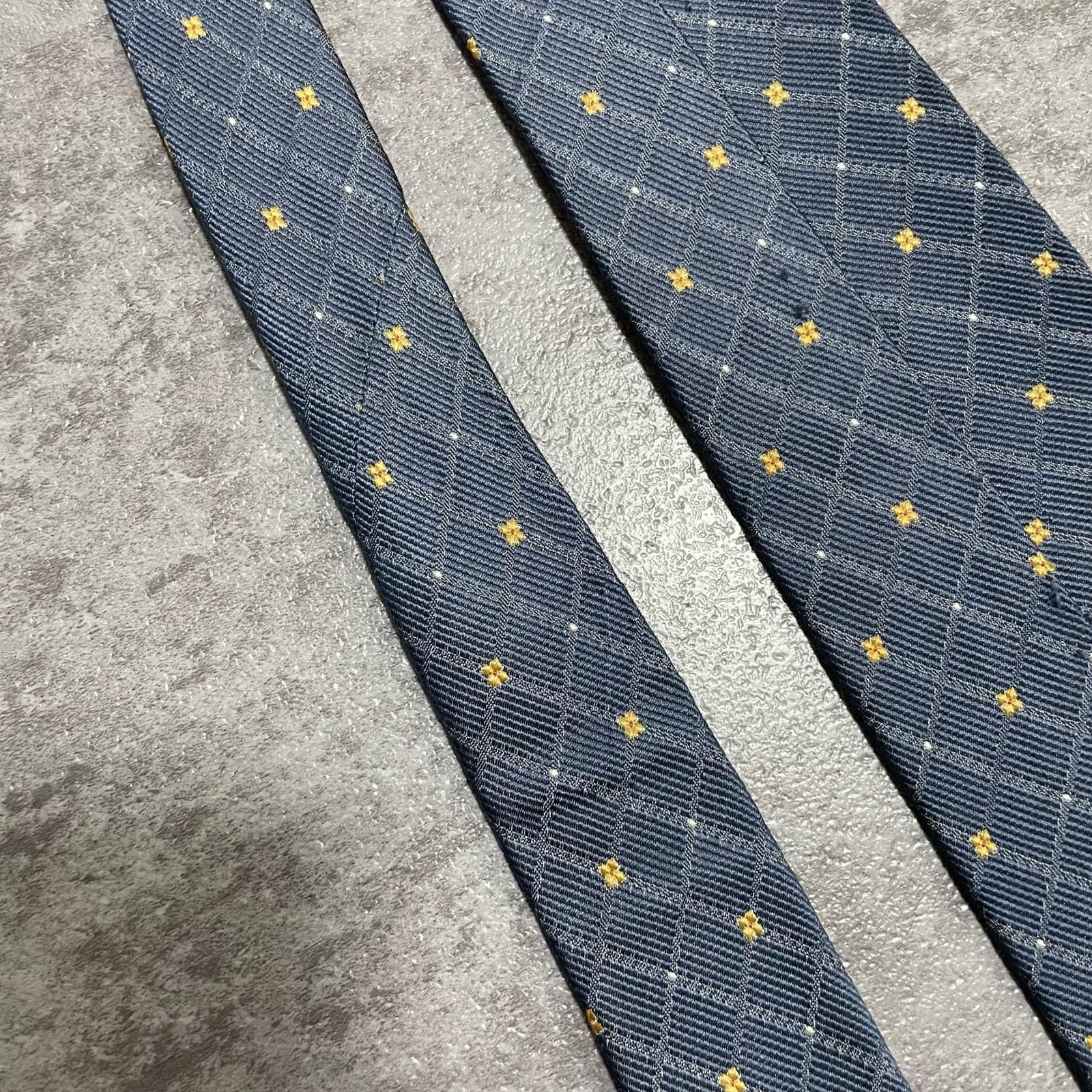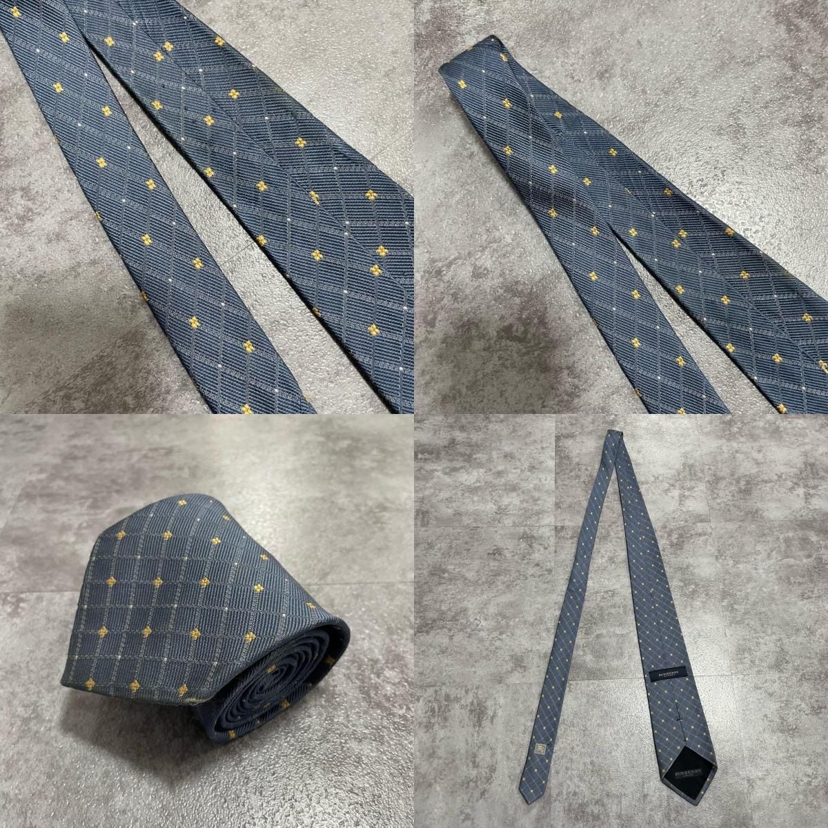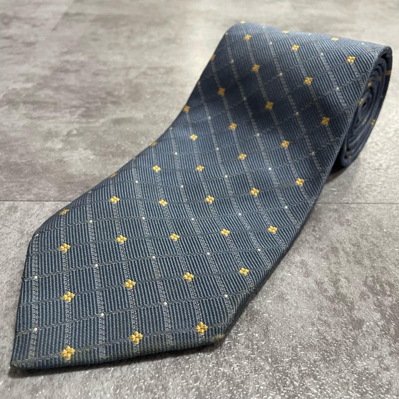 【BURBERRY】バーバリー 小紋柄ネクタイ シルク100% メンズ 日本製 グレー 灰色 イエロー 黄色 刺繍 格子柄 クラシックデザイン ビジネス向け ヴィンテージ