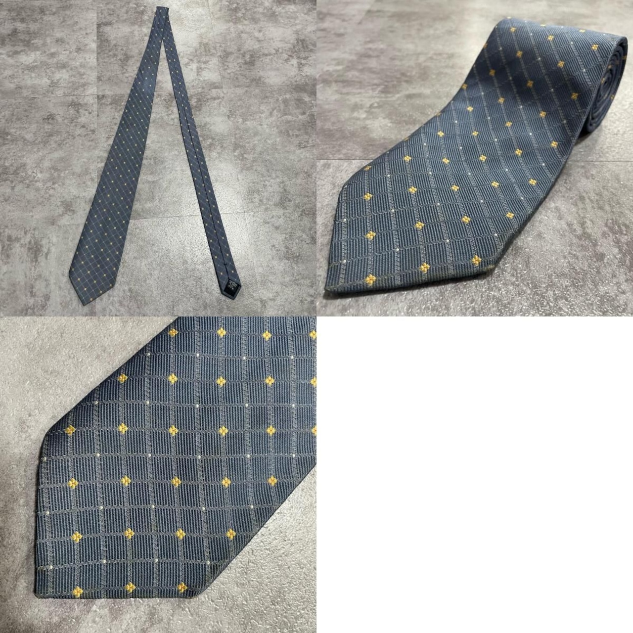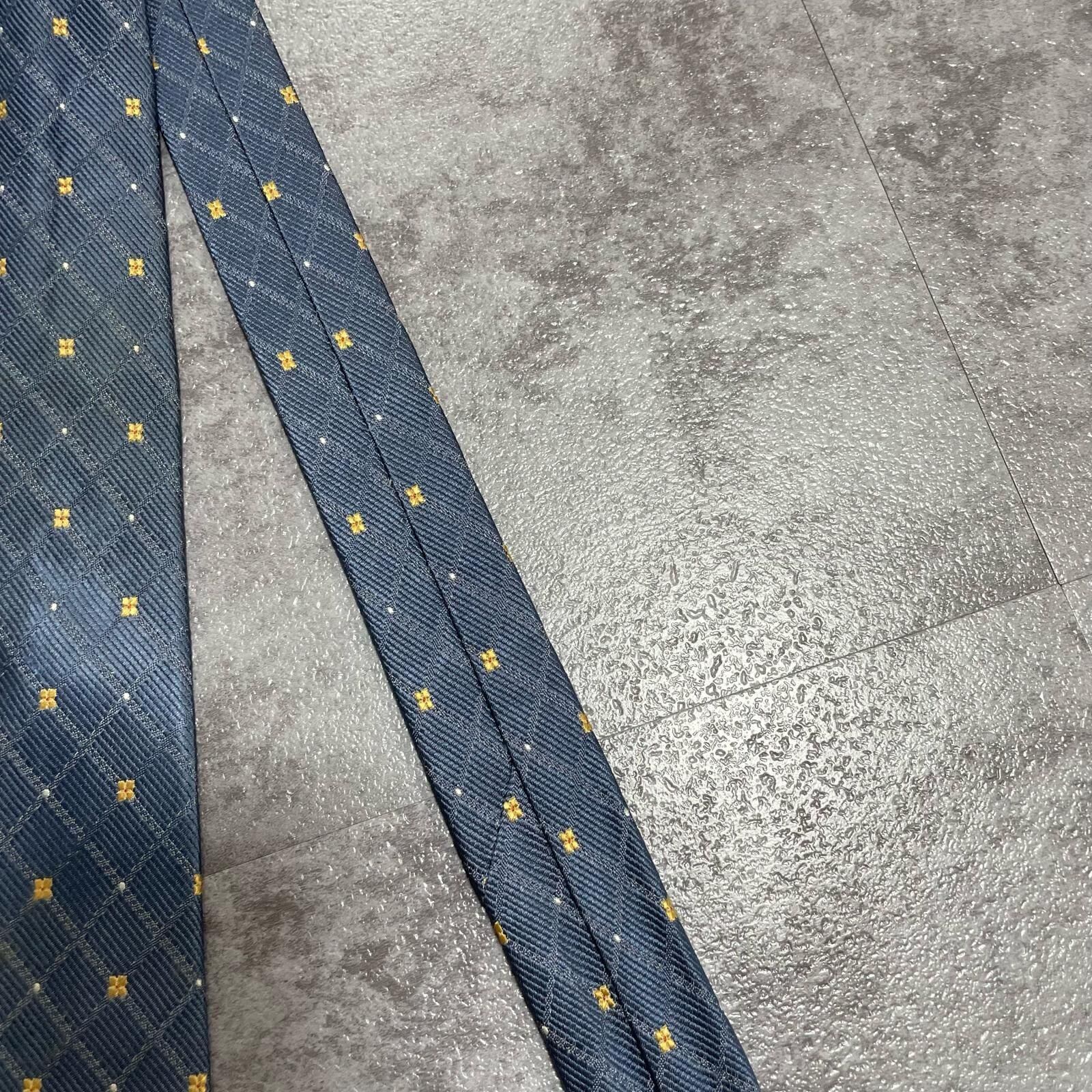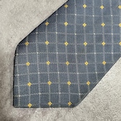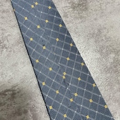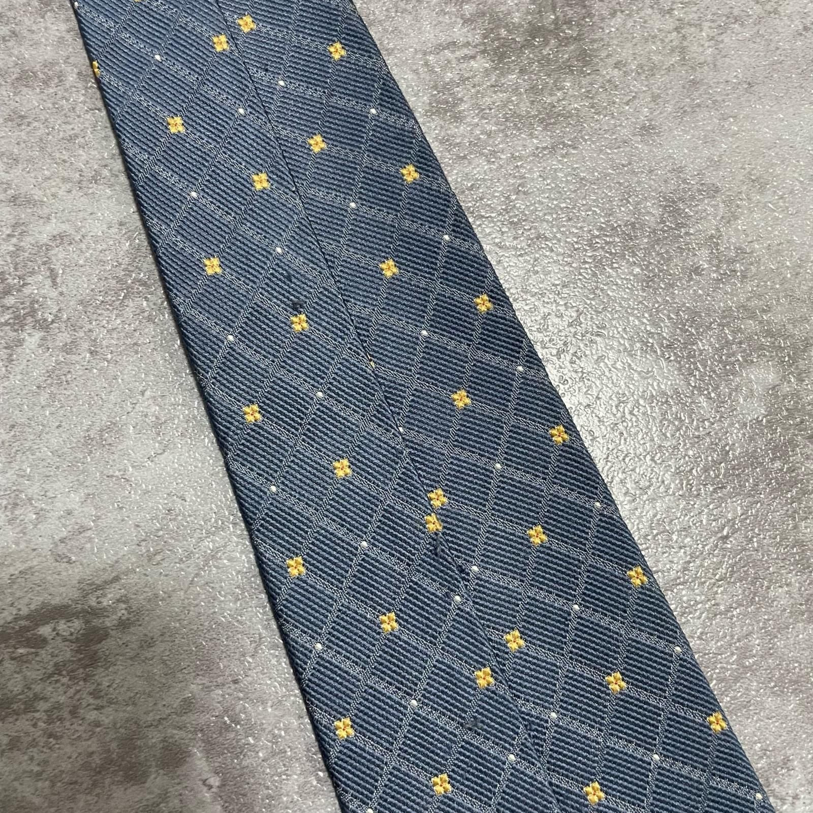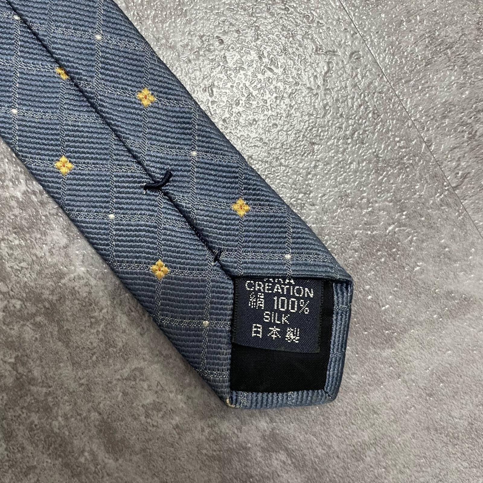 【BURBERRY】バーバリー 小紋柄ネクタイ シルク100% メンズ 日本製 グレー 灰色 イエロー 黄色 刺繍 格子柄 クラシックデザイン ビジネス向け ヴィンテージ