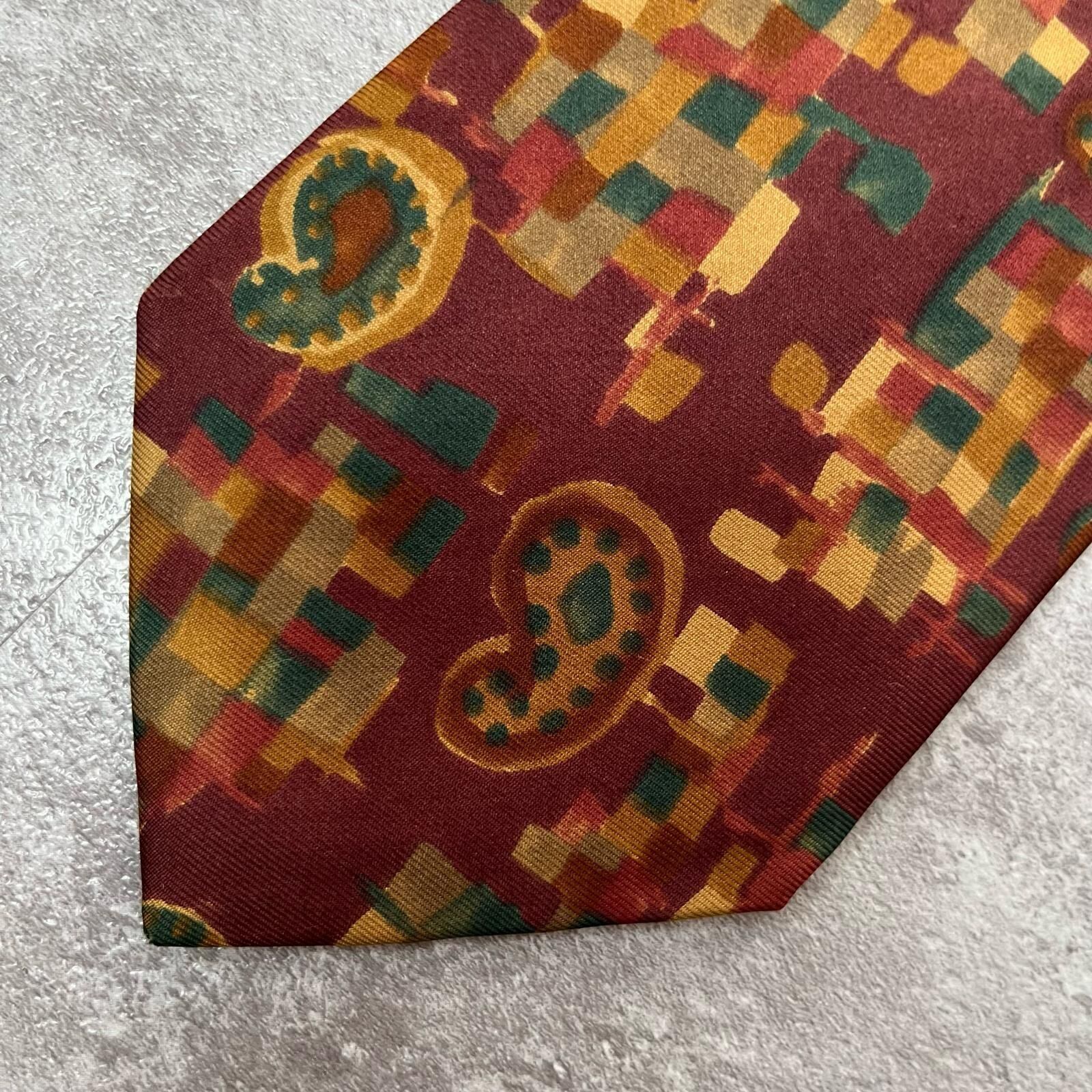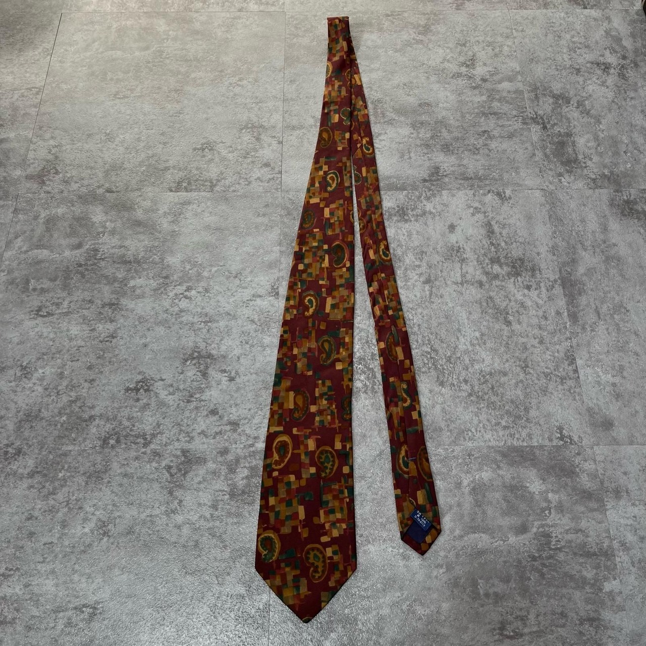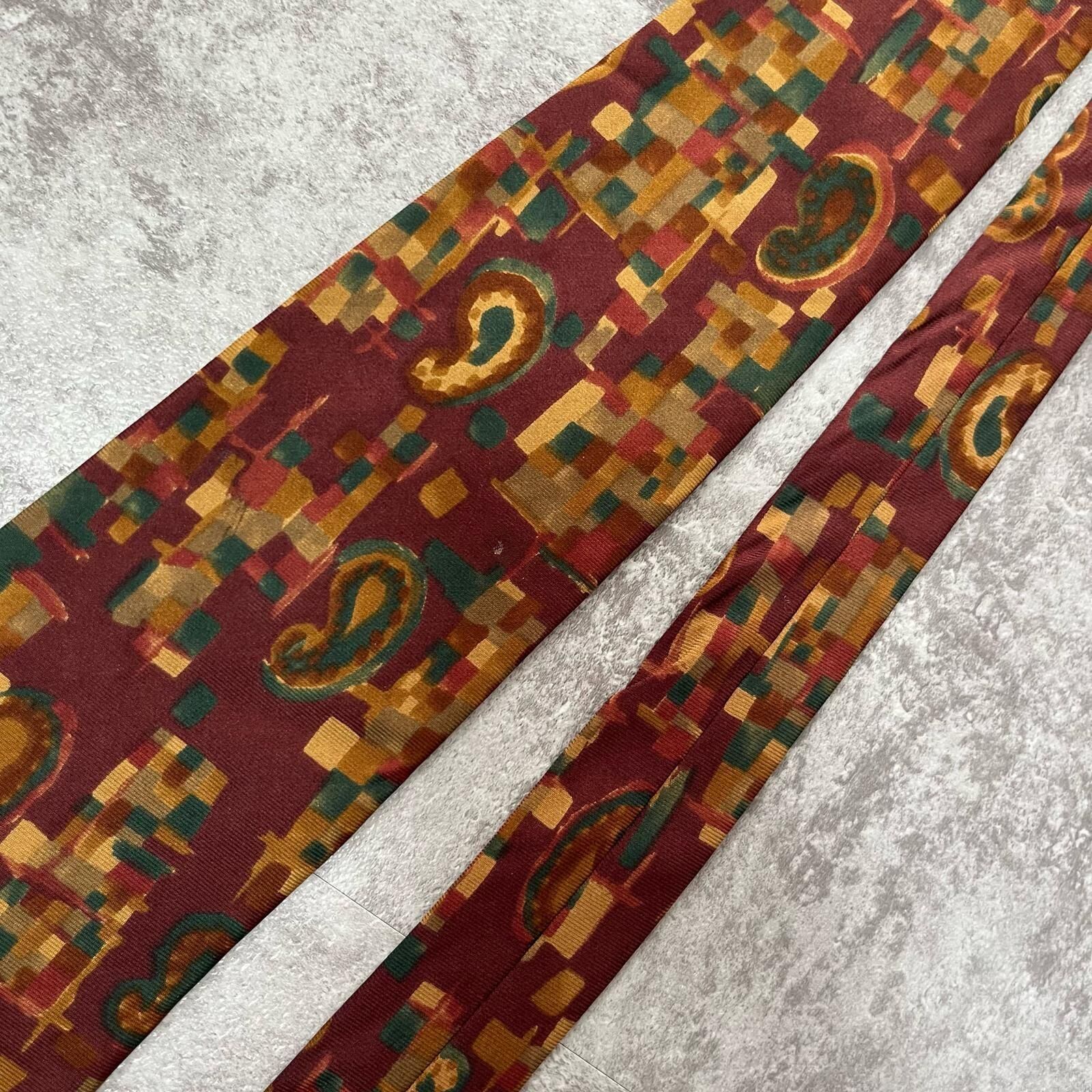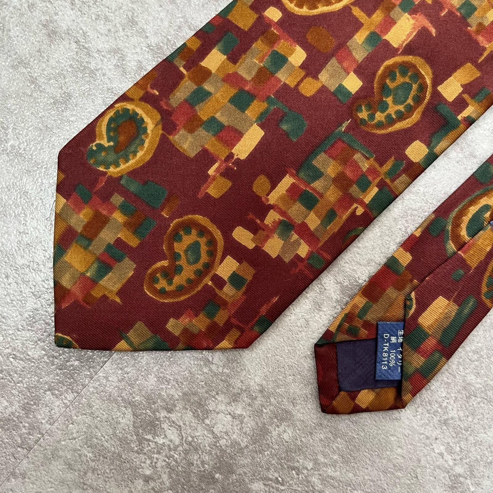 【アート柄×ペイズリー】ネクタイ シルク100% メンズ イタリア製 ブラウン 茶色 レッド 赤 幾何学 ボタニカル 植物柄