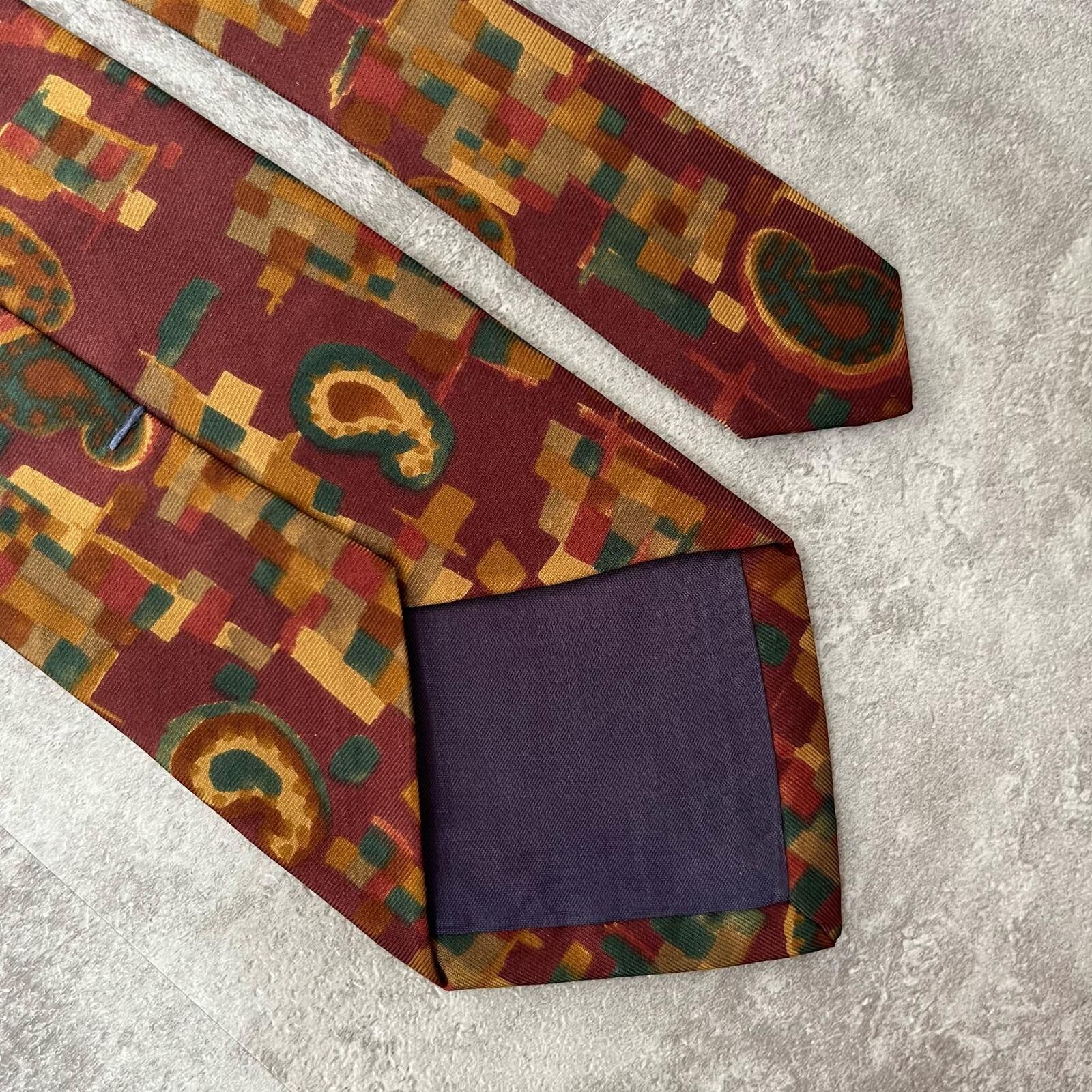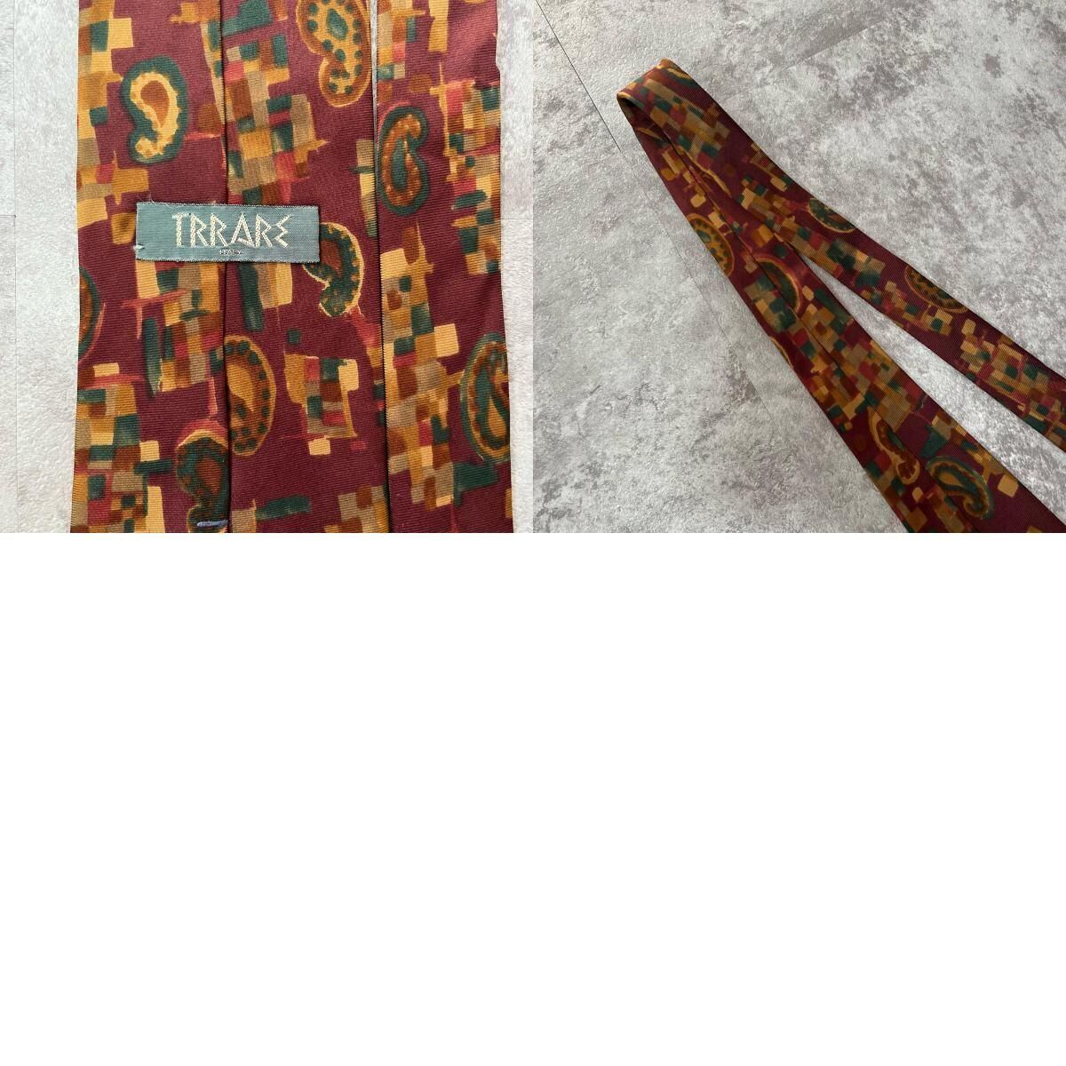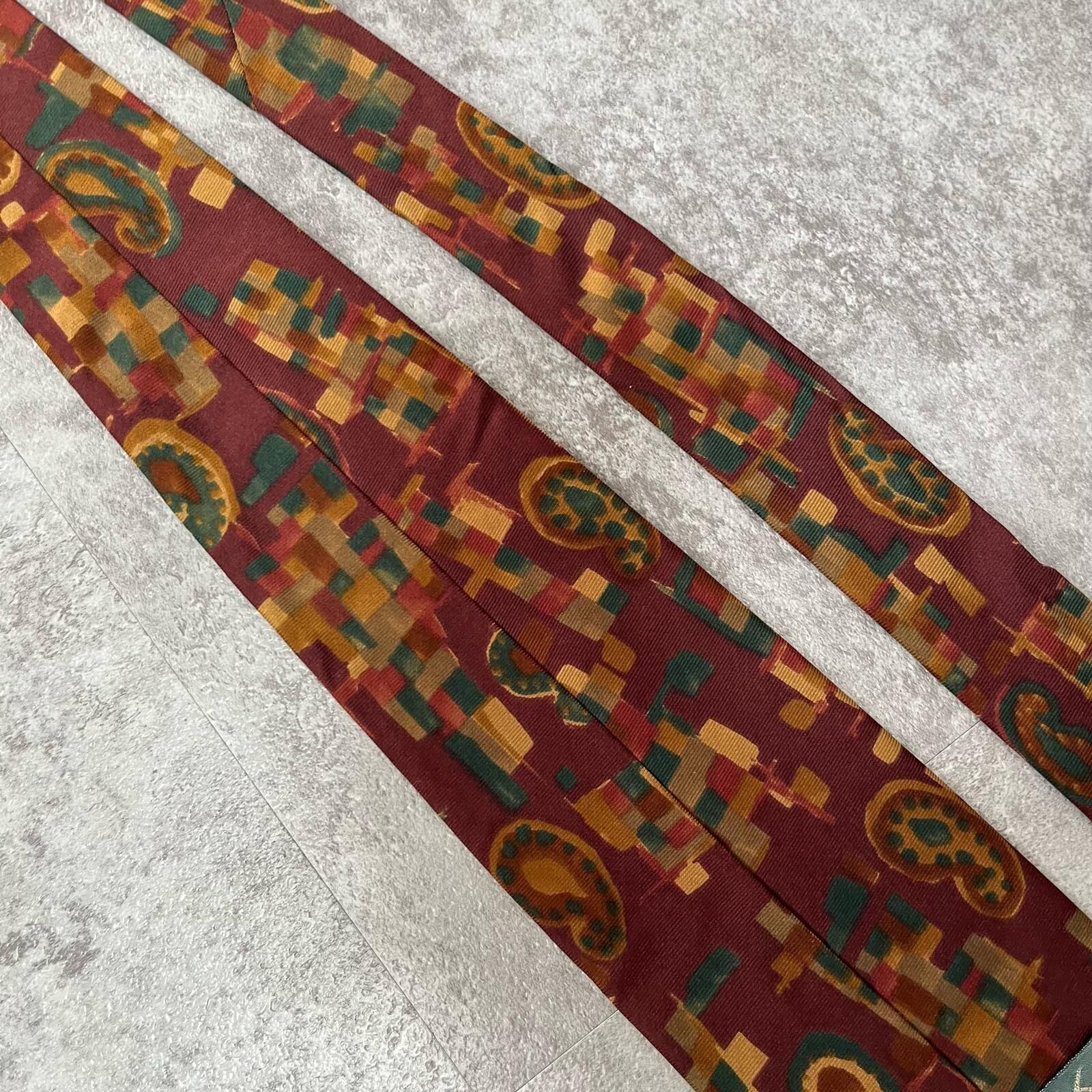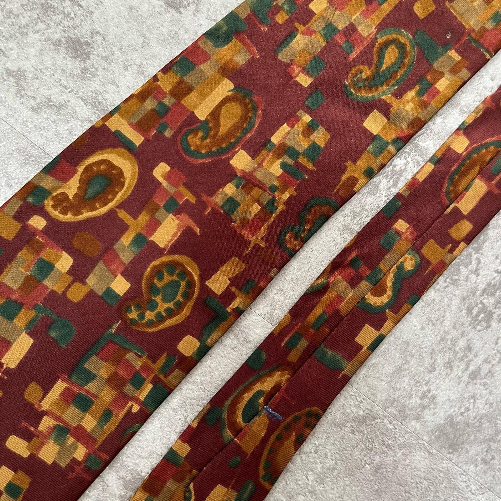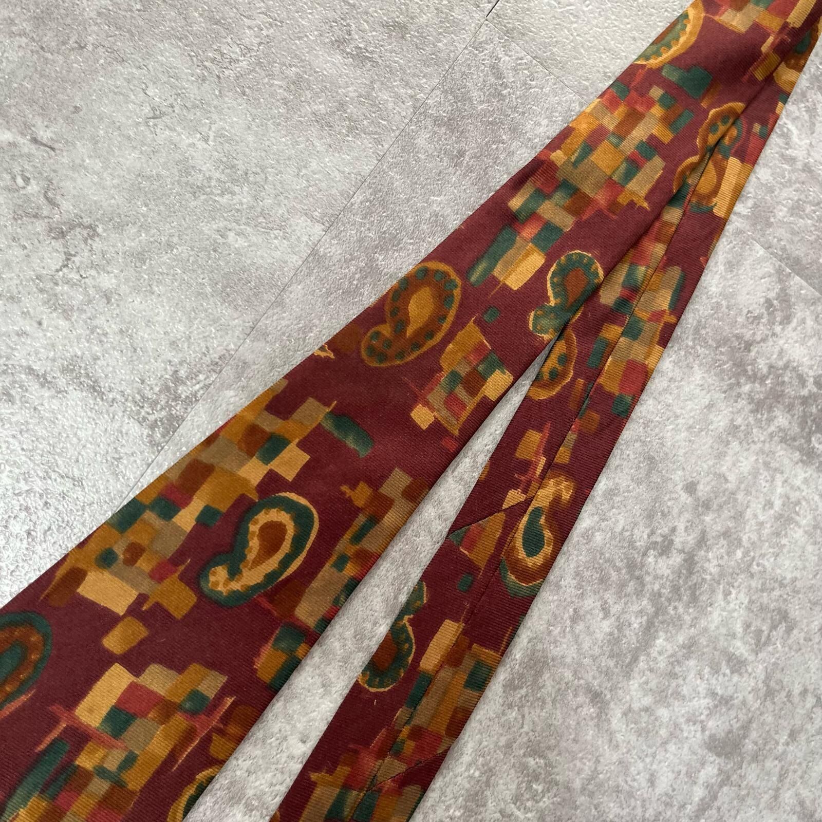 【アート柄×ペイズリー】ネクタイ シルク100% メンズ イタリア製 ブラウン 茶色 レッド 赤 幾何学 ボタニカル 植物柄