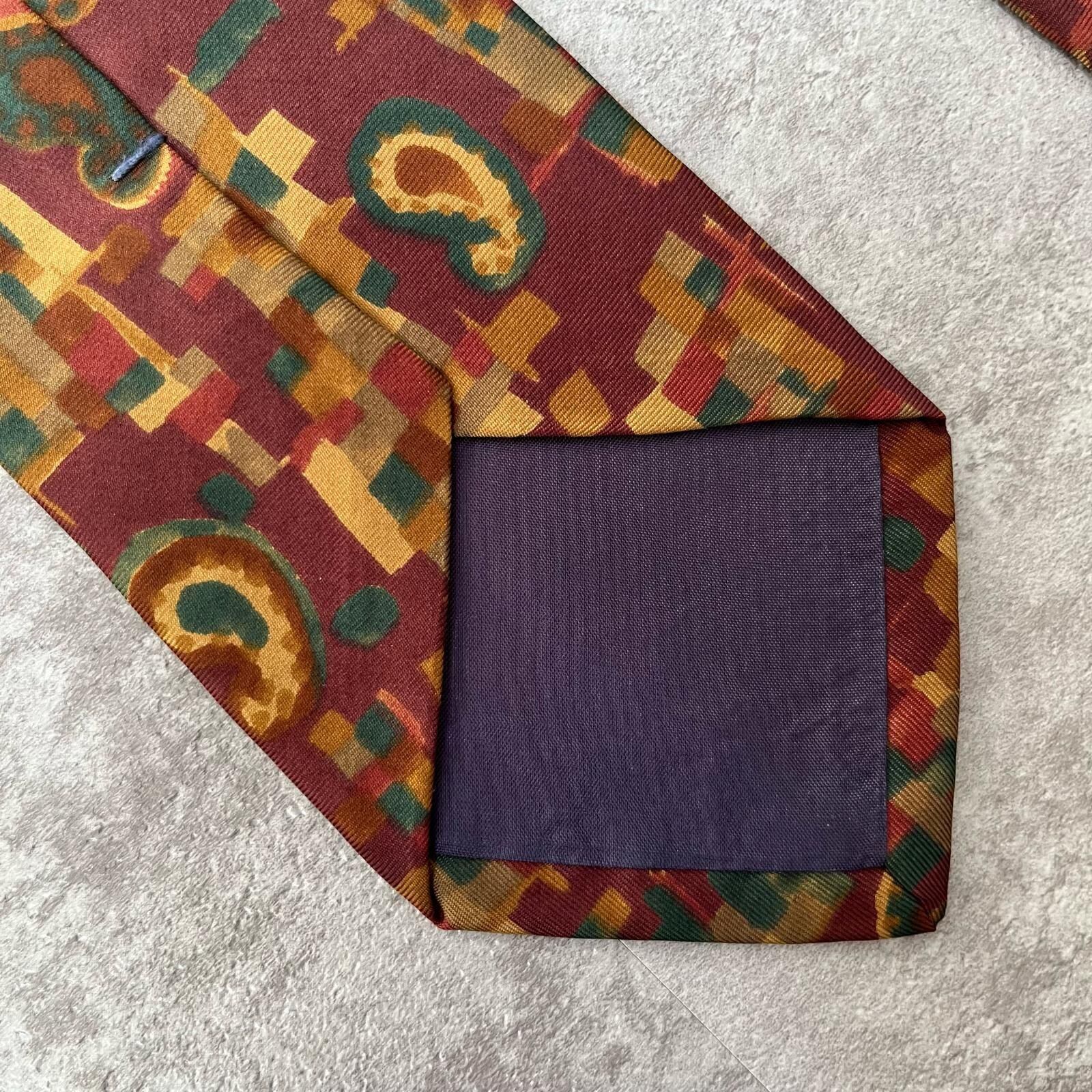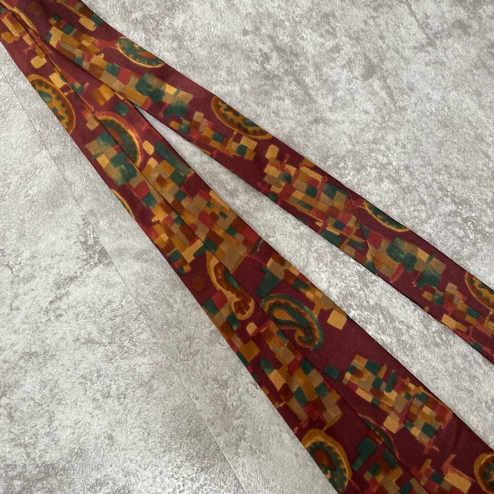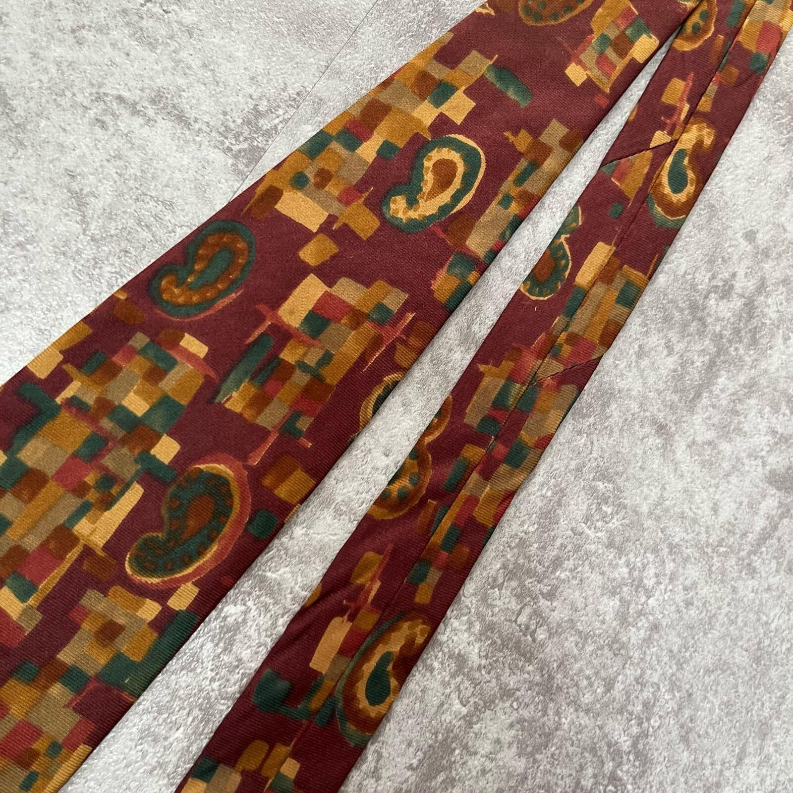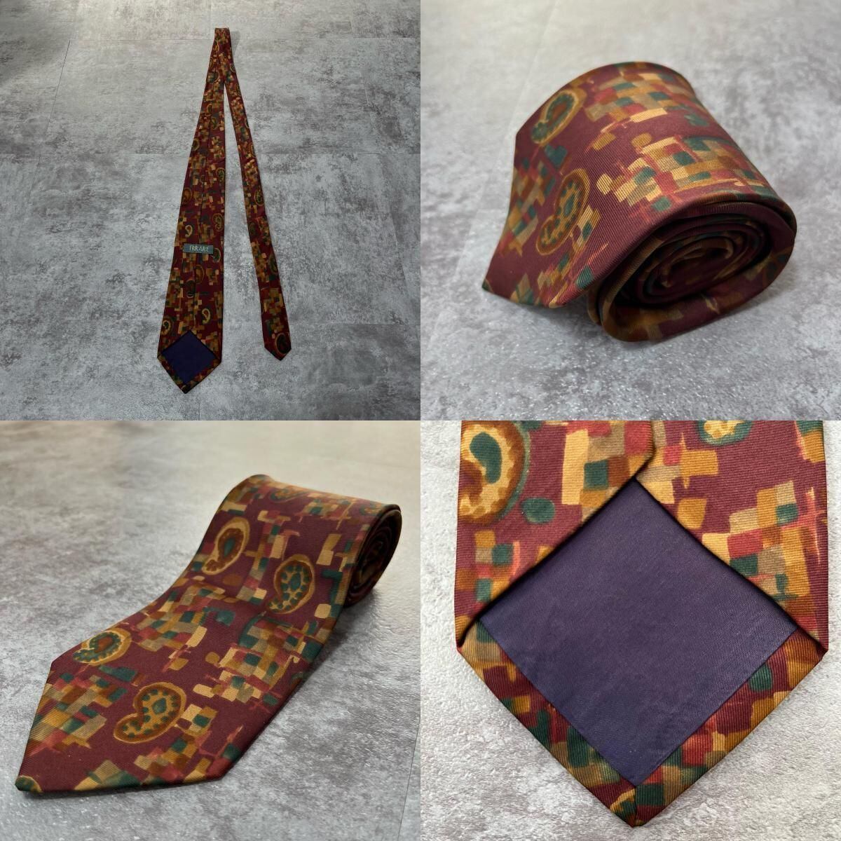 【アート柄×ペイズリー】ネクタイ シルク100% メンズ イタリア製 ブラウン 茶色 レッド 赤 幾何学 ボタニカル 植物柄