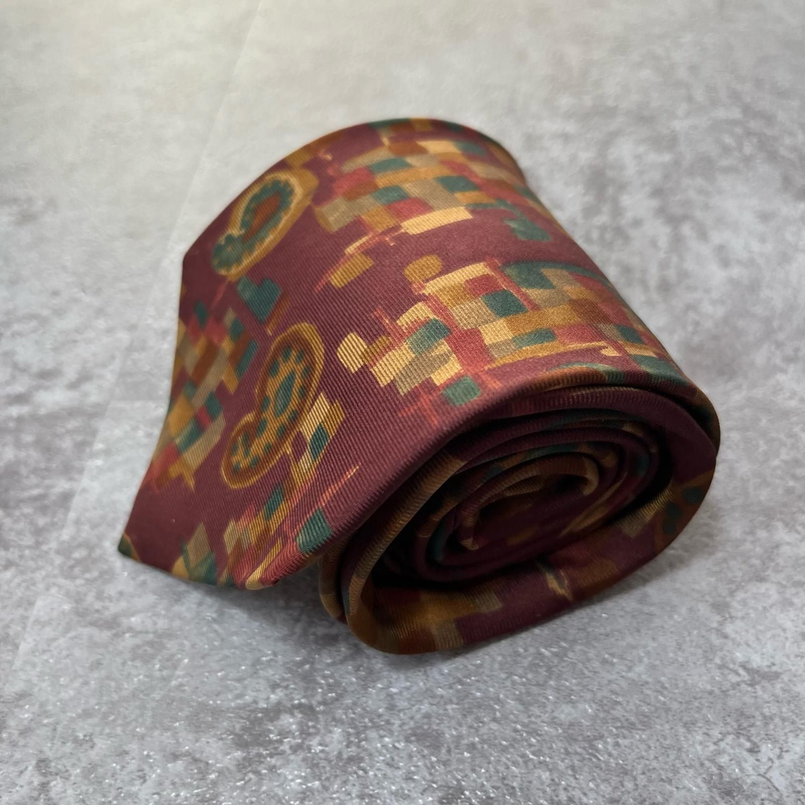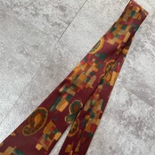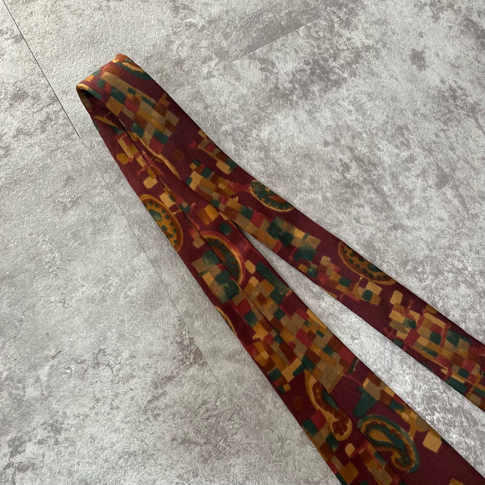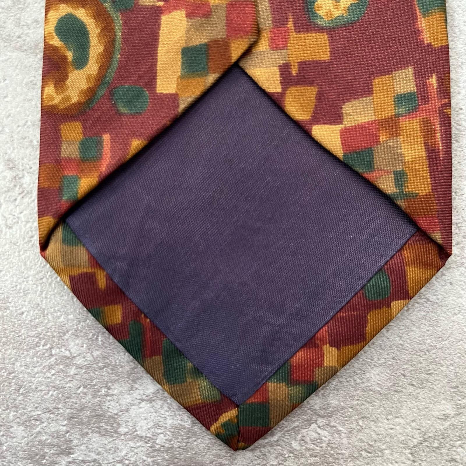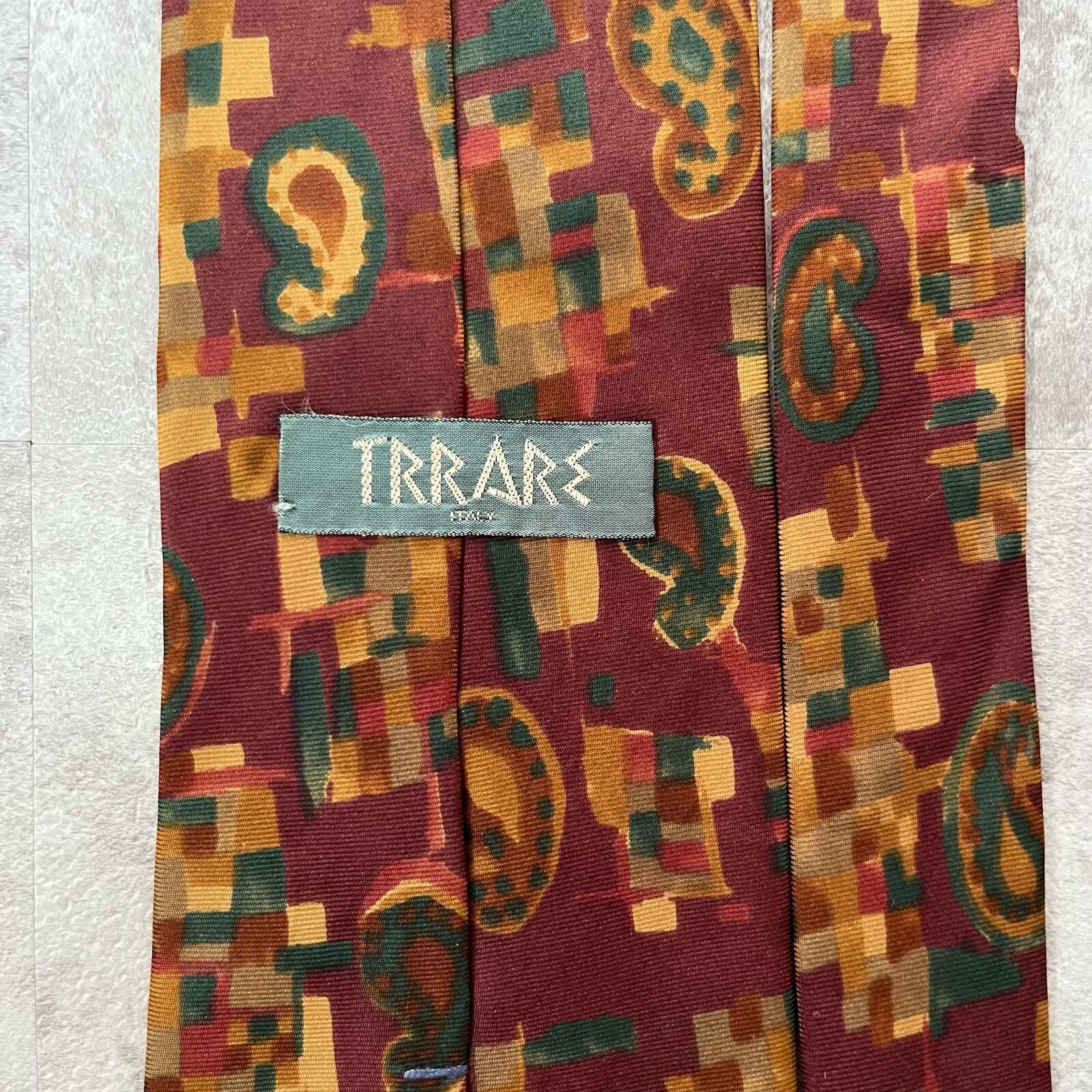 【アート柄×ペイズリー】ネクタイ シルク100% メンズ イタリア製 ブラウン 茶色 レッド 赤 幾何学 ボタニカル 植物柄