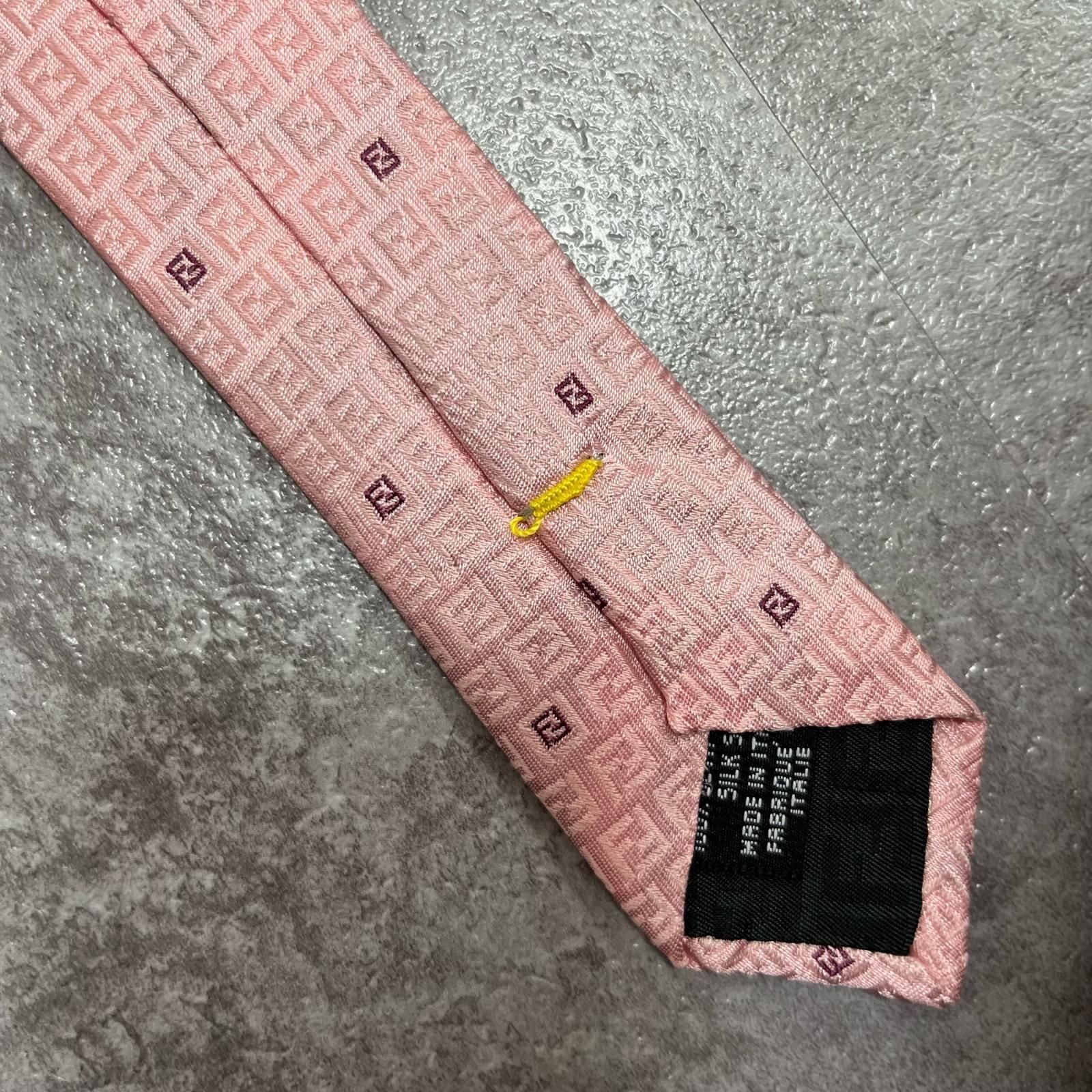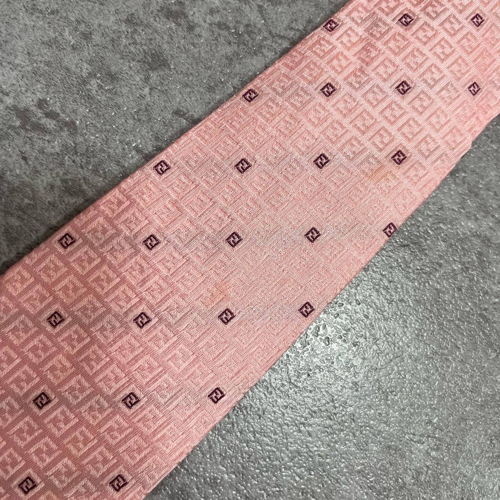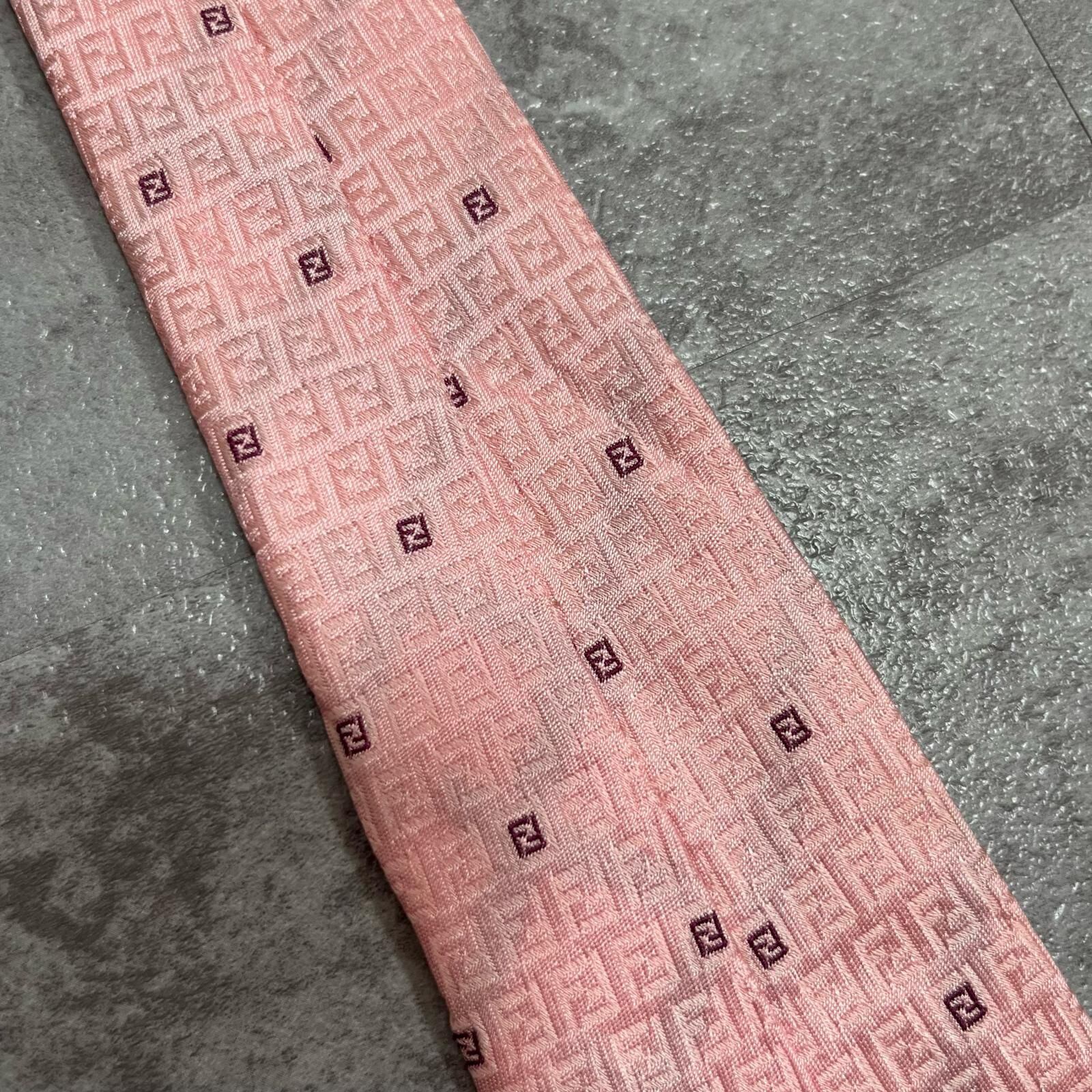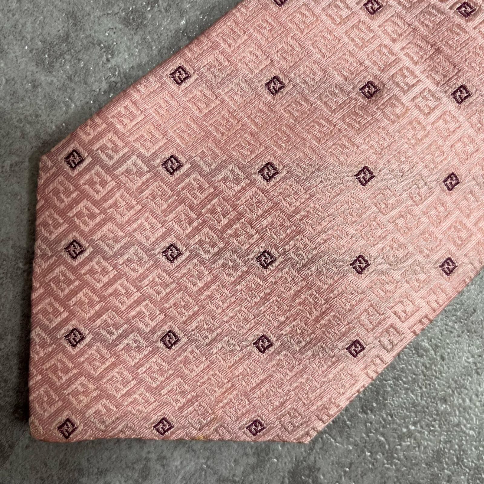 【FENDI】フェンディ ズッカ柄ネクタイ FFロゴ入り ズッカロゴモチーフ シルク100% メンズ イタリア製 ピンク 桃色 総柄 ビジネスネクタイ ブランドネクタイ フォーマルネクタイ ズッカデザイン