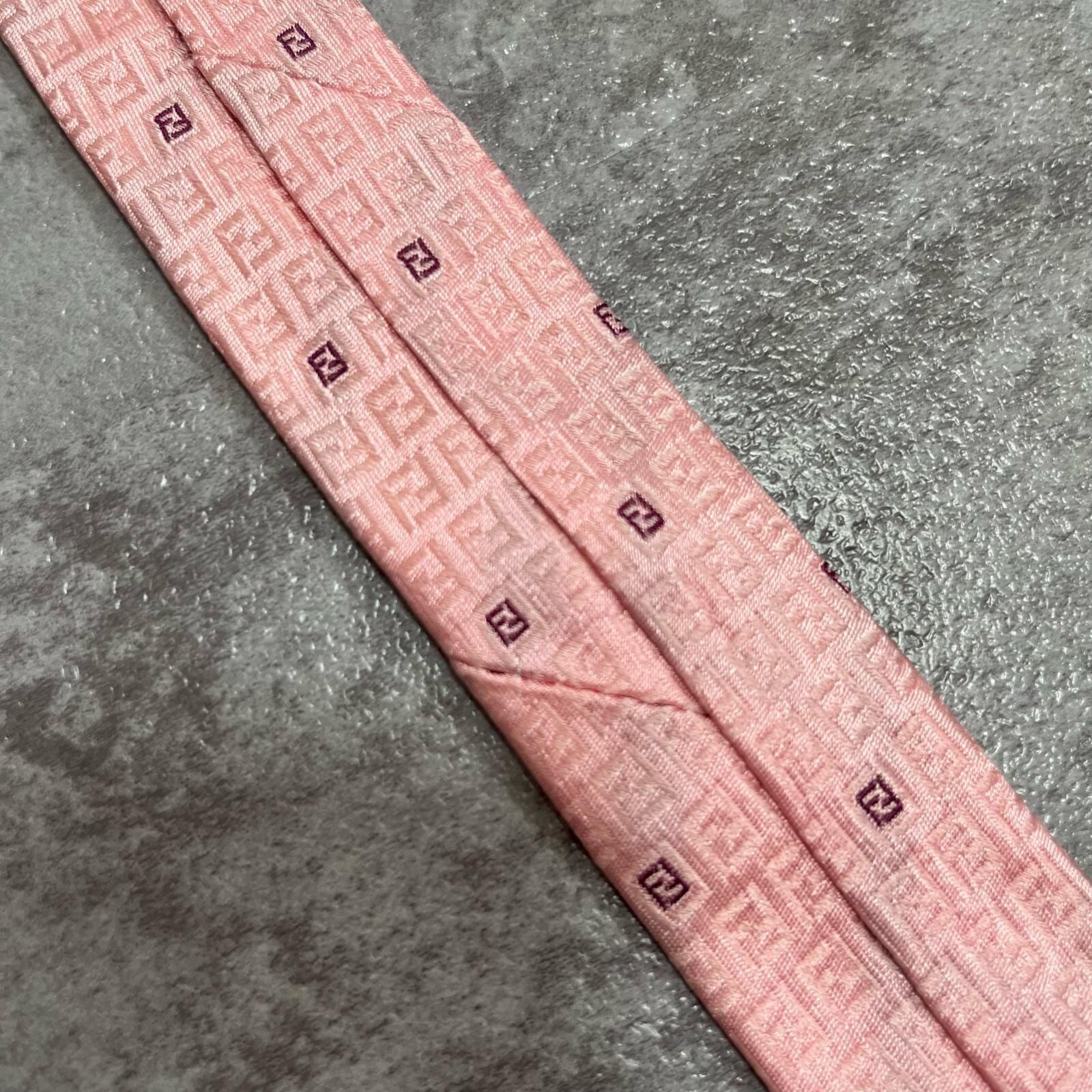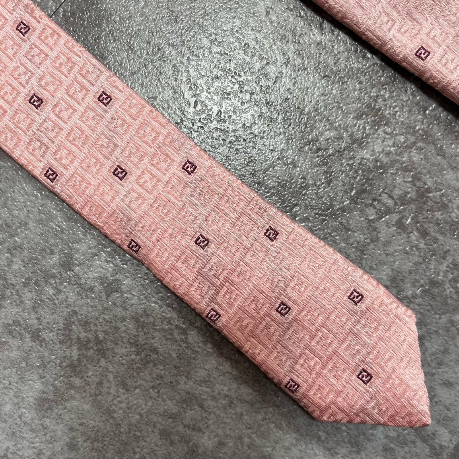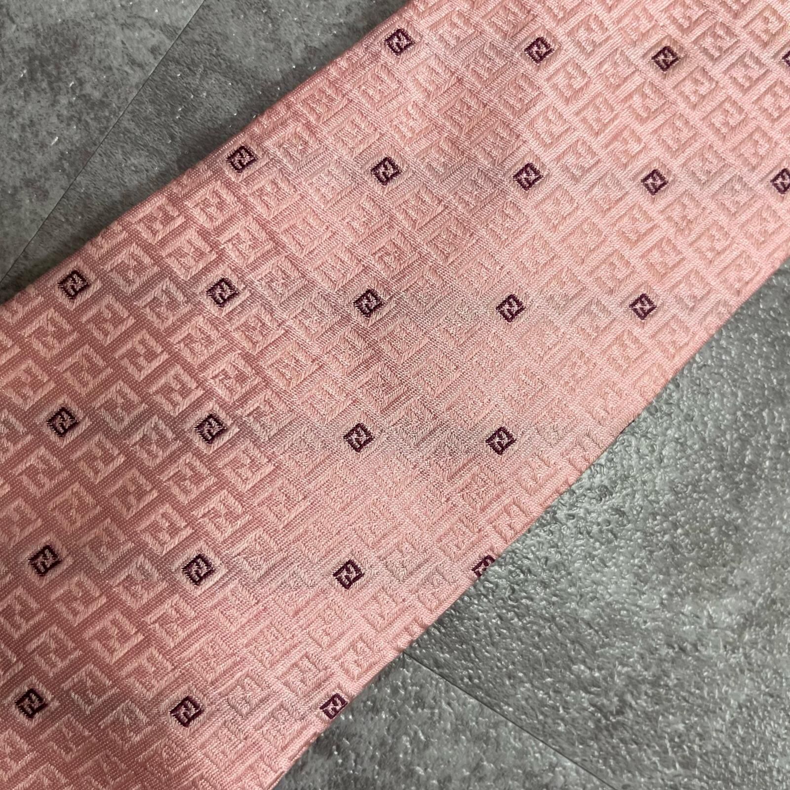 【FENDI】フェンディ ズッカ柄ネクタイ FFロゴ入り ズッカロゴモチーフ シルク100% メンズ イタリア製 ピンク 桃色 総柄 ビジネスネクタイ ブランドネクタイ フォーマルネクタイ ズッカデザイン