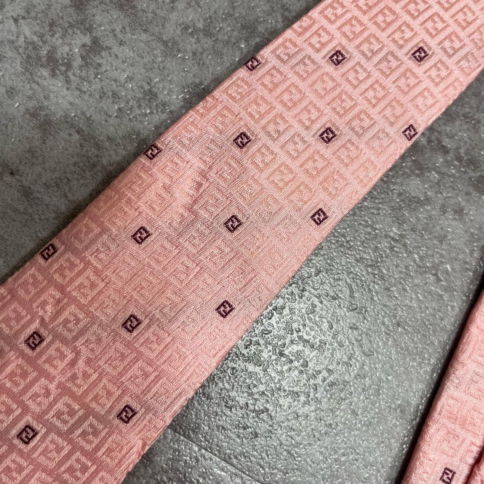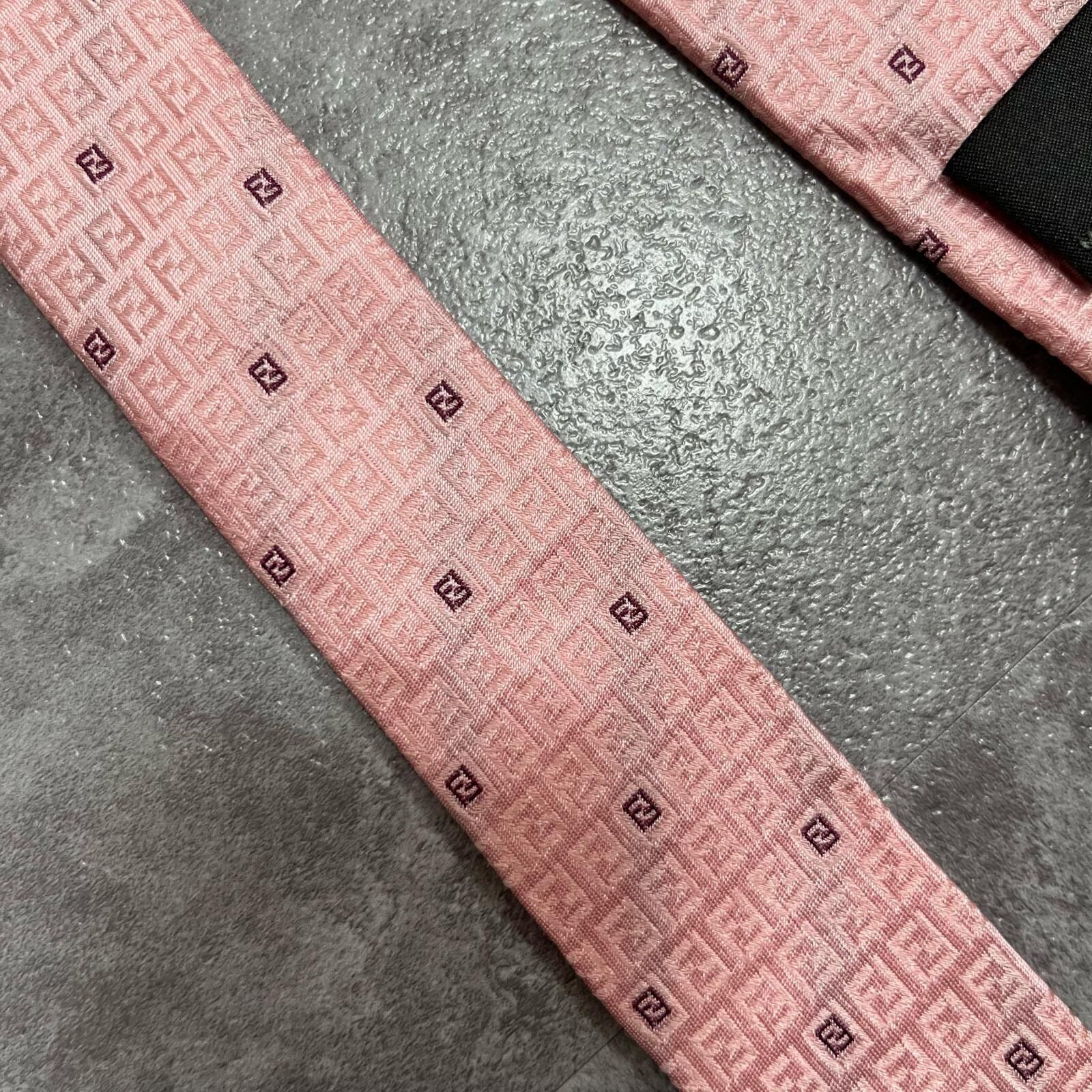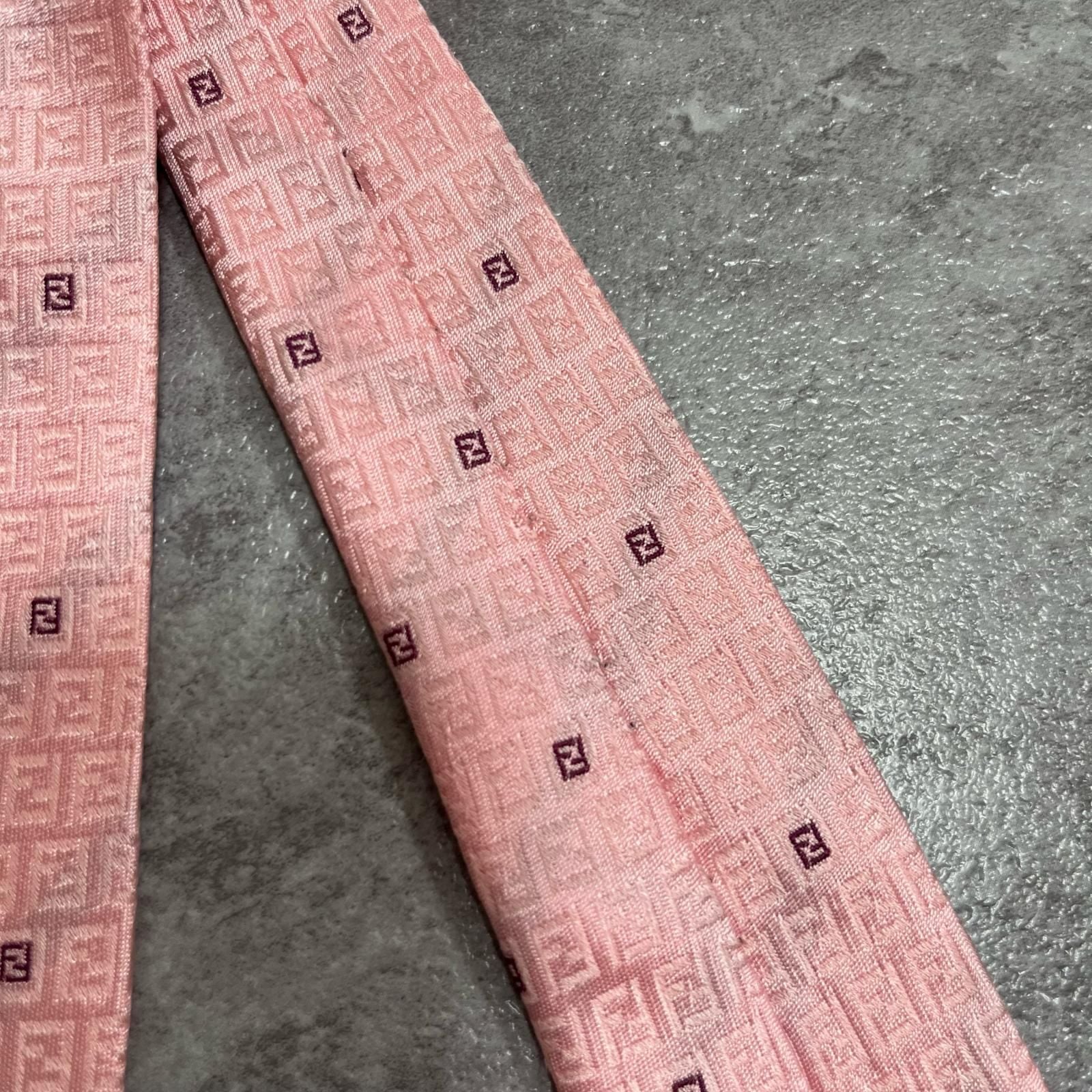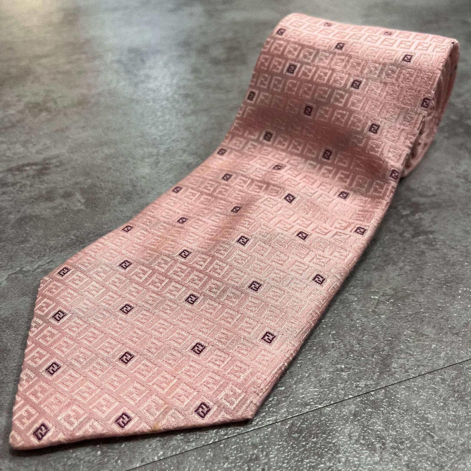 【FENDI】フェンディ ズッカ柄ネクタイ FFロゴ入り ズッカロゴモチーフ シルク100% メンズ イタリア製 ピンク 桃色 総柄 ビジネスネクタイ ブランドネクタイ フォーマルネクタイ ズッカデザイン