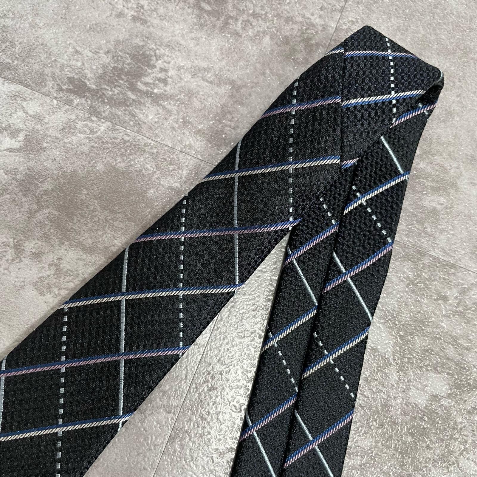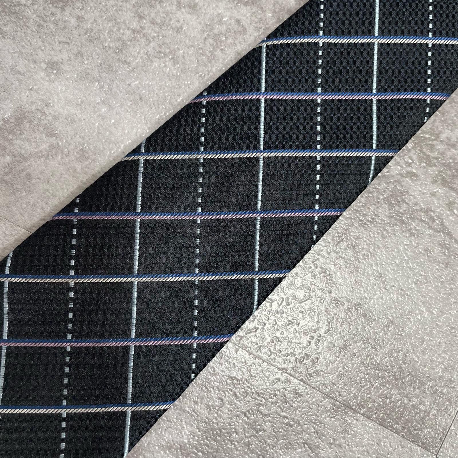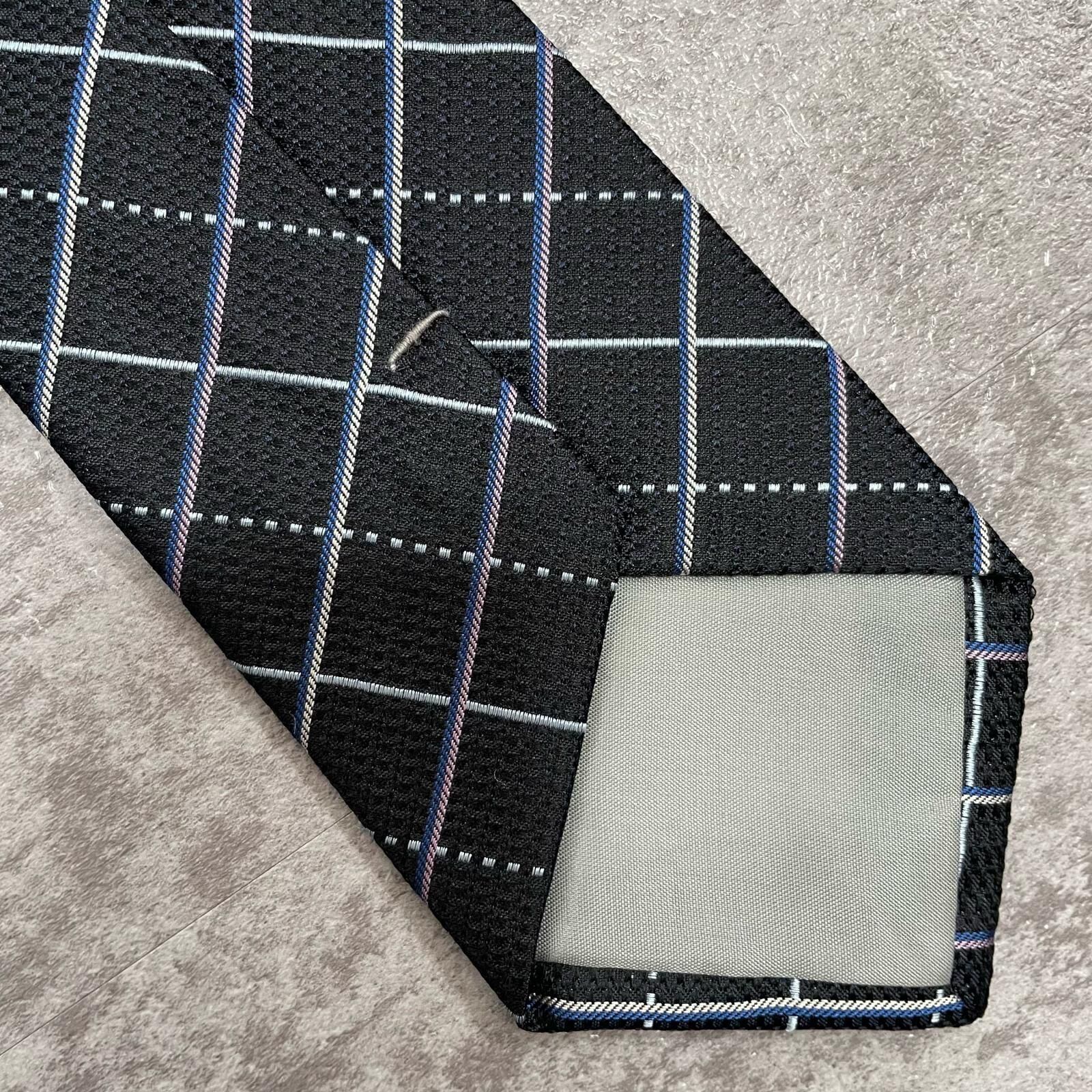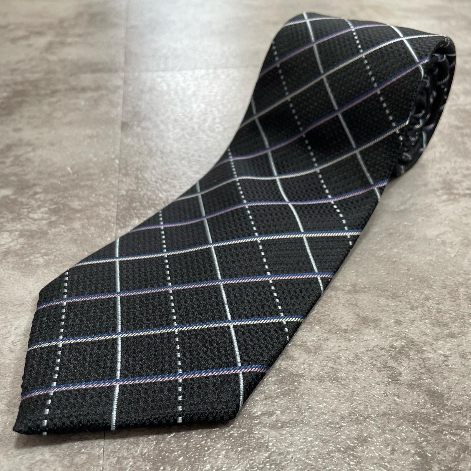【チェック】ウィンドウペンチェック柄ネクタイ シルク100% メンズ 日本製 ブラック 黒色 パープル ラベンダー ホワイト 白色 格子柄 ジャガード織 ビジネス向け ヴィンテージ