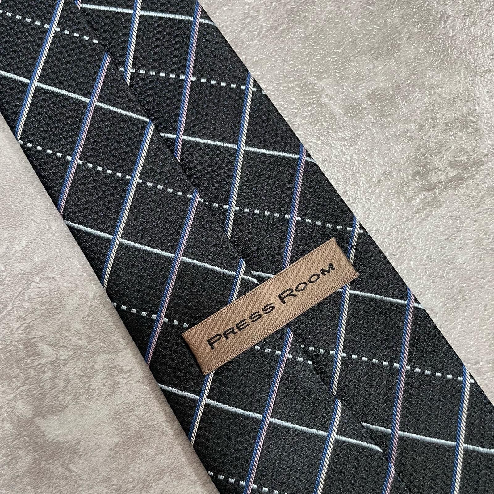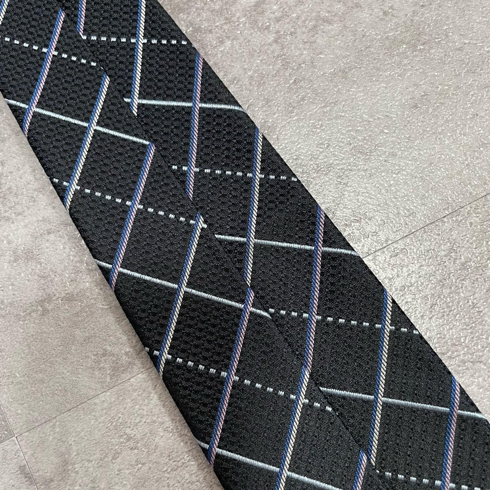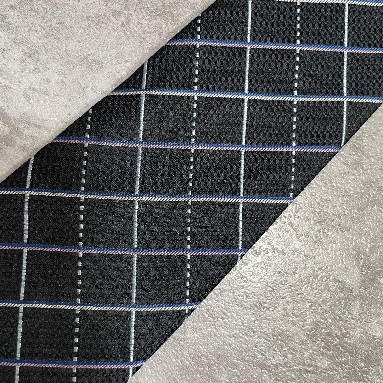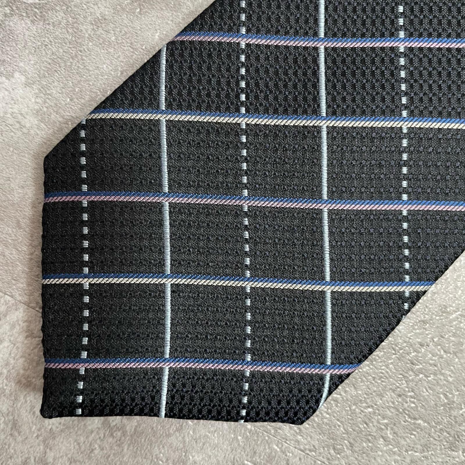 【チェック】ウィンドウペンチェック柄ネクタイ シルク100% メンズ 日本製 ブラック 黒色 パープル ラベンダー ホワイト 白色 格子柄 ジャガード織 ビジネス向け ヴィンテージ