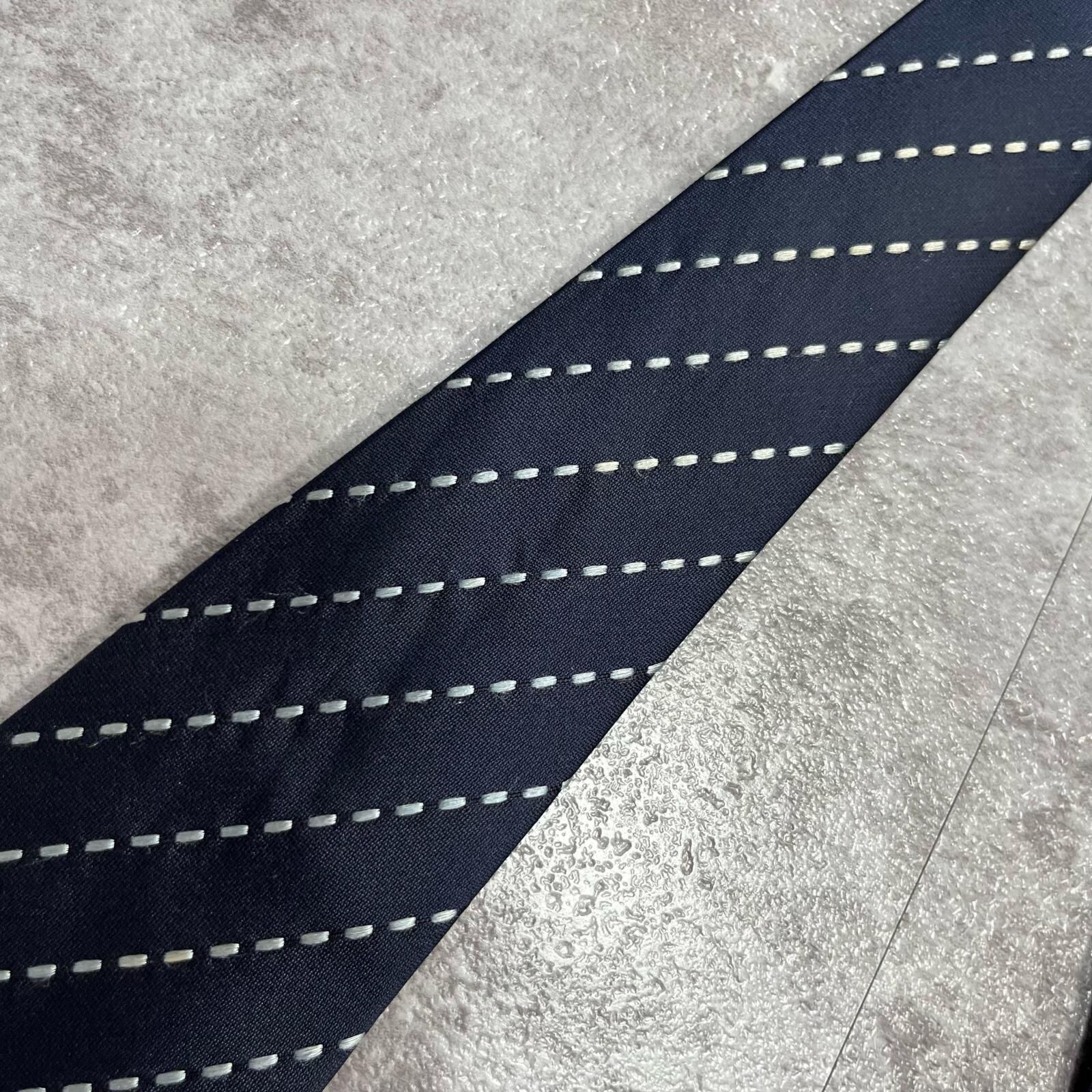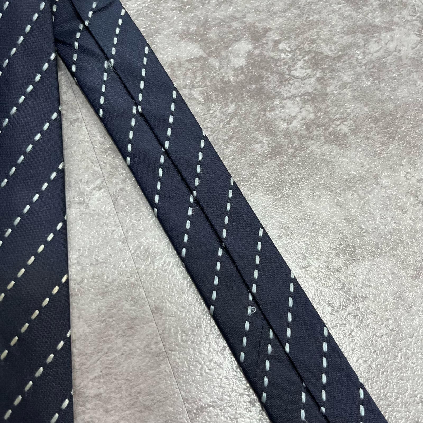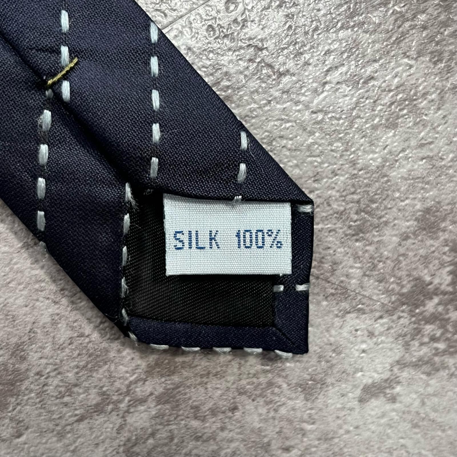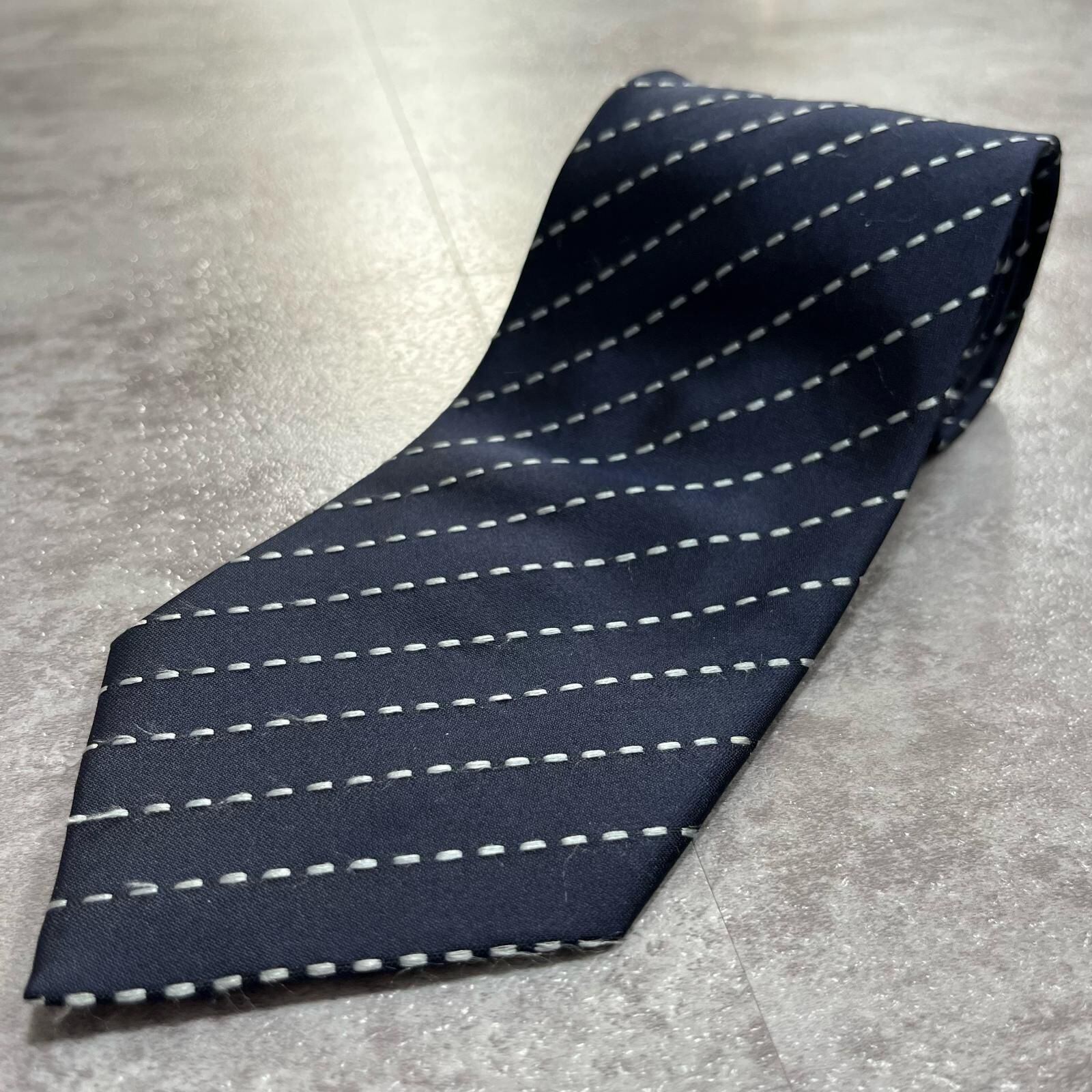 【ストライプ】ステッチストライプ柄ネクタイ シルク100% メンズ 中国製 ネイビー 紺色 ホワイト 白色 シンプル ビジネス向け クラシック